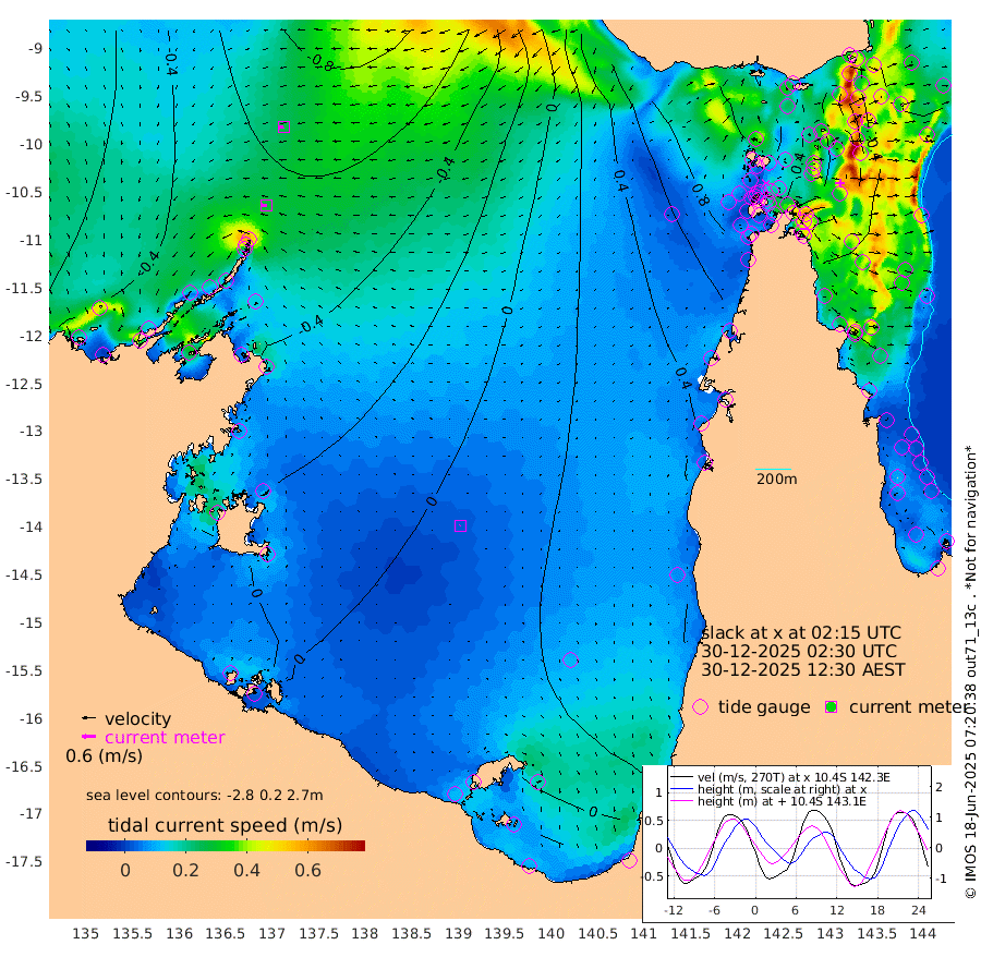 28cm/s -89T +3cm/s rms + 7cm/s -42T. ARA-GOC87 57m 3cm/s -121T +3cm/s rms + 2cm/s -2T. ARA-GOC87 60m 26cm/s -99T +2cm/s rms + 3cm/s 61T. ARA-GOC87 47m -23cm Daru -31cm Bobo Island -42cm Meer Island Barge -48cm Bramble Cay -37cm Unnamed Cay -34cm Pearce Cay -44cm Stephens Island -49cm Merrie England Shoals -24cm Mutacomal Reef -44cm Darnley Island Barge -43cm East Cay -31cm Yorke Island Barge -23cm Rennel Island -21cm Aureed Island 1cm Dungeness Reef 37cm Zagai Island 40cm Yam Island 96cm Dauan Island 88cm Saibai Island 85cm Phipi Reef 46cm Warrior Reef - West 95cm Mabuiag Island Barge -33cm Half Way Island -3cm Coconut Island -16cm Dugong Islet 20cm Poll Island 8cm Kirkcaldie Reef 71cm Suarji Island 20cm Sue Islet 117cm Hawkesbury Island 65cm Alert Patches 54cm Twin Island 115cm Badu Island 66cm St Pauls (Moa Island) 97cm Kubin (Moa Island) 77cm Ince Point 87cm Thursday Island 86cm Nardana Patches 100cm Turtle Head 113cm Round Island 113cm Goods Island 122cm Booby Island 122cm White Rocks Area 97cm Carpentaria 54cm Papou Point 145cm Bampfield Head 93cm Crab Island 115cm Red Wallis Island 100cm Packe Island -14cm Harrington Reef 131cm Herald Camp 17cm Sharp Point 82cm Red Island Point 79cm Possession Island 40cm Alpha Rock 25cm Frederick Point -14cm Wyborn Reef Light -4cm Tetley Island -20cm Triangle Reef -24cm Turtle Head Island -29cm Maclennan Cay -31cm Raine Island -34cm Mcsweeny Reef -35cm Collette Reef -33cm Shadwell Reef -47cm Hannibal Island -46cm Round Point 73cm Vrilya Point -42cm Cape Grenville -39cm Hicks Island -28cm Sir Charles Hardy Island -13cm Harvey Island -44cm Kay Reef -34cm Rocky Island -26cm Chapman Island -29cm Ham Reef -36cm Jubilee Reef -35cm Night Island -31cm Unnamed Reef No. 3 -40cm Morris Island -29cm 1st 3 Mile Opening -36cm Creech Reef -44cm Fife Island -51cm Eden Reef -44cm Stanley Island -53cm Normanby River -28cm Yabooma Island -46cm Hutchison River -41cm Elcho Island -37cm North West Crocodile Island -47cm Cape Wessel -56cm Stevens Island -76cm Guluwuru Island -43cm Hopeful Bay -42cm Auster Point -57cm Two Island Bay -87cm Cadell Strait -178cm Mallison Island -58cm Melville Bay (Gove Harbour) -59cm Truant Island -42cm Cape Arnhem -28cm Cape Grey -21cm Hawk Island -14cm Milner Bay (Groote Eylandt) -13cm Cape Beatrice -1cm West Island 4cm Centre Island -4cm Mornington Island 3cm West Wellesley Islands 17cm Bountiful Island -8cm Albert River Mouth -11cm Sweers Island -1cm Karumba 7cm Nassau River Offshore 25cm Christmas Creek 41cm Archer River 55cm Boyd Point 66cm Weipa (Humbug Point) 37cm Pennefather River 81cm Cullen Point