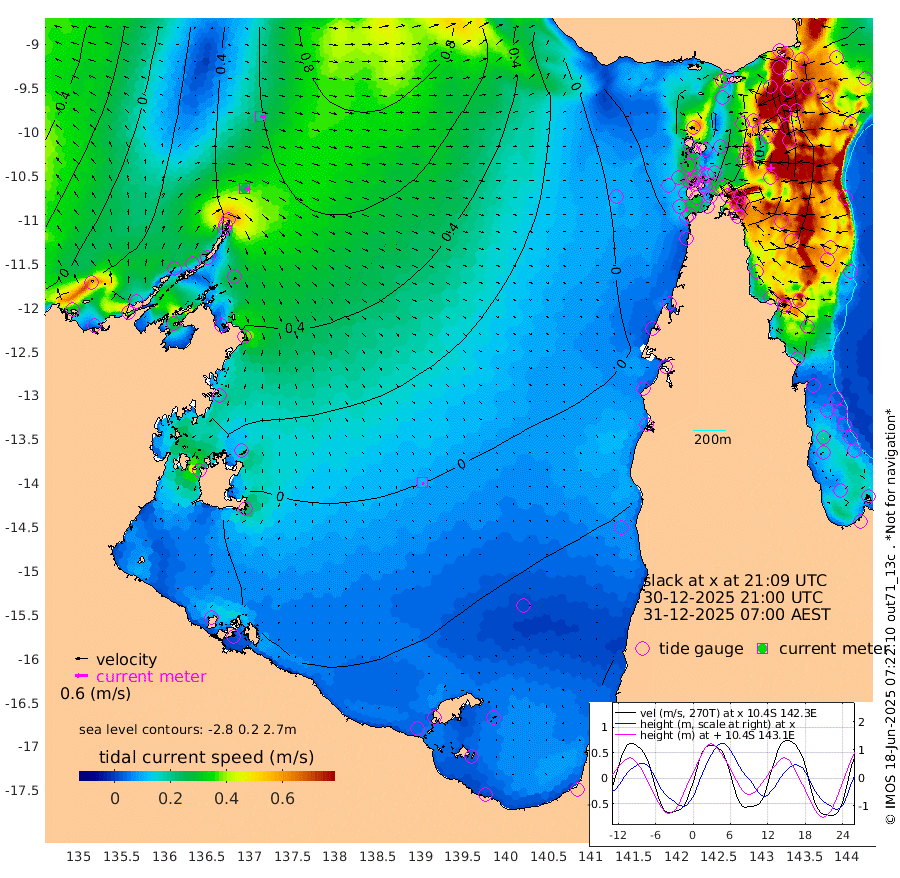 27cm/s 108T +3cm/s rms + 7cm/s -42T. ARA-GOC87 57m 12cm/s 154T +3cm/s rms + 2cm/s -2T. ARA-GOC87 60m 22cm/s 101T +2cm/s rms + 3cm/s 61T. ARA-GOC87 47m 84cm Daru 94cm Bobo Island 105cm Meer Island Barge 112cm Bramble Cay 106cm Unnamed Cay 102cm Pearce Cay 113cm Stephens Island 115cm Merrie England Shoals 85cm Mutacomal Reef 112cm Darnley Island Barge 107cm East Cay 96cm Yorke Island Barge 92cm Rennel Island 88cm Aureed Island 66cm Dungeness Reef 16cm Zagai Island 7cm Yam Island -49cm Dauan Island -49cm Saibai Island -29cm Phipi Reef 5cm Warrior Reef - West -45cm Mabuiag Island Barge 93cm Half Way Island 73cm Coconut Island 80cm Dugong Islet 39cm Poll Island 50cm Kirkcaldie Reef 5cm Suarji Island 35cm Sue Islet -32cm Hawkesbury Island 12cm Alert Patches 13cm Twin Island -34cm Badu Island -4cm St Pauls (Moa Island) -19cm Kubin (Moa Island) -8cm Ince Point -14cm Thursday Island -14cm Nardana Patches -14cm Turtle Head -20cm Round Island -17cm Goods Island -22cm Booby Island -25cm White Rocks Area -6cm Carpentaria 1cm Papou Point -4cm Bampfield Head -18cm Crab Island -28cm Red Wallis Island -17cm Packe Island 85cm Harrington Reef -32cm Herald Camp -10cm Sharp Point -21cm Red Island Point 3cm Possession Island 16cm Alpha Rock 42cm Frederick Point 81cm Wyborn Reef Light 69cm Tetley Island 79cm Triangle Reef 101cm Turtle Head Island 93cm Maclennan Cay 92cm Raine Island 101cm Mcsweeny Reef 102cm Collette Reef 95cm Shadwell Reef 117cm Hannibal Island 114cm Round Point -9cm Vrilya Point 108cm Cape Grenville 104cm Hicks Island 101cm Sir Charles Hardy Island 33cm Harvey Island 110cm Kay Reef 97cm Rocky Island 90cm Chapman Island 90cm Ham Reef 97cm Jubilee Reef 91cm Night Island 93cm Unnamed Reef No. 3 105cm Morris Island 101cm 1st 3 Mile Opening 101cm Creech Reef 101cm Fife Island 123cm Eden Reef 110cm Stanley Island 115cm Normanby River 8cm Yabooma Island 39cm Hutchison River 23cm Elcho Island 6cm North West Crocodile Island 41cm Cape Wessel 32cm Stevens Island 86cm Guluwuru Island 27cm Hopeful Bay 38cm Auster Point 37cm Two Island Bay 57cm Cadell Strait 165cm Mallison Island 62cm Melville Bay (Gove Harbour) 69cm Truant Island 49cm Cape Arnhem 26cm Cape Grey 11cm Hawk Island -20cm Milner Bay (Groote Eylandt) -23cm Cape Beatrice -52cm West Island -49cm Centre Island -43cm Mornington Island -46cm West Wellesley Islands -73cm Bountiful Island -85cm Albert River Mouth -84cm Sweers Island -87cm Karumba -37cm Nassau River Offshore -16cm Christmas Creek -1cm Archer River 2cm Boyd Point -6cm Weipa (Humbug Point) 10cm Pennefather River -18cm Cullen Point