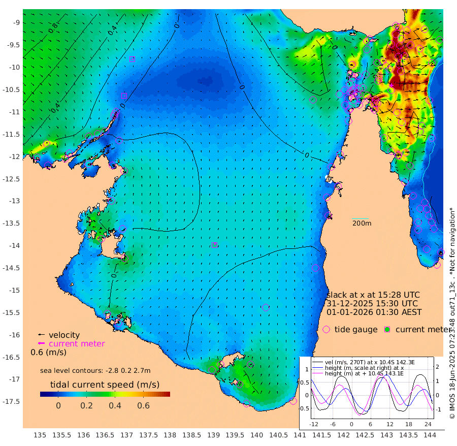 5cm/s 134T +3cm/s rms + 7cm/s -42T. ARA-GOC87 57m 20cm/s 12T +3cm/s rms + 2cm/s -2T. ARA-GOC87 60m 9cm/s 134T +2cm/s rms + 3cm/s 61T. ARA-GOC87 47m -125cm Daru -128cm Bobo Island -123cm Meer Island Barge -137cm Bramble Cay -142cm Unnamed Cay -131cm Pearce Cay -142cm Stephens Island -144cm Merrie England Shoals -127cm Mutacomal Reef -139cm Darnley Island Barge -134cm East Cay -129cm Yorke Island Barge -129cm Rennel Island -124cm Aureed Island -111cm Dungeness Reef -65cm Zagai Island -67cm Yam Island -19cm Dauan Island -16cm Saibai Island -49cm Phipi Reef -69cm Warrior Reef - West 3cm Mabuiag Island Barge -124cm Half Way Island -108cm Coconut Island -121cm Dugong Islet -82cm Poll Island -95cm Kirkcaldie Reef -63cm Suarji Island -78cm Sue Islet 5cm Hawkesbury Island -51cm Alert Patches -53cm Twin Island 12cm Badu Island -39cm St Pauls (Moa Island) -12cm Kubin (Moa Island) -28cm Ince Point -16cm Thursday Island -19cm Nardana Patches -18cm Turtle Head -17cm Round Island -2cm Goods Island 19cm Booby Island 15cm White Rocks Area 29cm Carpentaria -38cm Papou Point -14cm Bampfield Head 24cm Crab Island 21cm Red Wallis Island -11cm Packe Island -121cm Harrington Reef -21cm Herald Camp -5cm Sharp Point -11cm Red Island Point -41cm Possession Island -54cm Alpha Rock -80cm Frederick Point -115cm Wyborn Reef Light -104cm Tetley Island -101cm Triangle Reef -120cm Turtle Head Island -119cm Maclennan Cay -105cm Raine Island -129cm Mcsweeny Reef -130cm Collette Reef -116cm Shadwell Reef -145cm Hannibal Island -139cm Round Point 35cm Vrilya Point -135cm Cape Grenville -132cm Hicks Island -141cm Sir Charles Hardy Island -42cm Harvey Island -133cm Kay Reef -120cm Rocky Island -111cm Chapman Island -109cm Ham Reef -114cm Jubilee Reef -107cm Night Island -109cm Unnamed Reef No. 3 -124cm Morris Island -116cm 1st 3 Mile Opening -119cm Creech Reef -116cm Fife Island -141cm Eden Reef -128cm Stanley Island -138cm Normanby River 22cm Yabooma Island 2cm Hutchison River 21cm Elcho Island 28cm North West Crocodile Island 2cm Cape Wessel 19cm Stevens Island -45cm Guluwuru Island 10cm Hopeful Bay 6cm Auster Point 8cm Two Island Bay -2cm Cadell Strait -95cm Mallison Island -28cm Melville Bay (Gove Harbour) -27cm Truant Island -23cm Cape Arnhem -17cm Cape Grey -13cm Hawk Island 16cm Milner Bay (Groote Eylandt) 8cm Cape Beatrice 22cm West Island 20cm Centre Island -32cm Mornington Island -29cm West Wellesley Islands -46cm Bountiful Island -16cm Albert River Mouth -6cm Sweers Island -24cm Karumba -43cm Nassau River Offshore -54cm Christmas Creek -29cm Archer River -20cm Boyd Point -24cm Weipa (Humbug Point) 13cm Pennefather River 15cm Cullen Point