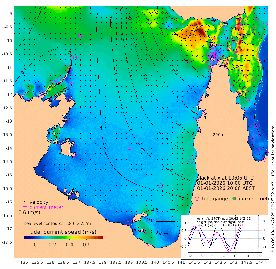 15cm/s 23T +3cm/s rms + 7cm/s -42T. ARA-GOC87 57m 13cm/s -48T +3cm/s rms + 2cm/s -2T. ARA-GOC87 60m 22cm/s 31T +2cm/s rms + 3cm/s 61T. ARA-GOC87 47m 37cm Daru 49cm Bobo Island 55cm Meer Island Barge 66cm Bramble Cay 57cm Unnamed Cay 51cm Pearce Cay 61cm Stephens Island 63cm Merrie England Shoals 42cm Mutacomal Reef 59cm Darnley Island Barge 63cm East Cay 47cm Yorke Island Barge 40cm Rennel Island 41cm Aureed Island 18cm Dungeness Reef -23cm Zagai Island -21cm Yam Island -84cm Dauan Island -75cm Saibai Island -54cm Phipi Reef -26cm Warrior Reef - West -98cm Mabuiag Island Barge 43cm Half Way Island 14cm Coconut Island 31cm Dugong Islet -9cm Poll Island 1cm Kirkcaldie Reef -47cm Suarji Island -11cm Sue Islet -140cm Hawkesbury Island -66cm Alert Patches -53cm Twin Island -143cm Badu Island -66cm St Pauls (Moa Island) -112cm Kubin (Moa Island) -85cm Ince Point -102cm Thursday Island -98cm Nardana Patches -116cm Turtle Head -116cm Round Island -142cm Goods Island -168cm Booby Island -155cm White Rocks Area -162cm Carpentaria -53cm Papou Point -168cm Bampfield Head -145cm Crab Island -159cm Red Wallis Island -123cm Packe Island 27cm Harrington Reef -131cm Herald Camp -16cm Sharp Point -93cm Red Island Point -74cm Possession Island -37cm Alpha Rock -20cm Frederick Point 25cm Wyborn Reef Light 13cm Tetley Island 32cm Triangle Reef 24cm Turtle Head Island 46cm Maclennan Cay 39cm Raine Island 46cm Mcsweeny Reef 50cm Collette Reef 44cm Shadwell Reef 63cm Hannibal Island 64cm Round Point -145cm Vrilya Point 60cm Cape Grenville 59cm Hicks Island 55cm Sir Charles Hardy Island 19cm Harvey Island 61cm Kay Reef 52cm Rocky Island 44cm Chapman Island 43cm Ham Reef 47cm Jubilee Reef 44cm Night Island 42cm Unnamed Reef No. 3 54cm Morris Island 38cm 1st 3 Mile Opening 47cm Creech Reef 51cm Fife Island 69cm Eden Reef 57cm Stanley Island 74cm Normanby River 66cm Yabooma Island 82cm Hutchison River 69cm Elcho Island 71cm North West Crocodile Island 51cm Cape Wessel 69cm Stevens Island 69cm Guluwuru Island 68cm Hopeful Bay 52cm Auster Point 65cm Two Island Bay 90cm Cadell Strait 100cm Mallison Island 60cm Melville Bay (Gove Harbour) 54cm Truant Island 39cm Cape Arnhem 44cm Cape Grey 48cm Hawk Island 48cm Milner Bay (Groote Eylandt) 49cm Cape Beatrice 47cm West Island 45cm Centre Island 85cm Mornington Island 79cm West Wellesley Islands 118cm Bountiful Island 139cm Albert River Mouth 151cm Sweers Island 136cm Karumba 56cm Nassau River Offshore 11cm Christmas Creek -45cm Archer River -75cm Boyd Point -74cm Weipa (Humbug Point) -94cm Pennefather River -121cm Cullen Point