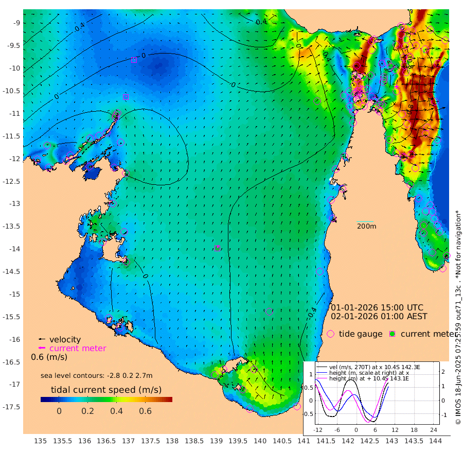 7cm/s 24T +3cm/s rms + 7cm/s -42T. ARA-GOC87 57m 27cm/s 15T +3cm/s rms + 2cm/s -2T. ARA-GOC87 60m 7cm/s 56T +2cm/s rms + 3cm/s 61T. ARA-GOC87 47m -71cm Daru -78cm Bobo Island -112cm Meer Island Barge -111cm Bramble Cay -94cm Unnamed Cay -92cm Pearce Cay -104cm Stephens Island -96cm Merrie England Shoals -69cm Mutacomal Reef -104cm Darnley Island Barge -121cm East Cay -83cm Yorke Island Barge -84cm Rennel Island -79cm Aureed Island -65cm Dungeness Reef -19cm Zagai Island -21cm Yam Island -7cm Dauan Island 4cm Saibai Island -29cm Phipi Reef -28cm Warrior Reef - West 13cm Mabuiag Island Barge -76cm Half Way Island -59cm Coconut Island -68cm Dugong Islet -34cm Poll Island -45cm Kirkcaldie Reef -20cm Suarji Island -27cm Sue Islet -39cm Hawkesbury Island -19cm Alert Patches -16cm Twin Island -29cm Badu Island -2cm St Pauls (Moa Island) -34cm Kubin (Moa Island) -13cm Ince Point -14cm Thursday Island -14cm Nardana Patches -40cm Turtle Head -42cm Round Island -55cm Goods Island -48cm Booby Island -43cm White Rocks Area -19cm Carpentaria -7cm Papou Point -68cm Bampfield Head -35cm Crab Island -39cm Red Wallis Island -47cm Packe Island -63cm Harrington Reef -64cm Herald Camp 13cm Sharp Point -28cm Red Island Point -27cm Possession Island -9cm Alpha Rock -35cm Frederick Point -58cm Wyborn Reef Light -47cm Tetley Island -90cm Triangle Reef -67cm Turtle Head Island -108cm Maclennan Cay -112cm Raine Island -89cm Mcsweeny Reef -95cm Collette Reef -103cm Shadwell Reef -106cm Hannibal Island -114cm Round Point -19cm Vrilya Point -111cm Cape Grenville -116cm Hicks Island -128cm Sir Charles Hardy Island -35cm Harvey Island -119cm Kay Reef -118cm Rocky Island -118cm Chapman Island -113cm Ham Reef -114cm Jubilee Reef -104cm Night Island -114cm Unnamed Reef No. 3 -123cm Morris Island -120cm 1st 3 Mile Opening -119cm Creech Reef -116cm Fife Island -145cm Eden Reef -125cm Stanley Island -131cm Normanby River -34cm Yabooma Island -60cm Hutchison River -37cm Elcho Island -26cm North West Crocodile Island -16cm Cape Wessel -18cm Stevens Island -50cm Guluwuru Island -28cm Hopeful Bay -20cm Auster Point -17cm Two Island Bay -43cm Cadell Strait -60cm Mallison Island -37cm Melville Bay (Gove Harbour) -36cm Truant Island -24cm Cape Arnhem -6cm Cape Grey 1cm Hawk Island 40cm Milner Bay (Groote Eylandt) 31cm Cape Beatrice 61cm West Island 59cm Centre Island -6cm Mornington Island -1cm West Wellesley Islands -22cm Bountiful Island 0cm Albert River Mouth 24cm Sweers Island -7cm Karumba -42cm Nassau River Offshore -69cm Christmas Creek -65cm Archer River -57cm Boyd Point -73cm Weipa (Humbug Point) -25cm Pennefather River -34cm Cullen Point