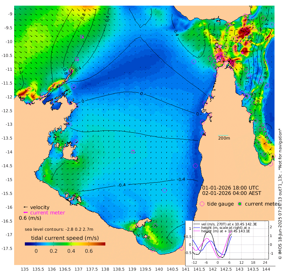 19cm/s 129T +3cm/s rms + 7cm/s -42T. ARA-GOC87 57m 18cm/s 16T +3cm/s rms + 2cm/s -2T. ARA-GOC87 60m 24cm/s 127T +2cm/s rms + 3cm/s 61T. ARA-GOC87 47m -167cm Daru -160cm Bobo Island -92cm Meer Island Barge -126cm Bramble Cay -161cm Unnamed Cay -151cm Pearce Cay -147cm Stephens Island -160cm Merrie England Shoals -174cm Mutacomal Reef -137cm Darnley Island Barge -102cm East Cay -150cm Yorke Island Barge -157cm Rennel Island -154cm Aureed Island -159cm Dungeness Reef -133cm Zagai Island -139cm Yam Island -87cm Dauan Island -82cm Saibai Island -120cm Phipi Reef -142cm Warrior Reef - West -52cm Mabuiag Island Barge -155cm Half Way Island -154cm Coconut Island -164cm Dugong Islet -145cm Poll Island -153cm Kirkcaldie Reef -140cm Suarji Island -139cm Sue Islet 11cm Hawkesbury Island -115cm Alert Patches -120cm Twin Island 5cm Badu Island -116cm St Pauls (Moa Island) -29cm Kubin (Moa Island) -81cm Ince Point -58cm Thursday Island -64cm Nardana Patches -38cm Turtle Head -21cm Round Island 13cm Goods Island 49cm Booby Island 33cm White Rocks Area 62cm Carpentaria -96cm Papou Point 30cm Bampfield Head 50cm Crab Island 39cm Red Wallis Island -19cm Packe Island -172cm Harrington Reef -6cm Herald Camp -39cm Sharp Point -28cm Red Island Point -79cm Possession Island -120cm Alpha Rock -140cm Frederick Point -161cm Wyborn Reef Light -157cm Tetley Island -87cm Triangle Reef -154cm Turtle Head Island -94cm Maclennan Cay -59cm Raine Island -144cm Mcsweeny Reef -135cm Collette Reef -92cm Shadwell Reef -148cm Hannibal Island -126cm Round Point 61cm Vrilya Point -119cm Cape Grenville -107cm Hicks Island -111cm Sir Charles Hardy Island -37cm Harvey Island -100cm Kay Reef -79cm Rocky Island -66cm Chapman Island -63cm Ham Reef -72cm Jubilee Reef -74cm Night Island -65cm Unnamed Reef No. 3 -80cm Morris Island -69cm 1st 3 Mile Opening -75cm Creech Reef -75cm Fife Island -82cm Eden Reef -84cm Stanley Island -93cm Normanby River 108cm Yabooma Island 108cm Hutchison River 112cm Elcho Island 107cm North West Crocodile Island 64cm Cape Wessel 91cm Stevens Island 18cm Guluwuru Island 84cm Hopeful Bay 73cm Auster Point 76cm Two Island Bay 85cm Cadell Strait -37cm Mallison Island 25cm Melville Bay (Gove Harbour) 31cm Truant Island 12cm Cape Arnhem -2cm Cape Grey -14cm Hawk Island -9cm Milner Bay (Groote Eylandt) -22cm Cape Beatrice -39cm West Island -40cm Centre Island -90cm Mornington Island -92cm West Wellesley Islands -107cm Bountiful Island -84cm Albert River Mouth -78cm Sweers Island -92cm Karumba -87cm Nassau River Offshore -73cm Christmas Creek -16cm Archer River 0cm Boyd Point 2cm Weipa (Humbug Point) 30cm Pennefather River 38cm Cullen Point