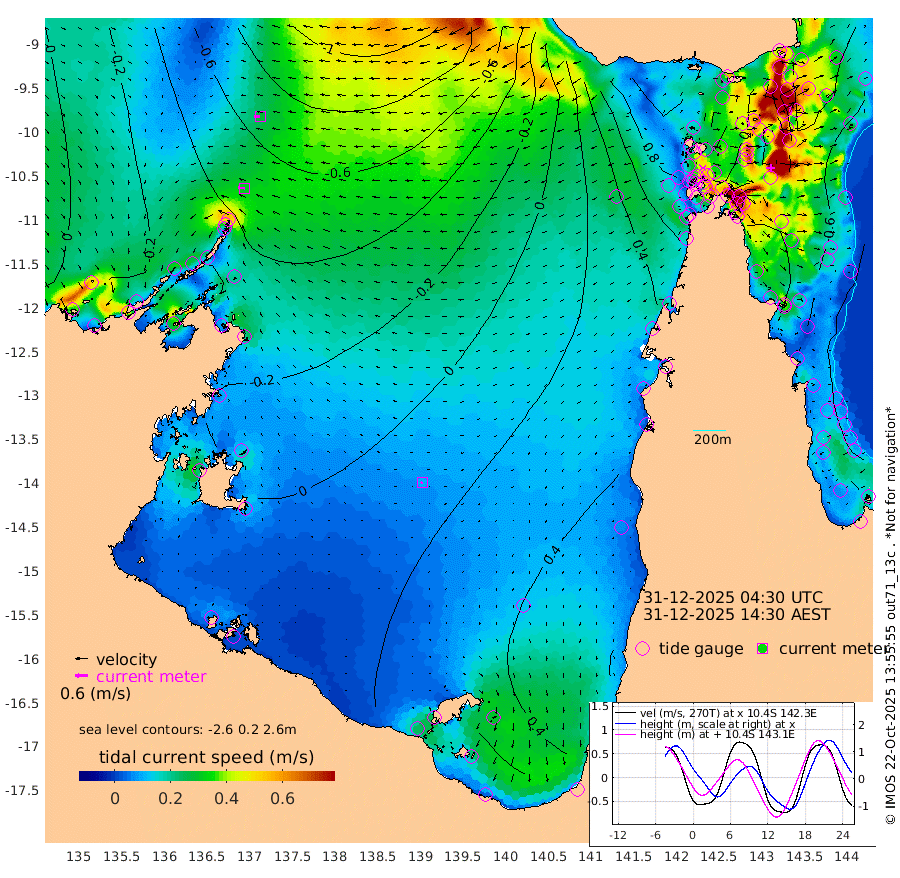 32cm/s -84T +3cm/s rms + 7cm/s -42T. ARA-GOC87 57m 9cm/s -123T +3cm/s rms + 2cm/s -2T. ARA-GOC87 60m 29cm/s -91T +2cm/s rms + 3cm/s 61T. ARA-GOC87 47m -63cm Daru -72cm Bobo Island -50cm Meer Island Barge -70cm Bramble Cay -75cm Unnamed Cay -73cm Pearce Cay -74cm Stephens Island -88cm Merrie England Shoals -73cm Mutacomal Reef -69cm Darnley Island Barge -52cm East Cay -66cm Yorke Island Barge -63cm Rennel Island -60cm Aureed Island -43cm Dungeness Reef -6cm Zagai Island -3cm Yam Island 76cm Dauan Island 65cm Saibai Island 61cm Phipi Reef 11cm Warrior Reef - West 57cm Mabuiag Island Barge -75cm Half Way Island -54cm Coconut Island -63cm Dugong Islet -31cm Poll Island -40cm Kirkcaldie Reef 14cm Suarji Island -28cm Sue Islet 81cm Hawkesbury Island 6cm Alert Patches -4cm Twin Island 81cm Badu Island 10cm St Pauls (Moa Island) 60cm Kubin (Moa Island) 27cm Ince Point 38cm Thursday Island 38cm Nardana Patches 62cm Turtle Head 77cm Round Island 81cm Goods Island 90cm Booby Island 83cm White Rocks Area 57cm Carpentaria 4cm Papou Point 104cm Bampfield Head 70cm Crab Island 82cm Red Wallis Island 65cm Packe Island -71cm Harrington Reef 106cm Herald Camp 1cm Sharp Point 48cm Red Island Point 30cm Possession Island -15cm Alpha Rock -31cm Frederick Point -67cm Wyborn Reef Light -59cm Tetley Island -35cm Triangle Reef -81cm Turtle Head Island -40cm Maclennan Cay -30cm Raine Island -68cm Mcsweeny Reef -64cm Collette Reef -44cm Shadwell Reef -78cm Hannibal Island -70cm Round Point 47cm Vrilya Point -63cm Cape Grenville -51cm Hicks Island -37cm Sir Charles Hardy Island -18cm Harvey Island -57cm Kay Reef -36cm Rocky Island -27cm Chapman Island -29cm Ham Reef -38cm Jubilee Reef -38cm Night Island -33cm Unnamed Reef No. 3 -43cm Morris Island -32cm 1st 3 Mile Opening -38cm Creech Reef -40cm Fife Island -51cm Eden Reef -48cm Stanley Island -57cm Normanby River -3cm Yabooma Island -19cm Hutchison River -16cm Elcho Island -12cm North West Crocodile Island -40cm Cape Wessel -40cm Stevens Island -64cm Guluwuru Island -22cm Hopeful Bay -33cm Auster Point -41cm Two Island Bay -55cm Cadell Strait -148cm Mallison Island -44cm Melville Bay (Gove Harbour) -49cm Truant Island -33cm Cape Arnhem -22cm Cape Grey -14cm Hawk Island -9cm Milner Bay (Groote Eylandt) -4cm Cape Beatrice 4cm West Island 4cm Centre Island 30cm Mornington Island 32cm West Wellesley Islands 68cm Bountiful Island 56cm Albert River Mouth 49cm Sweers Island 64cm Karumba 44cm Nassau River Offshore 51cm Christmas Creek 50cm Archer River 53cm Boyd Point 71cm Weipa (Humbug Point) 22cm Pennefather River 67cm Cullen Point