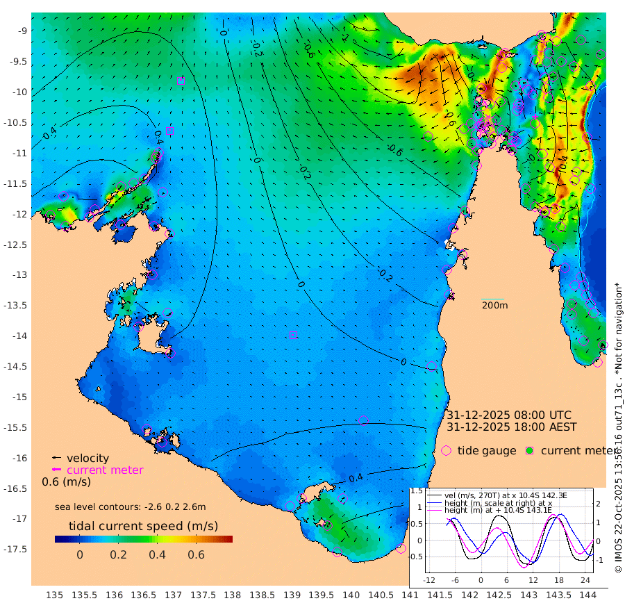10cm/s -6T +3cm/s rms + 7cm/s -42T. ARA-GOC87 57m 10cm/s -88T +3cm/s rms + 2cm/s -2T. ARA-GOC87 60m 13cm/s 14T +2cm/s rms + 3cm/s 61T. ARA-GOC87 47m -4cm Daru 5cm Bobo Island 41cm Meer Island Barge 35cm Bramble Cay 13cm Unnamed Cay 8cm Pearce Cay 24cm Stephens Island 14cm Merrie England Shoals -9cm Mutacomal Reef 28cm Darnley Island Barge 47cm East Cay 10cm Yorke Island Barge 1cm Rennel Island 1cm Aureed Island -18cm Dungeness Reef -45cm Zagai Island -42cm Yam Island -61cm Dauan Island -57cm Saibai Island -48cm Phipi Reef -40cm Warrior Reef - West -81cm Mabuiag Island Barge -1cm Half Way Island -27cm Coconut Island -12cm Dugong Islet -43cm Poll Island -33cm Kirkcaldie Reef -68cm Suarji Island -40cm Sue Islet -88cm Hawkesbury Island -81cm Alert Patches -73cm Twin Island -95cm Badu Island -81cm St Pauls (Moa Island) -79cm Kubin (Moa Island) -83cm Ince Point -90cm Thursday Island -88cm Nardana Patches -85cm Turtle Head -76cm Round Island -88cm Goods Island -102cm Booby Island -100cm White Rocks Area -107cm Carpentaria -65cm Papou Point -98cm Bampfield Head -88cm Crab Island -102cm Red Wallis Island -85cm Packe Island -23cm Harrington Reef -67cm Herald Camp -25cm Sharp Point -67cm Red Island Point -70cm Possession Island -63cm Alpha Rock -51cm Frederick Point -22cm Wyborn Reef Light -31cm Tetley Island 20cm Triangle Reef -23cm Turtle Head Island 35cm Maclennan Cay 41cm Raine Island 9cm Mcsweeny Reef 17cm Collette Reef 30cm Shadwell Reef 24cm Hannibal Island 32cm Round Point -96cm Vrilya Point 33cm Cape Grenville 42cm Hicks Island 47cm Sir Charles Hardy Island 12cm Harvey Island 43cm Kay Reef 47cm Rocky Island 43cm Chapman Island 45cm Ham Reef 43cm Jubilee Reef 36cm Night Island 41cm Unnamed Reef No. 3 47cm Morris Island 39cm 1st 3 Mile Opening 43cm Creech Reef 47cm Fife Island 61cm Eden Reef 48cm Stanley Island 60cm Normanby River 81cm Yabooma Island 94cm Hutchison River 79cm Elcho Island 79cm North West Crocodile Island 51cm Cape Wessel 66cm Stevens Island 65cm Guluwuru Island 71cm Hopeful Bay 53cm Auster Point 66cm Two Island Bay 93cm Cadell Strait 78cm Mallison Island 56cm Melville Bay (Gove Harbour) 52cm Truant Island 35cm Cape Arnhem 34cm Cape Grey 31cm Hawk Island 21cm Milner Bay (Groote Eylandt) 24cm Cape Beatrice 12cm West Island 7cm Centre Island 58cm Mornington Island 51cm West Wellesley Islands 98cm Bountiful Island 106cm Albert River Mouth 106cm Sweers Island 107cm Karumba 50cm Nassau River Offshore 26cm Christmas Creek -14cm Archer River -34cm Boyd Point -25cm Weipa (Humbug Point) -65cm Pennefather River -69cm Cullen Point