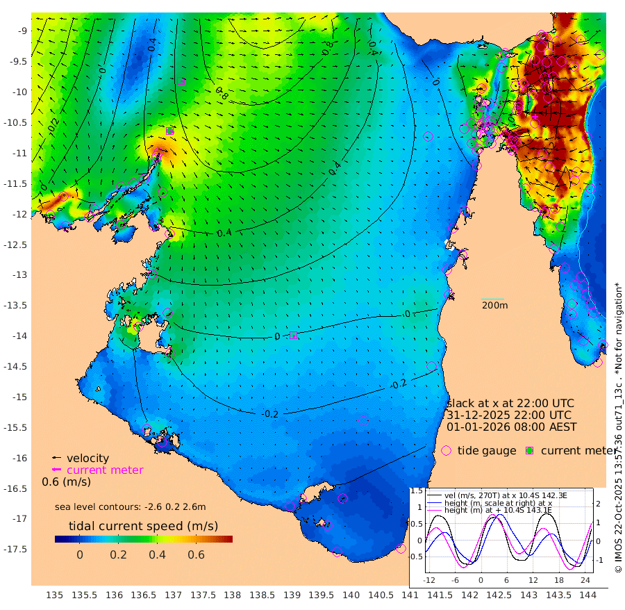 31cm/s 114T +3cm/s rms + 7cm/s -42T. ARA-GOC87 57m 18cm/s 159T +3cm/s rms + 2cm/s -2T. ARA-GOC87 60m 24cm/s 110T +2cm/s rms + 3cm/s 61T. ARA-GOC87 47m 118cm Daru 129cm Bobo Island 128cm Meer Island Barge 142cm Bramble Cay 141cm Unnamed Cay 140cm Pearce Cay 146cm Stephens Island 150cm Merrie England Shoals 123cm Mutacomal Reef 141cm Darnley Island Barge 133cm East Cay 128cm Yorke Island Barge 128cm Rennel Island 123cm Aureed Island 102cm Dungeness Reef 46cm Zagai Island 41cm Yam Island -24cm Dauan Island -26cm Saibai Island -4cm Phipi Reef 36cm Warrior Reef - West -18cm Mabuiag Island Barge 130cm Half Way Island 109cm Coconut Island 119cm Dugong Islet 75cm Poll Island 87cm Kirkcaldie Reef 41cm Suarji Island 68cm Sue Islet 10cm Hawkesbury Island 49cm Alert Patches 51cm Twin Island 3cm Badu Island 32cm St Pauls (Moa Island) 19cm Kubin (Moa Island) 27cm Ince Point 22cm Thursday Island 21cm Nardana Patches 23cm Turtle Head 13cm Round Island 23cm Goods Island 16cm Booby Island 16cm White Rocks Area 22cm Carpentaria 34cm Papou Point 33cm Bampfield Head 11cm Crab Island 11cm Red Wallis Island 23cm Packe Island 125cm Harrington Reef 5cm Herald Camp -3cm Sharp Point 14cm Red Island Point 35cm Possession Island 49cm Alpha Rock 80cm Frederick Point 118cm Wyborn Reef Light 106cm Tetley Island 104cm Triangle Reef 141cm Turtle Head Island 118cm Maclennan Cay 110cm Raine Island 133cm Mcsweeny Reef 131cm Collette Reef 117cm Shadwell Reef 149cm Hannibal Island 145cm Round Point 16cm Vrilya Point 136cm Cape Grenville 130cm Hicks Island 130cm Sir Charles Hardy Island 42cm Harvey Island 136cm Kay Reef 118cm Rocky Island 112cm Chapman Island 110cm Ham Reef 118cm Jubilee Reef 110cm Night Island 114cm Unnamed Reef No. 3 128cm Morris Island 122cm 1st 3 Mile Opening 123cm Creech Reef 120cm Fife Island 148cm Eden Reef 132cm Stanley Island 141cm Normanby River 19cm Yabooma Island 52cm Hutchison River 29cm Elcho Island 13cm North West Crocodile Island 48cm Cape Wessel 38cm Stevens Island 93cm Guluwuru Island 30cm Hopeful Bay 45cm Auster Point 43cm Two Island Bay 67cm Cadell Strait 162cm Mallison Island 66cm Melville Bay (Gove Harbour) 74cm Truant Island 49cm Cape Arnhem 19cm Cape Grey 1cm Hawk Island -40cm Milner Bay (Groote Eylandt) -41cm Cape Beatrice -77cm West Island -75cm Centre Island -68cm Mornington Island -69cm West Wellesley Islands -101cm Bountiful Island -125cm Albert River Mouth -136cm Sweers Island -126cm Karumba -46cm Nassau River Offshore -11cm Christmas Creek 13cm Archer River 19cm Boyd Point 13cm Weipa (Humbug Point) 25cm Pennefather River 5cm Cullen Point