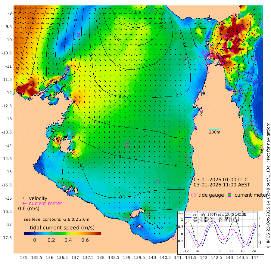 23cm/s 121T +3cm/s rms + 7cm/s -42T. ARA-GOC87 57m 35cm/s 163T +3cm/s rms + 2cm/s -2T. ARA-GOC87 60m 11cm/s 132T +2cm/s rms + 3cm/s 61T. ARA-GOC87 47m 202cm Daru 200cm Bobo Island 132cm Meer Island Barge 164cm Bramble Cay 197cm Unnamed Cay 203cm Pearce Cay 190cm Stephens Island 197cm Merrie England Shoals 207cm Mutacomal Reef 178cm Darnley Island Barge 141cm East Cay 190cm Yorke Island Barge 199cm Rennel Island 194cm Aureed Island 196cm Dungeness Reef 163cm Zagai Island 166cm Yam Island 117cm Dauan Island 106cm Saibai Island 127cm Phipi Reef 167cm Warrior Reef - West 100cm Mabuiag Island Barge 199cm Half Way Island 199cm Coconut Island 207cm Dugong Islet 186cm Poll Island 192cm Kirkcaldie Reef 172cm Suarji Island 176cm Sue Islet 101cm Hawkesbury Island 171cm Alert Patches 175cm Twin Island 98cm Badu Island 167cm St Pauls (Moa Island) 117cm Kubin (Moa Island) 145cm Ince Point 132cm Thursday Island 134cm Nardana Patches 123cm Turtle Head 98cm Round Island 99cm Goods Island 78cm Booby Island 86cm White Rocks Area 63cm Carpentaria 147cm Papou Point 94cm Bampfield Head 59cm Crab Island 82cm Red Wallis Island 114cm Packe Island 220cm Harrington Reef 88cm Herald Camp 40cm Sharp Point 101cm Red Island Point 134cm Possession Island 162cm Alpha Rock 191cm Frederick Point 206cm Wyborn Reef Light 202cm Tetley Island 127cm Triangle Reef 222cm Turtle Head Island 133cm Maclennan Cay 100cm Raine Island 186cm Mcsweeny Reef 172cm Collette Reef 129cm Shadwell Reef 186cm Hannibal Island 170cm Round Point 53cm Vrilya Point 154cm Cape Grenville 144cm Hicks Island 149cm Sir Charles Hardy Island 48cm Harvey Island 136cm Kay Reef 114cm Rocky Island 106cm Chapman Island 102cm Ham Reef 113cm Jubilee Reef 109cm Night Island 107cm Unnamed Reef No. 3 120cm Morris Island 113cm 1st 3 Mile Opening 117cm Creech Reef 117cm Fife Island 128cm Eden Reef 123cm Stanley Island 132cm Normanby River -55cm Yabooma Island -39cm Hutchison River -61cm Elcho Island -68cm North West Crocodile Island 2cm Cape Wessel -33cm Stevens Island 51cm Guluwuru Island -45cm Hopeful Bay -12cm Auster Point -15cm Two Island Bay -1cm Cadell Strait 128cm Mallison Island 26cm Melville Bay (Gove Harbour) 36cm Truant Island 24cm Cape Arnhem -4cm Cape Grey -20cm Hawk Island -66cm Milner Bay (Groote Eylandt) -61cm Cape Beatrice -86cm West Island -88cm Centre Island -73cm Mornington Island -65cm West Wellesley Islands -107cm Bountiful Island -162cm Albert River Mouth -188cm Sweers Island -154cm Karumba -28cm Nassau River Offshore 21cm Christmas Creek 36cm Archer River 52cm Boyd Point 43cm Weipa (Humbug Point) 46cm Pennefather River 45cm Cullen Point