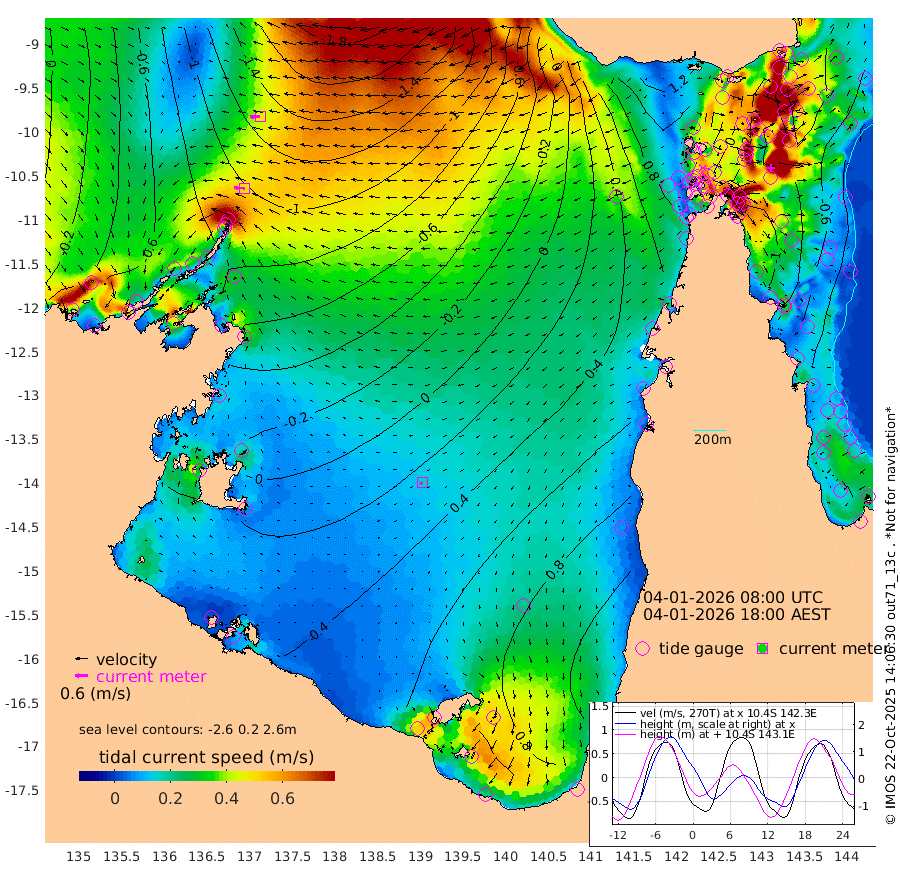 49cm/s -87T +3cm/s rms + 7cm/s -42T. ARA-GOC87 57m 17cm/s -128T +3cm/s rms + 2cm/s -2T. ARA-GOC87 60m 48cm/s -94T +2cm/s rms + 3cm/s 61T. ARA-GOC87 47m -92cm Daru -105cm Bobo Island -57cm Meer Island Barge -77cm Bramble Cay -94cm Unnamed Cay -104cm Pearce Cay -93cm Stephens Island -95cm Merrie England Shoals -95cm Mutacomal Reef -88cm Darnley Island Barge -58cm East Cay -94cm Yorke Island Barge -90cm Rennel Island -95cm Aureed Island -76cm Dungeness Reef -57cm Zagai Island -46cm Yam Island 20cm Dauan Island 9cm Saibai Island 28cm Phipi Reef -38cm Warrior Reef - West 8cm Mabuiag Island Barge -95cm Half Way Island -89cm Coconut Island -94cm Dugong Islet -73cm Poll Island -67cm Kirkcaldie Reef -46cm Suarji Island -71cm Sue Islet 52cm Hawkesbury Island -37cm Alert Patches -50cm Twin Island 53cm Badu Island -43cm St Pauls (Moa Island) 26cm Kubin (Moa Island) -13cm Ince Point 3cm Thursday Island 0cm Nardana Patches 33cm Turtle Head 42cm Round Island 62cm Goods Island 78cm Booby Island 63cm White Rocks Area 45cm Carpentaria -41cm Papou Point 58cm Bampfield Head 75cm Crab Island 71cm Red Wallis Island 49cm Packe Island -107cm Harrington Reef 80cm Herald Camp -8cm Sharp Point 32cm Red Island Point -13cm Possession Island -59cm Alpha Rock -74cm Frederick Point -106cm Wyborn Reef Light -101cm Tetley Island -50cm Triangle Reef -122cm Turtle Head Island -49cm Maclennan Cay -27cm Raine Island -90cm Mcsweeny Reef -79cm Collette Reef -48cm Shadwell Reef -89cm Hannibal Island -79cm Round Point 63cm Vrilya Point -65cm Cape Grenville -59cm Hicks Island -50cm Sir Charles Hardy Island -20cm Harvey Island -54cm Kay Reef -37cm Rocky Island -30cm Chapman Island -31cm Ham Reef -39cm Jubilee Reef -36cm Night Island -31cm Unnamed Reef No. 3 -41cm Morris Island -34cm 1st 3 Mile Opening -38cm Creech Reef -45cm Fife Island -46cm Eden Reef -42cm Stanley Island -56cm Normanby River -79cm Yabooma Island -101cm Hutchison River -79cm Elcho Island -67cm North West Crocodile Island -124cm Cape Wessel -112cm Stevens Island -139cm Guluwuru Island -85cm Hopeful Bay -114cm Auster Point -118cm Two Island Bay -137cm Cadell Strait -206cm Mallison Island -114cm Melville Bay (Gove Harbour) -132cm Truant Island -86cm Cape Arnhem -53cm Cape Grey -29cm Hawk Island -4cm Milner Bay (Groote Eylandt) 17cm Cape Beatrice 47cm West Island 51cm Centre Island 105cm Mornington Island 96cm West Wellesley Islands 140cm Bountiful Island 160cm Albert River Mouth 139cm Sweers Island 171cm Karumba 123cm Nassau River Offshore 113cm Christmas Creek 89cm Archer River 67cm Boyd Point 92cm Weipa (Humbug Point) 52cm Pennefather River 75cm Cullen Point