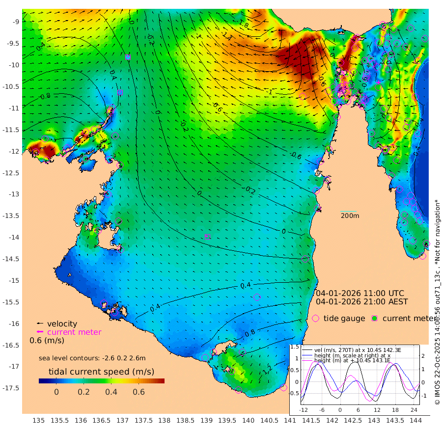 8cm/s -22T +3cm/s rms + 7cm/s -42T. ARA-GOC87 57m 22cm/s -66T +3cm/s rms + 2cm/s -2T. ARA-GOC87 60m 12cm/s 23T +2cm/s rms + 3cm/s 61T. ARA-GOC87 47m -22cm Daru -9cm Bobo Island 25cm Meer Island Barge 27cm Bramble Cay 1cm Unnamed Cay 4cm Pearce Cay 8cm Stephens Island 9cm Merrie England Shoals -17cm Mutacomal Reef 8cm Darnley Island Barge 31cm East Cay -11cm Yorke Island Barge -13cm Rennel Island -10cm Aureed Island -28cm Dungeness Reef -65cm Zagai Island -67cm Yam Island -84cm Dauan Island -90cm Saibai Island -49cm Phipi Reef -60cm Warrior Reef - West -104cm Mabuiag Island Barge -15cm Half Way Island -36cm Coconut Island -30cm Dugong Islet -54cm Poll Island -53cm Kirkcaldie Reef -74cm Suarji Island -66cm Sue Islet -115cm Hawkesbury Island -90cm Alert Patches -87cm Twin Island -106cm Badu Island -99cm St Pauls (Moa Island) -101cm Kubin (Moa Island) -98cm Ince Point -105cm Thursday Island -102cm Nardana Patches -95cm Turtle Head -99cm Round Island -98cm Goods Island -118cm Booby Island -105cm White Rocks Area -146cm Carpentaria -88cm Papou Point -133cm Bampfield Head -102cm Crab Island -114cm Red Wallis Island -94cm Packe Island -38cm Harrington Reef -108cm Herald Camp -30cm Sharp Point -85cm Red Island Point -88cm Possession Island -80cm Alpha Rock -67cm Frederick Point -35cm Wyborn Reef Light -47cm Tetley Island 9cm Triangle Reef -45cm Turtle Head Island 17cm Maclennan Cay 30cm Raine Island -4cm Mcsweeny Reef 6cm Collette Reef 19cm Shadwell Reef 15cm Hannibal Island 26cm Round Point -113cm Vrilya Point 23cm Cape Grenville 25cm Hicks Island 22cm Sir Charles Hardy Island 6cm Harvey Island 32cm Kay Reef 34cm Rocky Island 37cm Chapman Island 28cm Ham Reef 27cm Jubilee Reef 28cm Night Island 30cm Unnamed Reef No. 3 35cm Morris Island 25cm 1st 3 Mile Opening 29cm Creech Reef 32cm Fife Island 53cm Eden Reef 35cm Stanley Island 46cm Normanby River 108cm Yabooma Island 130cm Hutchison River 116cm Elcho Island 115cm North West Crocodile Island 40cm Cape Wessel 91cm Stevens Island 39cm Guluwuru Island 96cm Hopeful Bay 57cm Auster Point 56cm Two Island Bay 97cm Cadell Strait 10cm Mallison Island 47cm Melville Bay (Gove Harbour) 35cm Truant Island 26cm Cape Arnhem 34cm Cape Grey 50cm Hawk Island 54cm Milner Bay (Groote Eylandt) 60cm Cape Beatrice 53cm West Island 56cm Centre Island 127cm Mornington Island 120cm West Wellesley Islands 179cm Bountiful Island 232cm Albert River Mouth 238cm Sweers Island 222cm Karumba 107cm Nassau River Offshore 54cm Christmas Creek -1cm Archer River -45cm Boyd Point -26cm Weipa (Humbug Point) -65cm Pennefather River -89cm Cullen Point