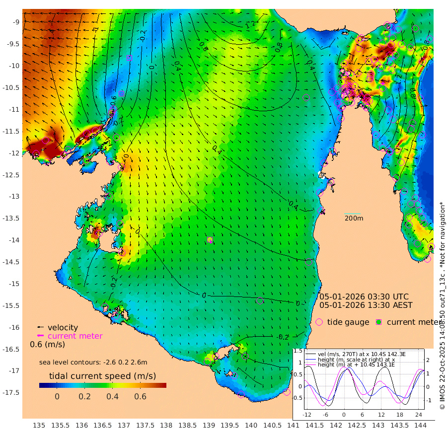 7cm/s 139T +3cm/s rms + 7cm/s -42T. ARA-GOC87 57m 41cm/s 164T +3cm/s rms + 2cm/s -2T. ARA-GOC87 60m 9cm/s -106T +2cm/s rms + 3cm/s 61T. ARA-GOC87 47m 175cm Daru 163cm Bobo Island 83cm Meer Island Barge 107cm Bramble Cay 146cm Unnamed Cay 155cm Pearce Cay 140cm Stephens Island 139cm Merrie England Shoals 168cm Mutacomal Reef 131cm Darnley Island Barge 90cm East Cay 153cm Yorke Island Barge 160cm Rennel Island 159cm Aureed Island 173cm Dungeness Reef 176cm Zagai Island 181cm Yam Island 173cm Dauan Island 162cm Saibai Island 164cm Phipi Reef 192cm Warrior Reef - West 137cm Mabuiag Island Barge 159cm Half Way Island 172cm Coconut Island 176cm Dugong Islet 177cm Poll Island 182cm Kirkcaldie Reef 179cm Suarji Island 176cm Sue Islet 113cm Hawkesbury Island 175cm Alert Patches 179cm Twin Island 113cm Badu Island 185cm St Pauls (Moa Island) 130cm Kubin (Moa Island) 158cm Ince Point 146cm Thursday Island 148cm Nardana Patches 132cm Turtle Head 106cm Round Island 99cm Goods Island 80cm Booby Island 81cm White Rocks Area 67cm Carpentaria 158cm Papou Point 88cm Bampfield Head 66cm Crab Island 88cm Red Wallis Island 121cm Packe Island 186cm Harrington Reef 108cm Herald Camp 54cm Sharp Point 114cm Red Island Point 139cm Possession Island 164cm Alpha Rock 182cm Frederick Point 172cm Wyborn Reef Light 177cm Tetley Island 91cm Triangle Reef 179cm Turtle Head Island 90cm Maclennan Cay 55cm Raine Island 143cm Mcsweeny Reef 126cm Collette Reef 85cm Shadwell Reef 130cm Hannibal Island 111cm Round Point 60cm Vrilya Point 99cm Cape Grenville 95cm Hicks Island 103cm Sir Charles Hardy Island 33cm Harvey Island 78cm Kay Reef 66cm Rocky Island 58cm Chapman Island 59cm Ham Reef 67cm Jubilee Reef 65cm Night Island 61cm Unnamed Reef No. 3 67cm Morris Island 63cm 1st 3 Mile Opening 69cm Creech Reef 75cm Fife Island 61cm Eden Reef 67cm Stanley Island 71cm Normanby River -130cm Yabooma Island -136cm Hutchison River -143cm Elcho Island -140cm North West Crocodile Island -49cm Cape Wessel -107cm Stevens Island -1cm Guluwuru Island -112cm Hopeful Bay -73cm Auster Point -70cm Two Island Bay -70cm Cadell Strait 95cm Mallison Island -20cm Melville Bay (Gove Harbour) -12cm Truant Island -4cm Cape Arnhem -23cm Cape Grey -35cm Hawk Island -69cm Milner Bay (Groote Eylandt) -60cm Cape Beatrice -66cm West Island -72cm Centre Island -50cm Mornington Island -44cm West Wellesley Islands -81cm Bountiful Island -146cm Albert River Mouth -172cm Sweers Island -127cm Karumba -3cm Nassau River Offshore 44cm Christmas Creek 43cm Archer River 62cm Boyd Point 50cm Weipa (Humbug Point) 46cm Pennefather River 59cm Cullen Point