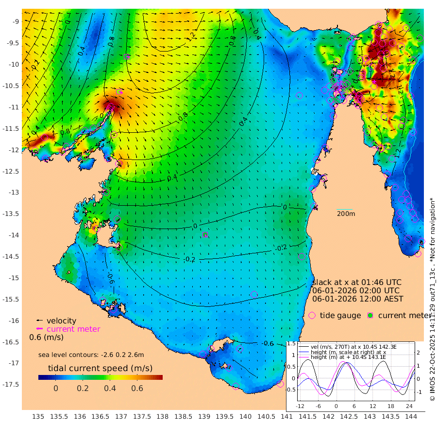 39cm/s 112T +3cm/s rms + 7cm/s -42T. ARA-GOC87 57m 28cm/s 165T +3cm/s rms + 2cm/s -2T. ARA-GOC87 60m 30cm/s 103T +2cm/s rms + 3cm/s 61T. ARA-GOC87 47m 145cm Daru 155cm Bobo Island 119cm Meer Island Barge 141cm Bramble Cay 150cm Unnamed Cay 164cm Pearce Cay 152cm Stephens Island 148cm Merrie England Shoals 148cm Mutacomal Reef 144cm Darnley Island Barge 131cm East Cay 144cm Yorke Island Barge 149cm Rennel Island 147cm Aureed Island 136cm Dungeness Reef 107cm Zagai Island 108cm Yam Island 80cm Dauan Island 73cm Saibai Island 72cm Phipi Reef 112cm Warrior Reef - West 64cm Mabuiag Island Barge 144cm Half Way Island 139cm Coconut Island 146cm Dugong Islet 125cm Poll Island 123cm Kirkcaldie Reef 103cm Suarji Island 116cm Sue Islet 94cm Hawkesbury Island 102cm Alert Patches 110cm Twin Island 78cm Badu Island 100cm St Pauls (Moa Island) 92cm Kubin (Moa Island) 90cm Ince Point 83cm Thursday Island 84cm Nardana Patches 84cm Turtle Head 76cm Round Island 80cm Goods Island 62cm Booby Island 71cm White Rocks Area 35cm Carpentaria 95cm Papou Point 83cm Bampfield Head 41cm Crab Island 66cm Red Wallis Island 87cm Packe Island 151cm Harrington Reef 77cm Herald Camp 13cm Sharp Point 73cm Red Island Point 86cm Possession Island 103cm Alpha Rock 128cm Frederick Point 151cm Wyborn Reef Light 146cm Tetley Island 114cm Triangle Reef 164cm Turtle Head Island 118cm Maclennan Cay 99cm Raine Island 144cm Mcsweeny Reef 135cm Collette Reef 111cm Shadwell Reef 146cm Hannibal Island 148cm Round Point 26cm Vrilya Point 128cm Cape Grenville 128cm Hicks Island 138cm Sir Charles Hardy Island 40cm Harvey Island 122cm Kay Reef 111cm Rocky Island 112cm Chapman Island 105cm Ham Reef 109cm Jubilee Reef 99cm Night Island 107cm Unnamed Reef No. 3 114cm Morris Island 104cm 1st 3 Mile Opening 110cm Creech Reef 117cm Fife Island 129cm Eden Reef 114cm Stanley Island 130cm Normanby River 111cm Yabooma Island 140cm Hutchison River 98cm Elcho Island 87cm North West Crocodile Island 119cm Cape Wessel 113cm Stevens Island 141cm Guluwuru Island 95cm Hopeful Bay 109cm Auster Point 113cm Two Island Bay 159cm Cadell Strait 209cm Mallison Island 113cm Melville Bay (Gove Harbour) 129cm Truant Island 78cm Cape Arnhem 24cm Cape Grey -2cm Hawk Island -71cm Milner Bay (Groote Eylandt) -77cm Cape Beatrice -137cm West Island -143cm Centre Island -124cm Mornington Island -117cm West Wellesley Islands -140cm Bountiful Island -191cm Albert River Mouth -214cm Sweers Island -185cm Karumba -70cm Nassau River Offshore -17cm Christmas Creek 14cm Archer River 33cm Boyd Point 30cm Weipa (Humbug Point) 14cm Pennefather River 29cm Cullen Point