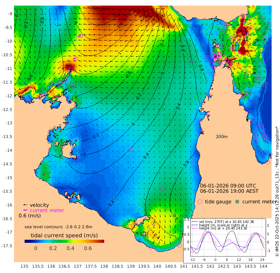 46cm/s -91T +3cm/s rms + 7cm/s -42T. ARA-GOC87 57m 16cm/s -143T +3cm/s rms + 2cm/s -2T. ARA-GOC87 60m 48cm/s -99T +2cm/s rms + 3cm/s 61T. ARA-GOC87 47m -69cm Daru -85cm Bobo Island -53cm Meer Island Barge -66cm Bramble Cay -73cm Unnamed Cay -83cm Pearce Cay -76cm Stephens Island -71cm Merrie England Shoals -68cm Mutacomal Reef -74cm Darnley Island Barge -54cm East Cay -75cm Yorke Island Barge -69cm Rennel Island -78cm Aureed Island -53cm Dungeness Reef -41cm Zagai Island -24cm Yam Island 22cm Dauan Island 13cm Saibai Island 36cm Phipi Reef -24cm Warrior Reef - West 23cm Mabuiag Island Barge -68cm Half Way Island -65cm Coconut Island -66cm Dugong Islet -48cm Poll Island -34cm Kirkcaldie Reef -28cm Suarji Island -45cm Sue Islet 78cm Hawkesbury Island -9cm Alert Patches -21cm Twin Island 73cm Badu Island -15cm St Pauls (Moa Island) 47cm Kubin (Moa Island) 12cm Ince Point 29cm Thursday Island 25cm Nardana Patches 53cm Turtle Head 58cm Round Island 80cm Goods Island 99cm Booby Island 83cm White Rocks Area 68cm Carpentaria -14cm Papou Point 66cm Bampfield Head 97cm Crab Island 93cm Red Wallis Island 70cm Packe Island -76cm Harrington Reef 93cm Herald Camp 2cm Sharp Point 58cm Red Island Point 9cm Possession Island -33cm Alpha Rock -45cm Frederick Point -80cm Wyborn Reef Light -75cm Tetley Island -46cm Triangle Reef -87cm Turtle Head Island -45cm Maclennan Cay -30cm Raine Island -73cm Mcsweeny Reef -65cm Collette Reef -44cm Shadwell Reef -73cm Hannibal Island -68cm Round Point 94cm Vrilya Point -54cm Cape Grenville -53cm Hicks Island -49cm Sir Charles Hardy Island -17cm Harvey Island -48cm Kay Reef -39cm Rocky Island -36cm Chapman Island -35cm Ham Reef -39cm Jubilee Reef -36cm Night Island -34cm Unnamed Reef No. 3 -42cm Morris Island -36cm 1st 3 Mile Opening -38cm Creech Reef -50cm Fife Island -48cm Eden Reef -40cm Stanley Island -54cm Normanby River -110cm Yabooma Island -138cm Hutchison River -111cm Elcho Island -95cm North West Crocodile Island -148cm Cape Wessel -138cm Stevens Island -163cm Guluwuru Island -115cm Hopeful Bay -137cm Auster Point -138cm Two Island Bay -163cm Cadell Strait -236cm Mallison Island -140cm Melville Bay (Gove Harbour) -158cm Truant Island -106cm Cape Arnhem -68cm Cape Grey -45cm Hawk Island -15cm Milner Bay (Groote Eylandt) 7cm Cape Beatrice 45cm West Island 50cm Centre Island 87cm Mornington Island 78cm West Wellesley Islands 105cm Bountiful Island 120cm Albert River Mouth 97cm Sweers Island 137cm Karumba 112cm Nassau River Offshore 108cm Christmas Creek 93cm Archer River 73cm Boyd Point 92cm Weipa (Humbug Point) 76cm Pennefather River 90cm Cullen Point