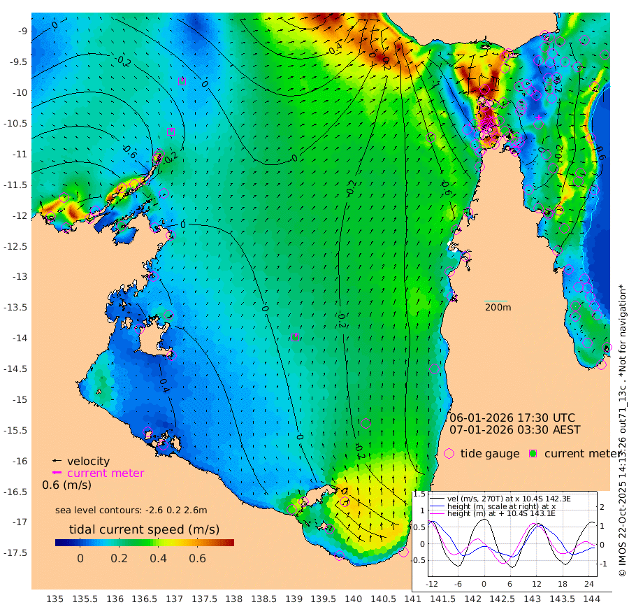19cm/s 20T +3cm/s rms + 7cm/s -42T. ARA-GOC87 57m 28cm/s 13T +3cm/s rms + 2cm/s -2T. ARA-GOC87 60m 19cm/s 27T +2cm/s rms + 3cm/s 61T. ARA-GOC87 47m -21cm Daru -19cm Bobo Island -46cm Meer Island Barge -49cm Bramble Cay -36cm Unnamed Cay -37cm Pearce Cay -35cm Stephens Island -39cm Merrie England Shoals -31cm Mutacomal Reef -30cm Darnley Island Barge -55cm East Cay -21cm Yorke Island Barge -33cm Rennel Island -19cm Aureed Island -29cm Dungeness Reef -8cm Zagai Island -26cm Yam Island -48cm Dauan Island -33cm Saibai Island -54cm Phipi Reef -24cm Warrior Reef - West -51cm Mabuiag Island Barge -27cm Half Way Island -21cm Coconut Island -26cm Dugong Islet -22cm Poll Island -29cm Kirkcaldie Reef -19cm Suarji Island -13cm Sue Islet -168cm Hawkesbury Island -42cm Alert Patches -36cm Twin Island -140cm Badu Island -28cm St Pauls (Moa Island) -118cm Kubin (Moa Island) -60cm Ince Point -77cm Thursday Island -72cm Nardana Patches -113cm Turtle Head -124cm Round Island -157cm Goods Island -164cm Booby Island -160cm White Rocks Area -97cm Carpentaria -34cm Papou Point -155cm Bampfield Head -138cm Crab Island -158cm Red Wallis Island -141cm Packe Island -16cm Harrington Reef -161cm Herald Camp 6cm Sharp Point -109cm Red Island Point -61cm Possession Island -21cm Alpha Rock -27cm Frederick Point -22cm Wyborn Reef Light -21cm Tetley Island -46cm Triangle Reef -25cm Turtle Head Island -51cm Maclennan Cay -60cm Raine Island -29cm Mcsweeny Reef -35cm Collette Reef -47cm Shadwell Reef -37cm Hannibal Island -55cm Round Point -117cm Vrilya Point -49cm Cape Grenville -52cm Hicks Island -64cm Sir Charles Hardy Island -13cm Harvey Island -59cm Kay Reef -59cm Rocky Island -69cm Chapman Island -61cm Ham Reef -57cm Jubilee Reef -49cm Night Island -63cm Unnamed Reef No. 3 -60cm Morris Island -57cm 1st 3 Mile Opening -58cm Creech Reef -48cm Fife Island -73cm Eden Reef -61cm Stanley Island -64cm Normanby River -108cm Yabooma Island -116cm Hutchison River -93cm Elcho Island -95cm North West Crocodile Island -23cm Cape Wessel -64cm Stevens Island -5cm Guluwuru Island -67cm Hopeful Bay -39cm Auster Point -40cm Two Island Bay -70cm Cadell Strait 49cm Mallison Island -6cm Melville Bay (Gove Harbour) -4cm Truant Island 12cm Cape Arnhem 32cm Cape Grey 34cm Hawk Island 74cm Milner Bay (Groote Eylandt) 63cm Cape Beatrice 99cm West Island 97cm Centre Island 49cm Mornington Island 52cm West Wellesley Islands 33cm Bountiful Island 51cm Albert River Mouth 92cm Sweers Island 36cm Karumba -23cm Nassau River Offshore -66cm Christmas Creek -96cm Archer River -92cm Boyd Point -117cm Weipa (Humbug Point) -81cm Pennefather River -114cm Cullen Point