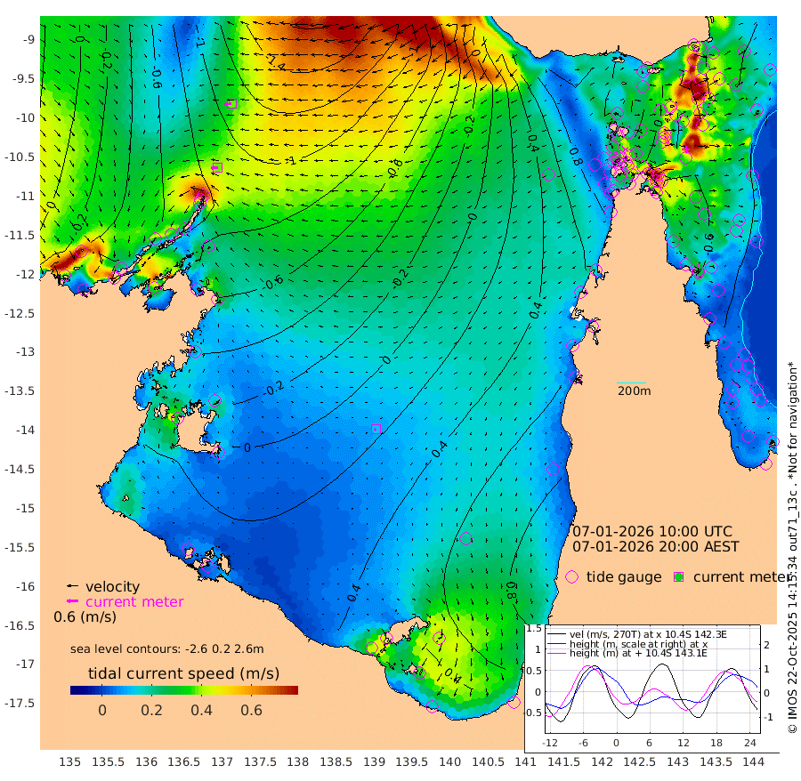 37cm/s -94T +3cm/s rms + 7cm/s -42T. ARA-GOC87 57m 12cm/s -128T +3cm/s rms + 2cm/s -2T. ARA-GOC87 60m 38cm/s -103T +2cm/s rms + 3cm/s 61T. ARA-GOC87 47m -63cm Daru -76cm Bobo Island -48cm Meer Island Barge -56cm Bramble Cay -63cm Unnamed Cay -70cm Pearce Cay -66cm Stephens Island -59cm Merrie England Shoals -59cm Mutacomal Reef -66cm Darnley Island Barge -48cm East Cay -68cm Yorke Island Barge -62cm Rennel Island -72cm Aureed Island -49cm Dungeness Reef -46cm Zagai Island -28cm Yam Island 3cm Dauan Island -7cm Saibai Island 22cm Phipi Reef -33cm Warrior Reef - West 12cm Mabuiag Island Barge -58cm Half Way Island -60cm Coconut Island -58cm Dugong Islet -45cm Poll Island -32cm Kirkcaldie Reef -33cm Suarji Island -46cm Sue Islet 72cm Hawkesbury Island -12cm Alert Patches -23cm Twin Island 63cm Badu Island -20cm St Pauls (Moa Island) 39cm Kubin (Moa Island) 6cm Ince Point 22cm Thursday Island 18cm Nardana Patches 43cm Turtle Head 48cm Round Island 71cm Goods Island 87cm Booby Island 75cm White Rocks Area 51cm Carpentaria -17cm Papou Point 50cm Bampfield Head 86cm Crab Island 81cm Red Wallis Island 60cm Packe Island -67cm Harrington Reef 76cm Herald Camp -1cm Sharp Point 52cm Red Island Point 4cm Possession Island -35cm Alpha Rock -43cm Frederick Point -72cm Wyborn Reef Light -68cm Tetley Island -42cm Triangle Reef -74cm Turtle Head Island -41cm Maclennan Cay -28cm Raine Island -65cm Mcsweeny Reef -57cm Collette Reef -40cm Shadwell Reef -63cm Hannibal Island -57cm Round Point 85cm Vrilya Point -46cm Cape Grenville -47cm Hicks Island -48cm Sir Charles Hardy Island -15cm Harvey Island -41cm Kay Reef -35cm Rocky Island -33cm Chapman Island -33cm Ham Reef -36cm Jubilee Reef -32cm Night Island -32cm Unnamed Reef No. 3 -37cm Morris Island -33cm 1st 3 Mile Opening -35cm Creech Reef -48cm Fife Island -41cm Eden Reef -35cm Stanley Island -45cm Normanby River -66cm Yabooma Island -90cm Hutchison River -69cm Elcho Island -53cm North West Crocodile Island -121cm Cape Wessel -97cm Stevens Island -142cm Guluwuru Island -79cm Hopeful Bay -104cm Auster Point -104cm Two Island Bay -120cm Cadell Strait -230cm Mallison Island -120cm Melville Bay (Gove Harbour) -136cm Truant Island -94cm Cape Arnhem -60cm Cape Grey -37cm Hawk Island -10cm Milner Bay (Groote Eylandt) 9cm Cape Beatrice 40cm West Island 46cm Centre Island 78cm Mornington Island 69cm West Wellesley Islands 96cm Bountiful Island 117cm Albert River Mouth 98cm Sweers Island 132cm Karumba 100cm Nassau River Offshore 92cm Christmas Creek 81cm Archer River 58cm Boyd Point 78cm Weipa (Humbug Point) 70cm Pennefather River 76cm Cullen Point