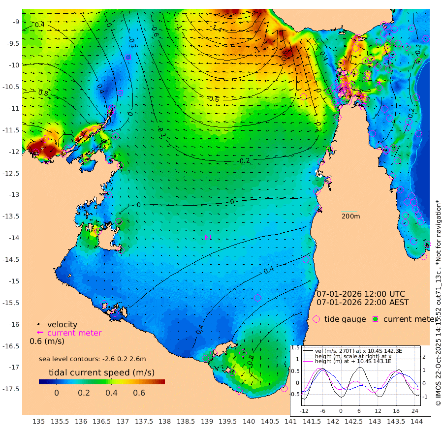 9cm/s -118T +3cm/s rms + 7cm/s -42T. ARA-GOC87 57m 17cm/s -80T +3cm/s rms + 2cm/s -2T. ARA-GOC87 60m 4cm/s -134T +2cm/s rms + 3cm/s 61T. ARA-GOC87 47m -52cm Daru -52cm Bobo Island -22cm Meer Island Barge -23cm Bramble Cay -42cm Unnamed Cay -37cm Pearce Cay -42cm Stephens Island -35cm Merrie England Shoals -46cm Mutacomal Reef -43cm Darnley Island Barge -20cm East Cay -52cm Yorke Island Barge -47cm Rennel Island -51cm Aureed Island -45cm Dungeness Reef -59cm Zagai Island -56cm Yam Island -32cm Dauan Island -46cm Saibai Island -6cm Phipi Reef -50cm Warrior Reef - West -37cm Mabuiag Island Barge -49cm Half Way Island -54cm Coconut Island -57cm Dugong Islet -54cm Poll Island -54cm Kirkcaldie Reef -56cm Suarji Island -64cm Sue Islet -5cm Hawkesbury Island -49cm Alert Patches -56cm Twin Island 3cm Badu Island -60cm St Pauls (Moa Island) -22cm Kubin (Moa Island) -42cm Ince Point -35cm Thursday Island -37cm Nardana Patches -15cm Turtle Head -20cm Round Island 3cm Goods Island 0cm Booby Island 4cm White Rocks Area -52cm Carpentaria -54cm Papou Point -37cm Bampfield Head 5cm Crab Island -2cm Red Wallis Island -7cm Packe Island -65cm Harrington Reef -21cm Herald Camp -19cm Sharp Point -7cm Red Island Point -43cm Possession Island -62cm Alpha Rock -60cm Frederick Point -60cm Wyborn Reef Light -63cm Tetley Island -23cm Triangle Reef -65cm Turtle Head Island -25cm Maclennan Cay -5cm Raine Island -44cm Mcsweeny Reef -35cm Collette Reef -19cm Shadwell Reef -35cm Hannibal Island -22cm Round Point -4cm Vrilya Point -25cm Cape Grenville -23cm Hicks Island -29cm Sir Charles Hardy Island -10cm Harvey Island -16cm Kay Reef -11cm Rocky Island -2cm Chapman Island -12cm Ham Reef -14cm Jubilee Reef -12cm Night Island -9cm Unnamed Reef No. 3 -11cm Morris Island -13cm 1st 3 Mile Opening -14cm Creech Reef -16cm Fife Island -4cm Eden Reef -12cm Stanley Island -12cm Normanby River 88cm Yabooma Island 96cm Hutchison River 90cm Elcho Island 95cm North West Crocodile Island -4cm Cape Wessel 61cm Stevens Island -23cm Guluwuru Island 63cm Hopeful Bay 23cm Auster Point 16cm Two Island Bay 53cm Cadell Strait -92cm Mallison Island -5cm Melville Bay (Gove Harbour) -19cm Truant Island -16cm Cape Arnhem -2cm Cape Grey 15cm Hawk Island 23cm Milner Bay (Groote Eylandt) 33cm Cape Beatrice 29cm West Island 33cm Centre Island 89cm Mornington Island 84cm West Wellesley Islands 129cm Bountiful Island 180cm Albert River Mouth 176cm Sweers Island 178cm Karumba 97cm Nassau River Offshore 65cm Christmas Creek 43cm Archer River 5cm Boyd Point 30cm Weipa (Humbug Point) 12cm Pennefather River -5cm Cullen Point