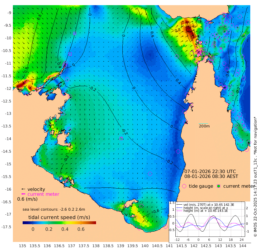 10cm/s -126T +3cm/s rms + 7cm/s -42T. ARA-GOC87 57m 19cm/s 11T +3cm/s rms + 2cm/s -2T. ARA-GOC87 60m 13cm/s -167T +2cm/s rms + 3cm/s 61T. ARA-GOC87 47m -72cm Daru -72cm Bobo Island -32cm Meer Island Barge -43cm Bramble Cay -50cm Unnamed Cay -67cm Pearce Cay -55cm Stephens Island -49cm Merrie England Shoals -58cm Mutacomal Reef -54cm Darnley Island Barge -37cm East Cay -61cm Yorke Island Barge -56cm Rennel Island -68cm Aureed Island -61cm Dungeness Reef -61cm Zagai Island -53cm Yam Island -58cm Dauan Island -52cm Saibai Island -66cm Phipi Reef -79cm Warrior Reef - West -5cm Mabuiag Island Barge -55cm Half Way Island -58cm Coconut Island -57cm Dugong Islet -54cm Poll Island -53cm Kirkcaldie Reef -39cm Suarji Island -52cm Sue Islet 70cm Hawkesbury Island -21cm Alert Patches -29cm Twin Island 47cm Badu Island -33cm St Pauls (Moa Island) 36cm Kubin (Moa Island) -4cm Ince Point 14cm Thursday Island 9cm Nardana Patches 29cm Turtle Head 60cm Round Island 71cm Goods Island 101cm Booby Island 96cm White Rocks Area 110cm Carpentaria -20cm Papou Point 125cm Bampfield Head 76cm Crab Island 86cm Red Wallis Island 44cm Packe Island -59cm Harrington Reef 77cm Herald Camp -17cm Sharp Point 21cm Red Island Point 11cm Possession Island -27cm Alpha Rock -45cm Frederick Point -53cm Wyborn Reef Light -52cm Tetley Island -32cm Triangle Reef -46cm Turtle Head Island -28cm Maclennan Cay -17cm Raine Island -54cm Mcsweeny Reef -48cm Collette Reef -30cm Shadwell Reef -51cm Hannibal Island -44cm Round Point 78cm Vrilya Point -33cm Cape Grenville -35cm Hicks Island -32cm Sir Charles Hardy Island -12cm Harvey Island -23cm Kay Reef -23cm Rocky Island -22cm Chapman Island -18cm Ham Reef -22cm Jubilee Reef -25cm Night Island -20cm Unnamed Reef No. 3 -22cm Morris Island -11cm 1st 3 Mile Opening -21cm Creech Reef -42cm Fife Island -23cm Eden Reef -20cm Stanley Island -27cm Normanby River 69cm Yabooma Island 65cm Hutchison River 67cm Elcho Island 62cm North West Crocodile Island 21cm Cape Wessel 41cm Stevens Island -20cm Guluwuru Island 42cm Hopeful Bay 35cm Auster Point 30cm Two Island Bay -5cm Cadell Strait -138cm Mallison Island -14cm Melville Bay (Gove Harbour) -11cm Truant Island -18cm Cape Arnhem -14cm Cape Grey -19cm Hawk Island -6cm Milner Bay (Groote Eylandt) -16cm Cape Beatrice -18cm West Island -12cm Centre Island -80cm Mornington Island -75cm West Wellesley Islands -84cm Bountiful Island -89cm Albert River Mouth -90cm Sweers Island -98cm Karumba -84cm Nassau River Offshore -61cm Christmas Creek -5cm Archer River 19cm Boyd Point 23cm Weipa (Humbug Point) 35cm Pennefather River 62cm Cullen Point