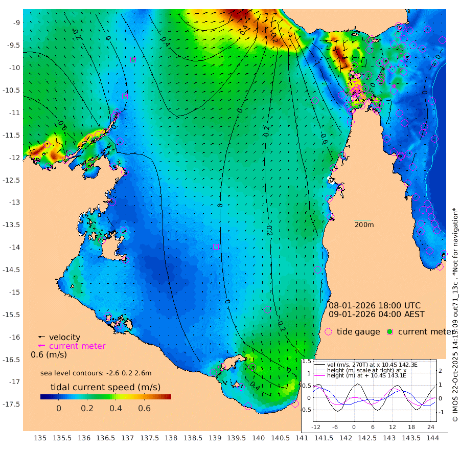 19cm/s 54T +3cm/s rms + 7cm/s -42T. ARA-GOC87 57m 14cm/s 17T +3cm/s rms + 2cm/s -2T. ARA-GOC87 60m 21cm/s 50T +2cm/s rms + 3cm/s 61T. ARA-GOC87 47m 1cm Daru 12cm Bobo Island 0cm Meer Island Barge -4cm Bramble Cay -5cm Unnamed Cay 3cm Pearce Cay 4cm Stephens Island -4cm Merrie England Shoals -10cm Mutacomal Reef 10cm Darnley Island Barge -5cm East Cay 8cm Yorke Island Barge -5cm Rennel Island 13cm Aureed Island -11cm Dungeness Reef -8cm Zagai Island -32cm Yam Island -54cm Dauan Island -40cm Saibai Island -53cm Phipi Reef -20cm Warrior Reef - West -66cm Mabuiag Island Barge -3cm Half Way Island -2cm Coconut Island -8cm Dugong Islet -17cm Poll Island -22cm Kirkcaldie Reef -24cm Suarji Island -11cm Sue Islet -167cm Hawkesbury Island -47cm Alert Patches -41cm Twin Island -133cm Badu Island -41cm St Pauls (Moa Island) -120cm Kubin (Moa Island) -67cm Ince Point -84cm Thursday Island -80cm Nardana Patches -109cm Turtle Head -131cm Round Island -145cm Goods Island -157cm Booby Island -153cm White Rocks Area -102cm Carpentaria -43cm Papou Point -155cm Bampfield Head -131cm Crab Island -151cm Red Wallis Island -134cm Packe Island 1cm Harrington Reef -167cm Herald Camp -4cm Sharp Point -103cm Red Island Point -69cm Possession Island -30cm Alpha Rock -23cm Frederick Point -6cm Wyborn Reef Light -10cm Tetley Island -8cm Triangle Reef -8cm Turtle Head Island -8cm Maclennan Cay -11cm Raine Island 4cm Mcsweeny Reef 2cm Collette Reef -5cm Shadwell Reef 4cm Hannibal Island -7cm Round Point -113cm Vrilya Point -7cm Cape Grenville -7cm Hicks Island -15cm Sir Charles Hardy Island -1cm Harvey Island -9cm Kay Reef -10cm Rocky Island -14cm Chapman Island -11cm Ham Reef -8cm Jubilee Reef -5cm Night Island -10cm Unnamed Reef No. 3 -8cm Morris Island -10cm 1st 3 Mile Opening -7cm Creech Reef 5cm Fife Island -9cm Eden Reef -10cm Stanley Island -9cm Normanby River -83cm Yabooma Island -73cm Hutchison River -62cm Elcho Island -70cm North West Crocodile Island 1cm Cape Wessel -37cm Stevens Island 35cm Guluwuru Island -40cm Hopeful Bay -17cm Auster Point -22cm Two Island Bay -23cm Cadell Strait 121cm Mallison Island 26cm Melville Bay (Gove Harbour) 28cm Truant Island 35cm Cape Arnhem 41cm Cape Grey 36cm Hawk Island 54cm Milner Bay (Groote Eylandt) 47cm Cape Beatrice 63cm West Island 61cm Centre Island 48cm Mornington Island 49cm West Wellesley Islands 35cm Bountiful Island 50cm Albert River Mouth 81cm Sweers Island 35cm Karumba -4cm Nassau River Offshore -37cm Christmas Creek -67cm Archer River -71cm Boyd Point -91cm Weipa (Humbug Point) -70cm Pennefather River -110cm Cullen Point
