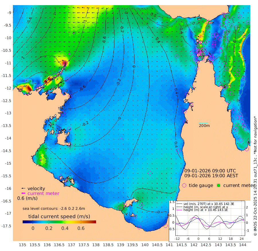 29cm/s -81T +3cm/s rms + 7cm/s -42T. ARA-GOC87 57m 12cm/s 169T +3cm/s rms + 2cm/s -2T. ARA-GOC87 60m 33cm/s -91T +2cm/s rms + 3cm/s 61T. ARA-GOC87 47m 7cm Daru -2cm Bobo Island -12cm Meer Island Barge -12cm Bramble Cay -2cm Unnamed Cay -7cm Pearce Cay -2cm Stephens Island -1cm Merrie England Shoals 7cm Mutacomal Reef -4cm Darnley Island Barge -9cm East Cay 1cm Yorke Island Barge 3cm Rennel Island -1cm Aureed Island 11cm Dungeness Reef 11cm Zagai Island 28cm Yam Island 13cm Dauan Island 15cm Saibai Island 22cm Phipi Reef 17cm Warrior Reef - West 18cm Mabuiag Island Barge 13cm Half Way Island 5cm Coconut Island 16cm Dugong Islet 15cm Poll Island 31cm Kirkcaldie Reef 13cm Suarji Island 19cm Sue Islet 37cm Hawkesbury Island 23cm Alert Patches 25cm Twin Island 15cm Badu Island 27cm St Pauls (Moa Island) 30cm Kubin (Moa Island) 28cm Ince Point 31cm Thursday Island 29cm Nardana Patches 25cm Turtle Head 30cm Round Island 22cm Goods Island 31cm Booby Island 21cm White Rocks Area 42cm Carpentaria 26cm Papou Point 17cm Bampfield Head 38cm Crab Island 36cm Red Wallis Island 38cm Packe Island 16cm Harrington Reef 55cm Herald Camp 17cm Sharp Point 38cm Red Island Point 27cm Possession Island 20cm Alpha Rock 19cm Frederick Point -1cm Wyborn Reef Light 3cm Tetley Island -10cm Triangle Reef 4cm Turtle Head Island -4cm Maclennan Cay -16cm Raine Island -4cm Mcsweeny Reef -6cm Collette Reef -11cm Shadwell Reef -8cm Hannibal Island -13cm Round Point 49cm Vrilya Point -3cm Cape Grenville -7cm Hicks Island -8cm Sir Charles Hardy Island 1cm Harvey Island -10cm Kay Reef -14cm Rocky Island -21cm Chapman Island -13cm Ham Reef -14cm Jubilee Reef -8cm Night Island -13cm Unnamed Reef No. 3 -15cm Morris Island -17cm 1st 3 Mile Opening -11cm Creech Reef -17cm Fife Island -21cm Eden Reef -11cm Stanley Island -13cm Normanby River -156cm Yabooma Island -189cm Hutchison River -161cm Elcho Island -144cm North West Crocodile Island -123cm Cape Wessel -157cm Stevens Island -125cm Guluwuru Island -140cm Hopeful Bay -132cm Auster Point -117cm Two Island Bay -160cm Cadell Strait -136cm Mallison Island -118cm Melville Bay (Gove Harbour) -126cm Truant Island -84cm Cape Arnhem -60cm Cape Grey -42cm Hawk Island -22cm Milner Bay (Groote Eylandt) -7cm Cape Beatrice 33cm West Island 37cm Centre Island 35cm Mornington Island 27cm West Wellesley Islands 16cm Bountiful Island -2cm Albert River Mouth -12cm Sweers Island 23cm Karumba 48cm Nassau River Offshore 51cm Christmas Creek 35cm Archer River 32cm Boyd Point 28cm Weipa (Humbug Point) 39cm Pennefather River 47cm Cullen Point