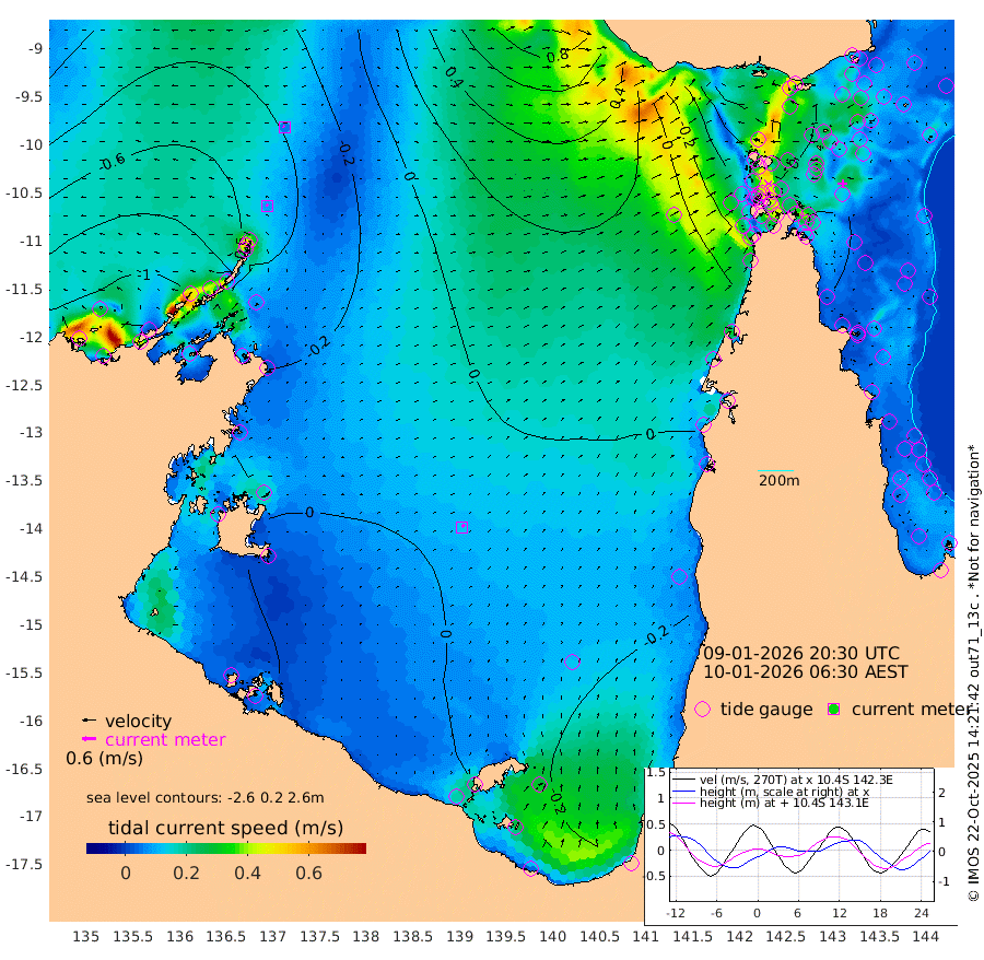 9cm/s -40T +3cm/s rms + 7cm/s -42T. ARA-GOC87 57m 13cm/s 37T +3cm/s rms + 2cm/s -2T. ARA-GOC87 60m 6cm/s -69T +2cm/s rms + 3cm/s 61T. ARA-GOC87 47m -1cm Daru 6cm Bobo Island 8cm Meer Island Barge 1cm Bramble Cay 4cm Unnamed Cay 2cm Pearce Cay 10cm Stephens Island 6cm Merrie England Shoals -3cm Mutacomal Reef 13cm Darnley Island Barge 4cm East Cay 10cm Yorke Island Barge 3cm Rennel Island 11cm Aureed Island -3cm Dungeness Reef -10cm Zagai Island -19cm Yam Island -59cm Dauan Island -44cm Saibai Island -54cm Phipi Reef -27cm Warrior Reef - West -38cm Mabuiag Island Barge 9cm Half Way Island 6cm Coconut Island 7cm Dugong Islet -6cm Poll Island -1cm Kirkcaldie Reef -3cm Suarji Island -1cm Sue Islet -73cm Hawkesbury Island -10cm Alert Patches -10cm Twin Island -64cm Badu Island -15cm St Pauls (Moa Island) -52cm Kubin (Moa Island) -23cm Ince Point -27cm Thursday Island -27cm Nardana Patches -42cm Turtle Head -51cm Round Island -53cm Goods Island -44cm Booby Island -46cm White Rocks Area 14cm Carpentaria -13cm Papou Point -34cm Bampfield Head -38cm Crab Island -46cm Red Wallis Island -54cm Packe Island 16cm Harrington Reef -62cm Herald Camp 0cm Sharp Point -40cm Red Island Point -18cm Possession Island -7cm Alpha Rock -2cm Frederick Point -1cm Wyborn Reef Light -4cm Tetley Island -1cm Triangle Reef 8cm Turtle Head Island 6cm Maclennan Cay 1cm Raine Island 8cm Mcsweeny Reef 7cm Collette Reef 3cm Shadwell Reef 9cm Hannibal Island -2cm Round Point -19cm Vrilya Point 8cm Cape Grenville 3cm Hicks Island 0cm Sir Charles Hardy Island 3cm Harvey Island 7cm Kay Reef 1cm Rocky Island -5cm Chapman Island 1cm Ham Reef 4cm Jubilee Reef 5cm Night Island 3cm Unnamed Reef No. 3 5cm Morris Island 8cm 1st 3 Mile Opening 7cm Creech Reef 1cm Fife Island 4cm Eden Reef 7cm Stanley Island 4cm Normanby River -134cm Yabooma Island -137cm Hutchison River -117cm Elcho Island -121cm North West Crocodile Island -57cm Cape Wessel -108cm Stevens Island -40cm Guluwuru Island -101cm Hopeful Bay -73cm Auster Point -80cm Two Island Bay -120cm Cadell Strait -42cm Mallison Island -46cm Melville Bay (Gove Harbour) -45cm Truant Island -21cm Cape Arnhem -1cm Cape Grey -5cm Hawk Island 23cm Milner Bay (Groote Eylandt) 22cm Cape Beatrice 53cm West Island 57cm Centre Island 10cm Mornington Island 13cm West Wellesley Islands -14cm Bountiful Island -25cm Albert River Mouth -10cm Sweers Island -33cm Karumba -25cm Nassau River Offshore -31cm Christmas Creek -30cm Archer River -20cm Boyd Point -37cm Weipa (Humbug Point) -11cm Pennefather River -27cm Cullen Point
