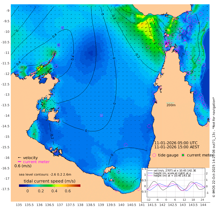5cm/s 58T +3cm/s rms + 7cm/s -42T. ARA-GOC87 57m 11cm/s -161T +3cm/s rms + 2cm/s -2T. ARA-GOC87 60m 7cm/s 32T +2cm/s rms + 3cm/s 61T. ARA-GOC87 47m 16cm Daru 12cm Bobo Island 15cm Meer Island Barge 16cm Bramble Cay 13cm Unnamed Cay 5cm Pearce Cay 10cm Stephens Island 7cm Merrie England Shoals 13cm Mutacomal Reef 12cm Darnley Island Barge 18cm East Cay 11cm Yorke Island Barge 11cm Rennel Island 8cm Aureed Island 7cm Dungeness Reef 24cm Zagai Island 23cm Yam Island 55cm Dauan Island 52cm Saibai Island 33cm Phipi Reef 36cm Warrior Reef - West 22cm Mabuiag Island Barge -1cm Half Way Island 6cm Coconut Island 3cm Dugong Islet 8cm Poll Island 2cm Kirkcaldie Reef 7cm Suarji Island 11cm Sue Islet 8cm Hawkesbury Island -3cm Alert Patches 1cm Twin Island 12cm Badu Island 5cm St Pauls (Moa Island) 12cm Kubin (Moa Island) 3cm Ince Point -1cm Thursday Island 2cm Nardana Patches 6cm Turtle Head 11cm Round Island 3cm Goods Island -9cm Booby Island -7cm White Rocks Area -26cm Carpentaria 3cm Papou Point 6cm Bampfield Head -13cm Crab Island -5cm Red Wallis Island 8cm Packe Island -5cm Harrington Reef 19cm Herald Camp -1cm Sharp Point -4cm Red Island Point -3cm Possession Island 10cm Alpha Rock 3cm Frederick Point 14cm Wyborn Reef Light 15cm Tetley Island 18cm Triangle Reef -7cm Turtle Head Island 14cm Maclennan Cay 18cm Raine Island 11cm Mcsweeny Reef 13cm Collette Reef 17cm Shadwell Reef 11cm Hannibal Island 15cm Round Point -31cm Vrilya Point 11cm Cape Grenville 16cm Hicks Island 31cm Sir Charles Hardy Island 3cm Harvey Island 15cm Kay Reef 20cm Rocky Island 24cm Chapman Island 22cm Ham Reef 19cm Jubilee Reef 13cm Night Island 19cm Unnamed Reef No. 3 17cm Morris Island 14cm 1st 3 Mile Opening 15cm Creech Reef 24cm Fife Island 19cm Eden Reef 14cm Stanley Island 16cm Normanby River 74cm Yabooma Island 85cm Hutchison River 68cm Elcho Island 63cm North West Crocodile Island 65cm Cape Wessel 72cm Stevens Island 77cm Guluwuru Island 67cm Hopeful Bay 57cm Auster Point 60cm Two Island Bay 85cm Cadell Strait 159cm Mallison Island 67cm Melville Bay (Gove Harbour) 71cm Truant Island 48cm Cape Arnhem 22cm Cape Grey 14cm Hawk Island -14cm Milner Bay (Groote Eylandt) -15cm Cape Beatrice -45cm West Island -52cm Centre Island -14cm Mornington Island -12cm West Wellesley Islands 5cm Bountiful Island 2cm Albert River Mouth -17cm Sweers Island -4cm Karumba 1cm Nassau River Offshore 12cm Christmas Creek 1cm Archer River 4cm Boyd Point 11cm Weipa (Humbug Point) -30cm Pennefather River -8cm Cullen Point
