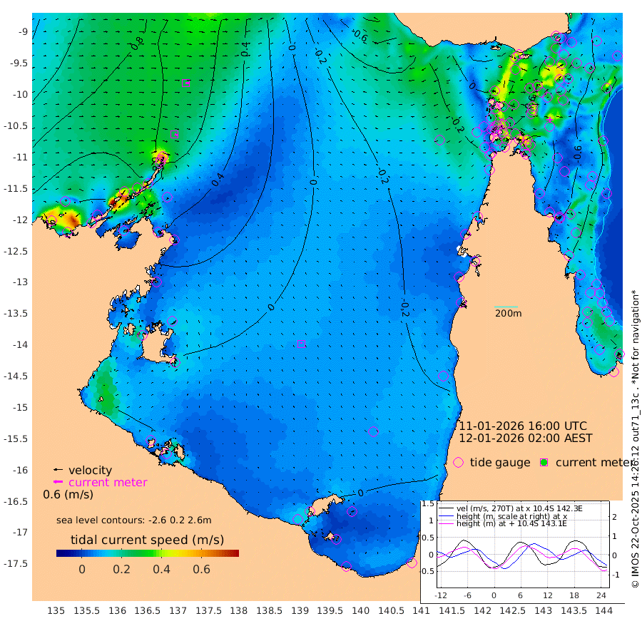 26cm/s 109T +3cm/s rms + 7cm/s -42T. ARA-GOC87 57m 9cm/s -18T +3cm/s rms + 2cm/s -2T. ARA-GOC87 60m 27cm/s 97T +2cm/s rms + 3cm/s 61T. ARA-GOC87 47m -61cm Daru -61cm Bobo Island -41cm Meer Island Barge -49cm Bramble Cay -63cm Unnamed Cay -57cm Pearce Cay -62cm Stephens Island -62cm Merrie England Shoals -68cm Mutacomal Reef -57cm Darnley Island Barge -48cm East Cay -60cm Yorke Island Barge -66cm Rennel Island -65cm Aureed Island -62cm Dungeness Reef -49cm Zagai Island -61cm Yam Island -18cm Dauan Island -24cm Saibai Island -20cm Phipi Reef -49cm Warrior Reef - West -22cm Mabuiag Island Barge -68cm Half Way Island -62cm Coconut Island -75cm Dugong Islet -61cm Poll Island -69cm Kirkcaldie Reef -64cm Suarji Island -58cm Sue Islet -17cm Hawkesbury Island -53cm Alert Patches -59cm Twin Island -4cm Badu Island -53cm St Pauls (Moa Island) -32cm Kubin (Moa Island) -45cm Ince Point -41cm Thursday Island -41cm Nardana Patches -33cm Turtle Head -29cm Round Island -22cm Goods Island -20cm Booby Island -27cm White Rocks Area -44cm Carpentaria -50cm Papou Point -35cm Bampfield Head -10cm Crab Island -28cm Red Wallis Island -36cm Packe Island -79cm Harrington Reef -43cm Herald Camp -17cm Sharp Point -28cm Red Island Point -44cm Possession Island -59cm Alpha Rock -63cm Frederick Point -61cm Wyborn Reef Light -60cm Tetley Island -39cm Triangle Reef -58cm Turtle Head Island -50cm Maclennan Cay -29cm Raine Island -58cm Mcsweeny Reef -53cm Collette Reef -37cm Shadwell Reef -57cm Hannibal Island -49cm Round Point -10cm Vrilya Point -56cm Cape Grenville -48cm Hicks Island -59cm Sir Charles Hardy Island -18cm Harvey Island -49cm Kay Reef -38cm Rocky Island -31cm Chapman Island -35cm Ham Reef -36cm Jubilee Reef -37cm Night Island -37cm Unnamed Reef No. 3 -40cm Morris Island -36cm 1st 3 Mile Opening -40cm Creech Reef -33cm Fife Island -40cm Eden Reef -43cm Stanley Island -48cm Normanby River 118cm Yabooma Island 132cm Hutchison River 119cm Elcho Island 114cm North West Crocodile Island 66cm Cape Wessel 116cm Stevens Island 60cm Guluwuru Island 105cm Hopeful Bay 87cm Auster Point 85cm Two Island Bay 128cm Cadell Strait 77cm Mallison Island 66cm Melville Bay (Gove Harbour) 67cm Truant Island 43cm Cape Arnhem 30cm Cape Grey 26cm Hawk Island 13cm Milner Bay (Groote Eylandt) 3cm Cape Beatrice -24cm West Island -25cm Centre Island -13cm Mornington Island -20cm West Wellesley Islands -5cm Bountiful Island 24cm Albert River Mouth 45cm Sweers Island 23cm Karumba -16cm Nassau River Offshore -26cm Christmas Creek -11cm Archer River -21cm Boyd Point -16cm Weipa (Humbug Point) 1cm Pennefather River -21cm Cullen Point
