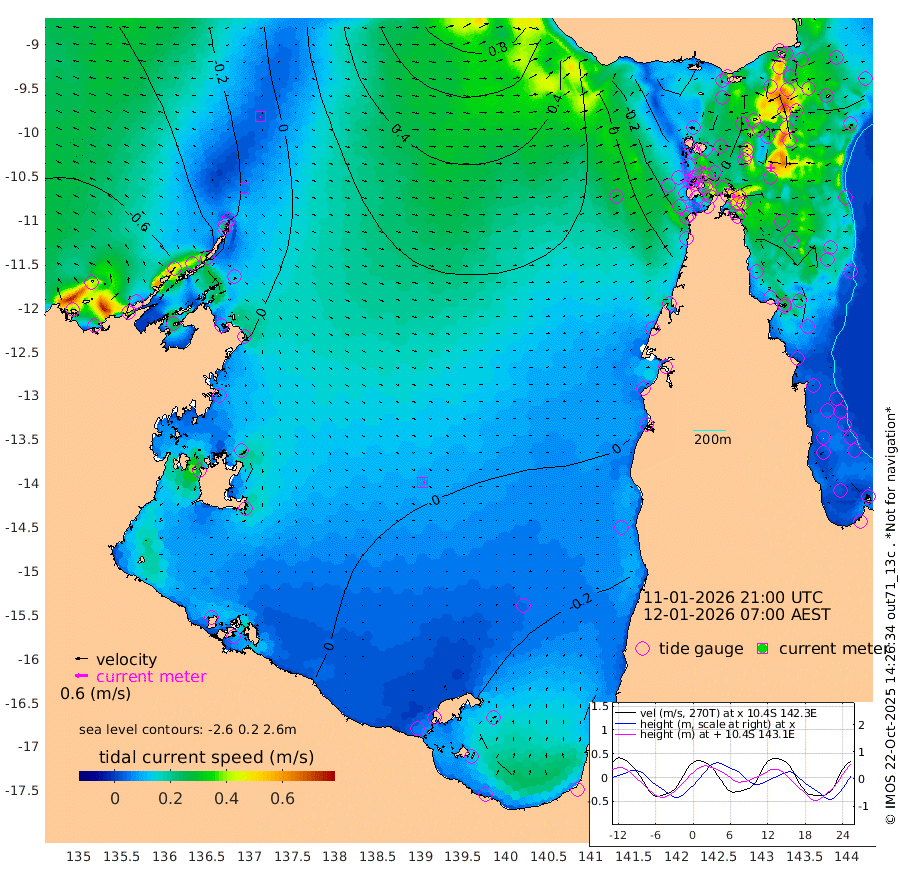 5cm/s 95T +3cm/s rms + 7cm/s -42T. ARA-GOC87 57m 8cm/s 114T +3cm/s rms + 2cm/s -2T. ARA-GOC87 60m 3cm/s 121T +2cm/s rms + 3cm/s 61T. ARA-GOC87 47m 37cm Daru 52cm Bobo Island 52cm Meer Island Barge 53cm Bramble Cay 49cm Unnamed Cay 54cm Pearce Cay 57cm Stephens Island 55cm Merrie England Shoals 39cm Mutacomal Reef 59cm Darnley Island Barge 56cm East Cay 51cm Yorke Island Barge 45cm Rennel Island 53cm Aureed Island 30cm Dungeness Reef 6cm Zagai Island -4cm Yam Island -49cm Dauan Island -31cm Saibai Island -36cm Phipi Reef -6cm Warrior Reef - West -30cm Mabuiag Island Barge 46cm Half Way Island 42cm Coconut Island 40cm Dugong Islet 18cm Poll Island 23cm Kirkcaldie Reef 10cm Suarji Island 21cm Sue Islet -40cm Hawkesbury Island 8cm Alert Patches 9cm Twin Island -37cm Badu Island -4cm St Pauls (Moa Island) -31cm Kubin (Moa Island) -9cm Ince Point -13cm Thursday Island -13cm Nardana Patches -20cm Turtle Head -32cm Round Island -25cm Goods Island -21cm Booby Island -22cm White Rocks Area 20cm Carpentaria 0cm Papou Point -12cm Bampfield Head -20cm Crab Island -23cm Red Wallis Island -27cm Packe Island 51cm Harrington Reef -42cm Herald Camp -3cm Sharp Point -14cm Red Island Point -2cm Possession Island 9cm Alpha Rock 24cm Frederick Point 38cm Wyborn Reef Light 32cm Tetley Island 42cm Triangle Reef 47cm Turtle Head Island 49cm Maclennan Cay 45cm Raine Island 52cm Mcsweeny Reef 53cm Collette Reef 47cm Shadwell Reef 60cm Hannibal Island 55cm Round Point -5cm Vrilya Point 56cm Cape Grenville 50cm Hicks Island 51cm Sir Charles Hardy Island 17cm Harvey Island 59cm Kay Reef 49cm Rocky Island 49cm Chapman Island 50cm Ham Reef 50cm Jubilee Reef 46cm Night Island 53cm Unnamed Reef No. 3 54cm Morris Island 49cm 1st 3 Mile Opening 54cm Creech Reef 50cm Fife Island 62cm Eden Reef 55cm Stanley Island 59cm Normanby River -96cm Yabooma Island -86cm Hutchison River -79cm Elcho Island -86cm North West Crocodile Island -23cm Cape Wessel -68cm Stevens Island 1cm Guluwuru Island -61cm Hopeful Bay -39cm Auster Point -50cm Two Island Bay -64cm Cadell Strait 42cm Mallison Island -12cm Melville Bay (Gove Harbour) -9cm Truant Island 0cm Cape Arnhem 3cm Cape Grey -5cm Hawk Island -6cm Milner Bay (Groote Eylandt) -6cm Cape Beatrice 2cm West Island 6cm Centre Island -15cm Mornington Island -14cm West Wellesley Islands -39cm Bountiful Island -65cm Albert River Mouth -54cm Sweers Island -65cm Karumba -24cm Nassau River Offshore -14cm Christmas Creek -3cm Archer River 1cm Boyd Point -11cm Weipa (Humbug Point) 4cm Pennefather River -13cm Cullen Point