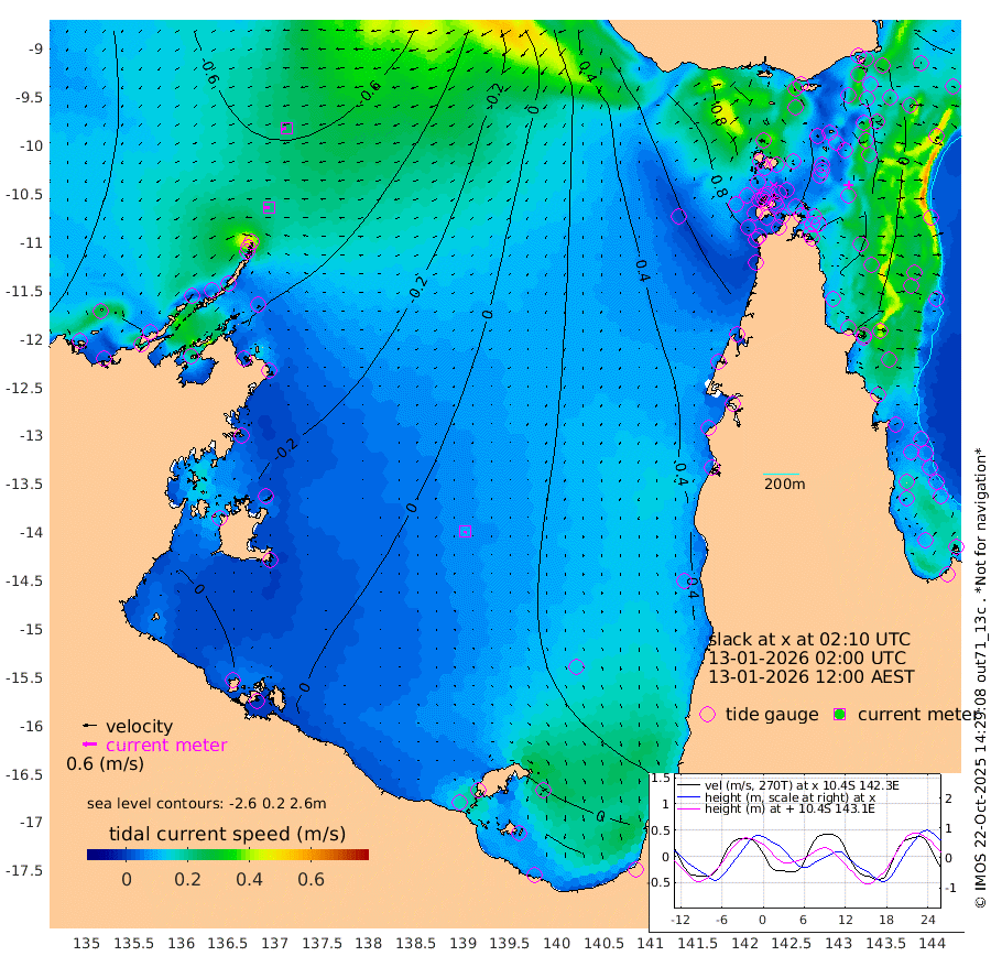 21cm/s -97T +3cm/s rms + 7cm/s -42T. ARA-GOC87 57m 10cm/s -175T +3cm/s rms + 2cm/s -2T. ARA-GOC87 60m 23cm/s -106T +2cm/s rms + 3cm/s 61T. ARA-GOC87 47m 44cm Daru 32cm Bobo Island 3cm Meer Island Barge 5cm Bramble Cay 28cm Unnamed Cay 33cm Pearce Cay 23cm Stephens Island 16cm Merrie England Shoals 39cm Mutacomal Reef 16cm Darnley Island Barge 2cm East Cay 32cm Yorke Island Barge 43cm Rennel Island 39cm Aureed Island 65cm Dungeness Reef 77cm Zagai Island 86cm Yam Island 112cm Dauan Island 93cm Saibai Island 108cm Phipi Reef 86cm Warrior Reef - West 104cm Mabuiag Island Barge 41cm Half Way Island 54cm Coconut Island 57cm Dugong Islet 74cm Poll Island 75cm Kirkcaldie Reef 109cm Suarji Island 70cm Sue Islet 120cm Hawkesbury Island 105cm Alert Patches 97cm Twin Island 122cm Badu Island 108cm St Pauls (Moa Island) 114cm Kubin (Moa Island) 108cm Ince Point 112cm Thursday Island 112cm Nardana Patches 120cm Turtle Head 110cm Round Island 122cm Goods Island 122cm Booby Island 124cm White Rocks Area 89cm Carpentaria 92cm Papou Point 125cm Bampfield Head 95cm Crab Island 114cm Red Wallis Island 109cm Packe Island 60cm Harrington Reef 121cm Herald Camp 28cm Sharp Point 100cm Red Island Point 100cm Possession Island 76cm Alpha Rock 78cm Frederick Point 44cm Wyborn Reef Light 50cm Tetley Island 12cm Triangle Reef 54cm Turtle Head Island 15cm Maclennan Cay 1cm Raine Island 27cm Mcsweeny Reef 18cm Collette Reef 6cm Shadwell Reef 13cm Hannibal Island 5cm Round Point 79cm Vrilya Point 6cm Cape Grenville 9cm Hicks Island 14cm Sir Charles Hardy Island 3cm Harvey Island -4cm Kay Reef 0cm Rocky Island -4cm Chapman Island -4cm Ham Reef 0cm Jubilee Reef -1cm Night Island -4cm Unnamed Reef No. 3 -1cm Morris Island 11cm 1st 3 Mile Opening 3cm Creech Reef -7cm Fife Island -10cm Eden Reef -4cm Stanley Island -8cm Normanby River -39cm Yabooma Island -48cm Hutchison River -51cm Elcho Island -46cm North West Crocodile Island -56cm Cape Wessel -67cm Stevens Island -60cm Guluwuru Island -66cm Hopeful Bay -50cm Auster Point -59cm Two Island Bay -73cm Cadell Strait -190cm Mallison Island -53cm Melville Bay (Gove Harbour) -55cm Truant Island -39cm Cape Arnhem -22cm Cape Grey -28cm Hawk Island -23cm Milner Bay (Groote Eylandt) -14cm Cape Beatrice -3cm West Island -5cm Centre Island -4cm Mornington Island 6cm West Wellesley Islands 10cm Bountiful Island -15cm Albert River Mouth -33cm Sweers Island -12cm Karumba 14cm Nassau River Offshore 34cm Christmas Creek 43cm Archer River 57cm Boyd Point 64cm Weipa (Humbug Point) 46cm Pennefather River 73cm Cullen Point