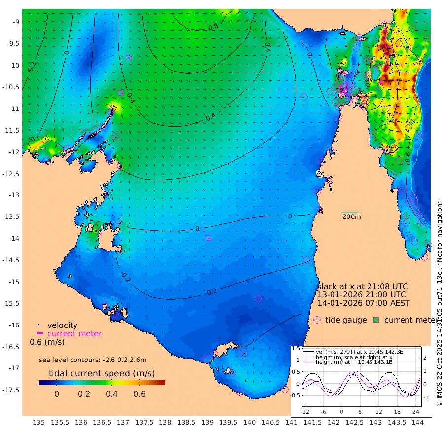 20cm/s 114T +3cm/s rms + 7cm/s -42T. ARA-GOC87 57m 12cm/s 144T +3cm/s rms + 2cm/s -2T. ARA-GOC87 60m 16cm/s 111T +2cm/s rms + 3cm/s 61T. ARA-GOC87 47m 38cm Daru 52cm Bobo Island 68cm Meer Island Barge 73cm Bramble Cay 61cm Unnamed Cay 59cm Pearce Cay 63cm Stephens Island 71cm Merrie England Shoals 47cm Mutacomal Reef 67cm Darnley Island Barge 74cm East Cay 53cm Yorke Island Barge 47cm Rennel Island 49cm Aureed Island 24cm Dungeness Reef -6cm Zagai Island -15cm Yam Island -50cm Dauan Island -33cm Saibai Island -39cm Phipi Reef -16cm Warrior Reef - West -28cm Mabuiag Island Barge 43cm Half Way Island 38cm Coconut Island 33cm Dugong Islet 9cm Poll Island 12cm Kirkcaldie Reef -11cm Suarji Island 13cm Sue Islet 0cm Hawkesbury Island 1cm Alert Patches -2cm Twin Island -9cm Badu Island -19cm St Pauls (Moa Island) -13cm Kubin (Moa Island) -12cm Ince Point -12cm Thursday Island -13cm Nardana Patches -8cm Turtle Head -4cm Round Island 2cm Goods Island 7cm Booby Island 2cm White Rocks Area 27cm Carpentaria -10cm Papou Point 27cm Bampfield Head 3cm Crab Island 2cm Red Wallis Island -4cm Packe Island 39cm Harrington Reef -9cm Herald Camp -13cm Sharp Point -3cm Red Island Point 0cm Possession Island 5cm Alpha Rock 17cm Frederick Point 46cm Wyborn Reef Light 38cm Tetley Island 58cm Triangle Reef 51cm Turtle Head Island 60cm Maclennan Cay 66cm Raine Island 59cm Mcsweeny Reef 65cm Collette Reef 66cm Shadwell Reef 75cm Hannibal Island 78cm Round Point 13cm Vrilya Point 73cm Cape Grenville 67cm Hicks Island 70cm Sir Charles Hardy Island 20cm Harvey Island 83cm Kay Reef 71cm Rocky Island 76cm Chapman Island 73cm Ham Reef 70cm Jubilee Reef 62cm Night Island 75cm Unnamed Reef No. 3 75cm Morris Island 67cm 1st 3 Mile Opening 71cm Creech Reef 69cm Fife Island 90cm Eden Reef 78cm Stanley Island 81cm Normanby River -5cm Yabooma Island 15cm Hutchison River 7cm Elcho Island -5cm North West Crocodile Island 34cm Cape Wessel 19cm Stevens Island 55cm Guluwuru Island 23cm Hopeful Bay 27cm Auster Point 18cm Two Island Bay 26cm Cadell Strait 153cm Mallison Island 39cm Melville Bay (Gove Harbour) 46cm Truant Island 30cm Cape Arnhem 11cm Cape Grey 2cm Hawk Island -29cm Milner Bay (Groote Eylandt) -34cm Cape Beatrice -57cm West Island -53cm Centre Island -61cm Mornington Island -64cm West Wellesley Islands -84cm Bountiful Island -114cm Albert River Mouth -104cm Sweers Island -109cm Karumba -49cm Nassau River Offshore -22cm Christmas Creek 10cm Archer River 14cm Boyd Point 7cm Weipa (Humbug Point) 20cm Pennefather River 6cm Cullen Point