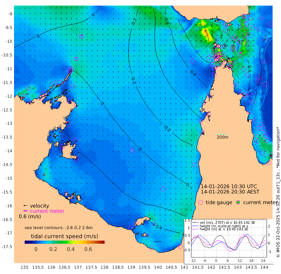 13cm/s -3T +3cm/s rms + 7cm/s -42T. ARA-GOC87 57m 12cm/s -21T +3cm/s rms + 2cm/s -2T. ARA-GOC87 60m 13cm/s 10T +2cm/s rms + 3cm/s 61T. ARA-GOC87 47m 13cm Daru 22cm Bobo Island 10cm Meer Island Barge 25cm Bramble Cay 23cm Unnamed Cay 18cm Pearce Cay 21cm Stephens Island 33cm Merrie England Shoals 28cm Mutacomal Reef 17cm Darnley Island Barge 18cm East Cay 14cm Yorke Island Barge 14cm Rennel Island 17cm Aureed Island -1cm Dungeness Reef -18cm Zagai Island -16cm Yam Island -70cm Dauan Island -55cm Saibai Island -59cm Phipi Reef -23cm Warrior Reef - West -69cm Mabuiag Island Barge 18cm Half Way Island 6cm Coconut Island 11cm Dugong Islet -7cm Poll Island -6cm Kirkcaldie Reef -31cm Suarji Island -12cm Sue Islet -117cm Hawkesbury Island -46cm Alert Patches -33cm Twin Island -114cm Badu Island -44cm St Pauls (Moa Island) -90cm Kubin (Moa Island) -58cm Ince Point -71cm Thursday Island -69cm Nardana Patches -89cm Turtle Head -100cm Round Island -113cm Goods Island -128cm Booby Island -111cm White Rocks Area -103cm Carpentaria -37cm Papou Point -141cm Bampfield Head -107cm Crab Island -109cm Red Wallis Island -86cm Packe Island 14cm Harrington Reef -115cm Herald Camp -5cm Sharp Point -74cm Red Island Point -64cm Possession Island -15cm Alpha Rock -13cm Frederick Point 14cm Wyborn Reef Light 8cm Tetley Island 6cm Triangle Reef -6cm Turtle Head Island 8cm Maclennan Cay 1cm Raine Island 17cm Mcsweeny Reef 18cm Collette Reef 7cm Shadwell Reef 26cm Hannibal Island 25cm Round Point -100cm Vrilya Point 23cm Cape Grenville 13cm Hicks Island 12cm Sir Charles Hardy Island 5cm Harvey Island 23cm Kay Reef 9cm Rocky Island 9cm Chapman Island 6cm Ham Reef 6cm Jubilee Reef 10cm Night Island 10cm Unnamed Reef No. 3 10cm Morris Island -6cm 1st 3 Mile Opening 6cm Creech Reef 13cm Fife Island 15cm Eden Reef 13cm Stanley Island 24cm Normanby River -19cm Yabooma Island -21cm Hutchison River -12cm Elcho Island -7cm North West Crocodile Island 6cm Cape Wessel 2cm Stevens Island 4cm Guluwuru Island 2cm Hopeful Bay -8cm Auster Point -4cm Two Island Bay -8cm Cadell Strait 73cm Mallison Island 1cm Melville Bay (Gove Harbour) -3cm Truant Island 1cm Cape Arnhem 7cm Cape Grey 22cm Hawk Island 40cm Milner Bay (Groote Eylandt) 44cm Cape Beatrice 61cm West Island 61cm Centre Island 69cm Mornington Island 71cm West Wellesley Islands 73cm Bountiful Island 101cm Albert River Mouth 101cm Sweers Island 90cm Karumba 44cm Nassau River Offshore 6cm Christmas Creek -39cm Archer River -60cm Boyd Point -65cm Weipa (Humbug Point) -67cm Pennefather River -86cm Cullen Point