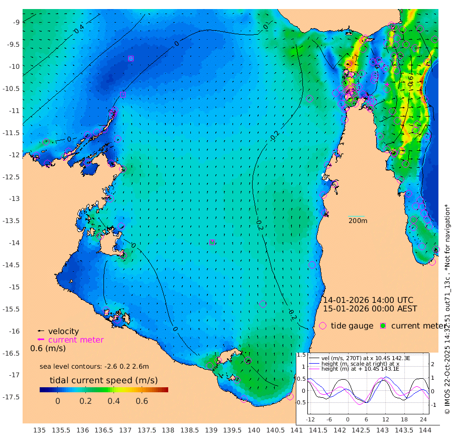 6cm/s 54T +3cm/s rms + 7cm/s -42T. ARA-GOC87 57m 22cm/s 4T +3cm/s rms + 2cm/s -2T. ARA-GOC87 60m 9cm/s 73T +2cm/s rms + 3cm/s 61T. ARA-GOC87 47m -41cm Daru -41cm Bobo Island -64cm Meer Island Barge -65cm Bramble Cay -57cm Unnamed Cay -43cm Pearce Cay -54cm Stephens Island -59cm Merrie England Shoals -44cm Mutacomal Reef -59cm Darnley Island Barge -70cm East Cay -48cm Yorke Island Barge -45cm Rennel Island -38cm Aureed Island -32cm Dungeness Reef -17cm Zagai Island -17cm Yam Island -23cm Dauan Island -29cm Saibai Island -31cm Phipi Reef -24cm Warrior Reef - West -17cm Mabuiag Island Barge -35cm Half Way Island -34cm Coconut Island -32cm Dugong Islet -17cm Poll Island -27cm Kirkcaldie Reef -11cm Suarji Island -26cm Sue Islet -49cm Hawkesbury Island -20cm Alert Patches -13cm Twin Island -45cm Badu Island -4cm St Pauls (Moa Island) -29cm Kubin (Moa Island) -16cm Ince Point -18cm Thursday Island -18cm Nardana Patches -36cm Turtle Head -39cm Round Island -49cm Goods Island -48cm Booby Island -40cm White Rocks Area -34cm Carpentaria -9cm Papou Point -63cm Bampfield Head -39cm Crab Island -38cm Red Wallis Island -35cm Packe Island -27cm Harrington Reef -52cm Herald Camp 4cm Sharp Point -36cm Red Island Point -22cm Possession Island -14cm Alpha Rock -21cm Frederick Point -37cm Wyborn Reef Light -31cm Tetley Island -55cm Triangle Reef -33cm Turtle Head Island -61cm Maclennan Cay -69cm Raine Island -50cm Mcsweeny Reef -59cm Collette Reef -66cm Shadwell Reef -64cm Hannibal Island -65cm Round Point -30cm Vrilya Point -66cm Cape Grenville -66cm Hicks Island -80cm Sir Charles Hardy Island -19cm Harvey Island -77cm Kay Reef -73cm Rocky Island -76cm Chapman Island -74cm Ham Reef -72cm Jubilee Reef -58cm Night Island -73cm Unnamed Reef No. 3 -74cm Morris Island -71cm 1st 3 Mile Opening -71cm Creech Reef -64cm Fife Island -85cm Eden Reef -76cm Stanley Island -75cm Normanby River 12cm Yabooma Island -3cm Hutchison River 8cm Elcho Island 14cm North West Crocodile Island 5cm Cape Wessel 12cm Stevens Island -29cm Guluwuru Island 2cm Hopeful Bay 8cm Auster Point 16cm Two Island Bay 1cm Cadell Strait -98cm Mallison Island -15cm Melville Bay (Gove Harbour) -13cm Truant Island -9cm Cape Arnhem -3cm Cape Grey 8cm Hawk Island 37cm Milner Bay (Groote Eylandt) 31cm Cape Beatrice 51cm West Island 51cm Centre Island 10cm Mornington Island 13cm West Wellesley Islands -3cm Bountiful Island 26cm Albert River Mouth 42cm Sweers Island 19cm Karumba -17cm Nassau River Offshore -44cm Christmas Creek -55cm Archer River -51cm Boyd Point -59cm Weipa (Humbug Point) -30cm Pennefather River -36cm Cullen Point