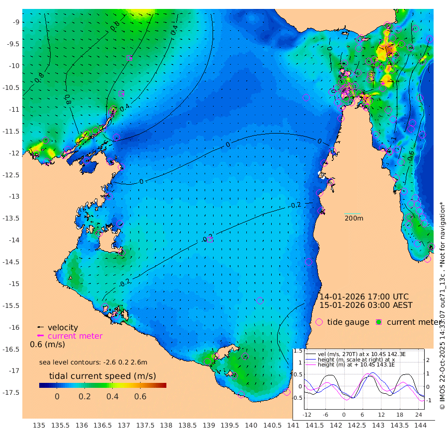 20cm/s 114T +3cm/s rms + 7cm/s -42T. ARA-GOC87 57m 16cm/s 13T +3cm/s rms + 2cm/s -2T. ARA-GOC87 60m 22cm/s 109T +2cm/s rms + 3cm/s 61T. ARA-GOC87 47m -98cm Daru -102cm Bobo Island -65cm Meer Island Barge -88cm Bramble Cay -101cm Unnamed Cay -101cm Pearce Cay -95cm Stephens Island -104cm Merrie England Shoals -110cm Mutacomal Reef -88cm Darnley Island Barge -80cm East Cay -93cm Yorke Island Barge -100cm Rennel Island -100cm Aureed Island -94cm Dungeness Reef -74cm Zagai Island -80cm Yam Island -42cm Dauan Island -49cm Saibai Island -60cm Phipi Reef -82cm Warrior Reef - West -31cm Mabuiag Island Barge -95cm Half Way Island -97cm Coconut Island -100cm Dugong Islet -86cm Poll Island -91cm Kirkcaldie Reef -84cm Suarji Island -82cm Sue Islet -8cm Hawkesbury Island -69cm Alert Patches -73cm Twin Island -9cm Badu Island -63cm St Pauls (Moa Island) -21cm Kubin (Moa Island) -50cm Ince Point -39cm Thursday Island -41cm Nardana Patches -32cm Turtle Head -13cm Round Island -10cm Goods Island 9cm Booby Island -6cm White Rocks Area 13cm Carpentaria -57cm Papou Point 6cm Bampfield Head 14cm Crab Island -3cm Red Wallis Island -26cm Packe Island -107cm Harrington Reef -11cm Herald Camp -21cm Sharp Point -36cm Red Island Point -43cm Possession Island -73cm Alpha Rock -86cm Frederick Point -97cm Wyborn Reef Light -93cm Tetley Island -66cm Triangle Reef -84cm Turtle Head Island -71cm Maclennan Cay -52cm Raine Island -92cm Mcsweeny Reef -89cm Collette Reef -66cm Shadwell Reef -97cm Hannibal Island -90cm Round Point 21cm Vrilya Point -86cm Cape Grenville -76cm Hicks Island -87cm Sir Charles Hardy Island -25cm Harvey Island -81cm Kay Reef -66cm Rocky Island -65cm Chapman Island -60cm Ham Reef -61cm Jubilee Reef -58cm Night Island -65cm Unnamed Reef No. 3 -66cm Morris Island -53cm 1st 3 Mile Opening -63cm Creech Reef -62cm Fife Island -71cm Eden Reef -68cm Stanley Island -78cm Normanby River 91cm Yabooma Island 92cm Hutchison River 90cm Elcho Island 85cm North West Crocodile Island 50cm Cape Wessel 82cm Stevens Island 32cm Guluwuru Island 72cm Hopeful Bay 67cm Auster Point 77cm Two Island Bay 83cm Cadell Strait -3cm Mallison Island 38cm Melville Bay (Gove Harbour) 43cm Truant Island 25cm Cape Arnhem 13cm Cape Grey 6cm Hawk Island 8cm Milner Bay (Groote Eylandt) -7cm Cape Beatrice -21cm West Island -21cm Centre Island -57cm Mornington Island -63cm West Wellesley Islands -71cm Bountiful Island -48cm Albert River Mouth -31cm Sweers Island -52cm Karumba -66cm Nassau River Offshore -64cm Christmas Creek -32cm Archer River -19cm Boyd Point -20cm Weipa (Humbug Point) 10cm Pennefather River 7cm Cullen Point