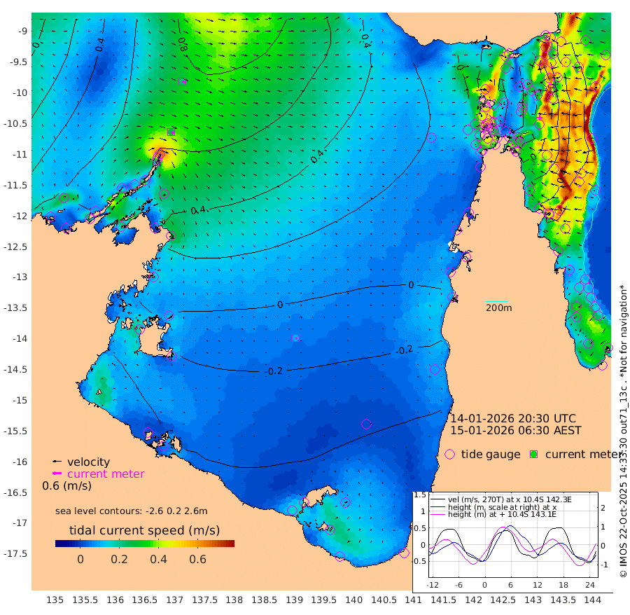 27cm/s 116T +3cm/s rms + 7cm/s -42T. ARA-GOC87 57m 9cm/s 137T +3cm/s rms + 2cm/s -2T. ARA-GOC87 60m 23cm/s 112T +2cm/s rms + 3cm/s 61T. ARA-GOC87 47m 6cm Daru 15cm Bobo Island 53cm Meer Island Barge 52cm Bramble Cay 34cm Unnamed Cay 23cm Pearce Cay 34cm Stephens Island 43cm Merrie England Shoals 15cm Mutacomal Reef 40cm Darnley Island Barge 53cm East Cay 22cm Yorke Island Barge 15cm Rennel Island 10cm Aureed Island -9cm Dungeness Reef -36cm Zagai Island -43cm Yam Island -64cm Dauan Island -51cm Saibai Island -59cm Phipi Reef -48cm Warrior Reef - West -39cm Mabuiag Island Barge 12cm Half Way Island 2cm Coconut Island -1cm Dugong Islet -24cm Poll Island -20cm Kirkcaldie Reef -49cm Suarji Island -18cm Sue Islet 12cm Hawkesbury Island -27cm Alert Patches -32cm Twin Island -3cm Badu Island -46cm St Pauls (Moa Island) -11cm Kubin (Moa Island) -30cm Ince Point -25cm Thursday Island -27cm Nardana Patches -13cm Turtle Head 4cm Round Island 11cm Goods Island 21cm Booby Island 11cm White Rocks Area 33cm Carpentaria -34cm Papou Point 43cm Bampfield Head 17cm Crab Island 11cm Red Wallis Island -3cm Packe Island -2cm Harrington Reef 5cm Herald Camp -23cm Sharp Point -12cm Red Island Point -15cm Possession Island -22cm Alpha Rock -17cm Frederick Point 15cm Wyborn Reef Light 7cm Tetley Island 40cm Triangle Reef 22cm Turtle Head Island 42cm Maclennan Cay 56cm Raine Island 30cm Mcsweeny Reef 40cm Collette Reef 52cm Shadwell Reef 48cm Hannibal Island 55cm Round Point 26cm Vrilya Point 52cm Cape Grenville 48cm Hicks Island 51cm Sir Charles Hardy Island 14cm Harvey Island 66cm Kay Reef 57cm Rocky Island 62cm Chapman Island 61cm Ham Reef 58cm Jubilee Reef 49cm Night Island 61cm Unnamed Reef No. 3 61cm Morris Island 58cm 1st 3 Mile Opening 58cm Creech Reef 53cm Fife Island 77cm Eden Reef 65cm Stanley Island 65cm Normanby River 60cm Yabooma Island 81cm Hutchison River 69cm Elcho Island 54cm North West Crocodile Island 65cm Cape Wessel 75cm Stevens Island 79cm Guluwuru Island 74cm Hopeful Bay 67cm Auster Point 64cm Two Island Bay 79cm Cadell Strait 177cm Mallison Island 64cm Melville Bay (Gove Harbour) 72cm Truant Island 44cm Cape Arnhem 16cm Cape Grey 5cm Hawk Island -31cm Milner Bay (Groote Eylandt) -41cm Cape Beatrice -78cm West Island -74cm Centre Island -85cm Mornington Island -91cm West Wellesley Islands -107cm Bountiful Island -126cm Albert River Mouth -117cm Sweers Island -123cm Karumba -69cm Nassau River Offshore -38cm Christmas Creek 7cm Archer River 13cm Boyd Point 11cm Weipa (Humbug Point) 26cm Pennefather River 16cm Cullen Point