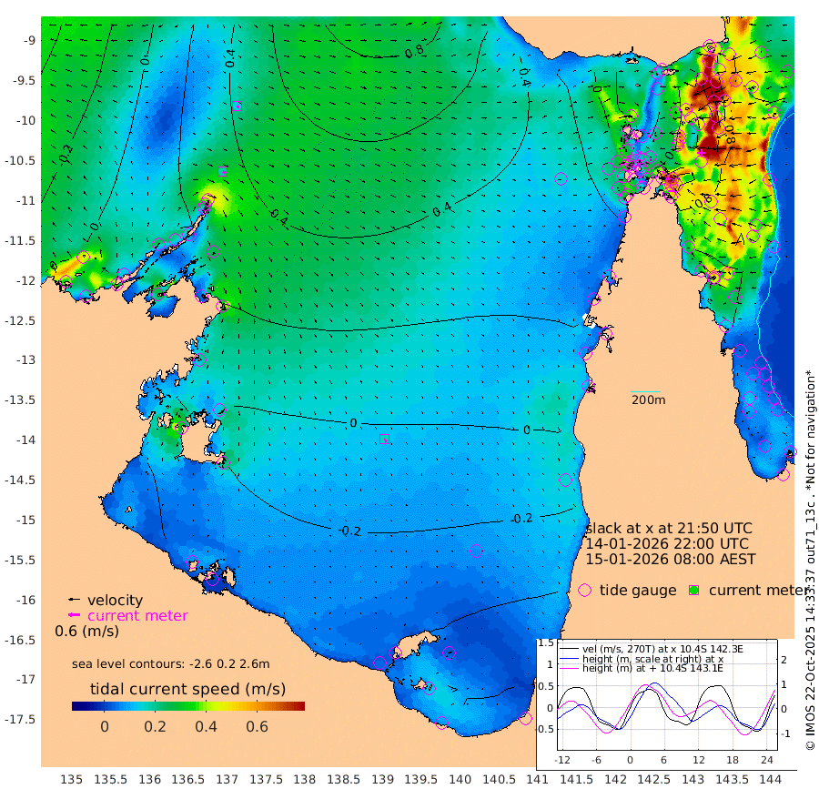 19cm/s 122T +3cm/s rms + 7cm/s -42T. ARA-GOC87 57m 17cm/s 154T +3cm/s rms + 2cm/s -2T. ARA-GOC87 60m 13cm/s 124T +2cm/s rms + 3cm/s 61T. ARA-GOC87 47m 74cm Daru 85cm Bobo Island 87cm Meer Island Barge 101cm Bramble Cay 97cm Unnamed Cay 93cm Pearce Cay 95cm Stephens Island 107cm Merrie England Shoals 88cm Mutacomal Reef 94cm Darnley Island Barge 95cm East Cay 84cm Yorke Island Barge 84cm Rennel Island 81cm Aureed Island 61cm Dungeness Reef 25cm Zagai Island 20cm Yam Island -23cm Dauan Island -10cm Saibai Island -9cm Phipi Reef 17cm Warrior Reef - West 0cm Mabuiag Island Barge 79cm Half Way Island 75cm Coconut Island 72cm Dugong Islet 47cm Poll Island 50cm Kirkcaldie Reef 28cm Suarji Island 47cm Sue Islet 41cm Hawkesbury Island 41cm Alert Patches 38cm Twin Island 25cm Badu Island 20cm St Pauls (Moa Island) 26cm Kubin (Moa Island) 26cm Ince Point 25cm Thursday Island 24cm Nardana Patches 29cm Turtle Head 35cm Round Island 39cm Goods Island 40cm Booby Island 40cm White Rocks Area 50cm Carpentaria 24cm Papou Point 67cm Bampfield Head 28cm Crab Island 37cm Red Wallis Island 36cm Packe Island 80cm Harrington Reef 32cm Herald Camp -3cm Sharp Point 28cm Red Island Point 37cm Possession Island 43cm Alpha Rock 56cm Frederick Point 86cm Wyborn Reef Light 78cm Tetley Island 79cm Triangle Reef 91cm Turtle Head Island 82cm Maclennan Cay 79cm Raine Island 91cm Mcsweeny Reef 94cm Collette Reef 86cm Shadwell Reef 106cm Hannibal Island 107cm Round Point 33cm Vrilya Point 100cm Cape Grenville 90cm Hicks Island 95cm Sir Charles Hardy Island 28cm Harvey Island 105cm Kay Reef 88cm Rocky Island 93cm Chapman Island 87cm Ham Reef 86cm Jubilee Reef 78cm Night Island 91cm Unnamed Reef No. 3 92cm Morris Island 83cm 1st 3 Mile Opening 88cm Creech Reef 84cm Fife Island 107cm Eden Reef 97cm Stanley Island 102cm Normanby River 1cm Yabooma Island 18cm Hutchison River 7cm Elcho Island -5cm North West Crocodile Island 34cm Cape Wessel 21cm Stevens Island 51cm Guluwuru Island 24cm Hopeful Bay 27cm Auster Point 17cm Two Island Bay 22cm Cadell Strait 142cm Mallison Island 36cm Melville Bay (Gove Harbour) 43cm Truant Island 26cm Cape Arnhem 3cm Cape Grey -4cm Hawk Island -42cm Milner Bay (Groote Eylandt) -45cm Cape Beatrice -72cm West Island -67cm Centre Island -74cm Mornington Island -75cm West Wellesley Islands -99cm Bountiful Island -139cm Albert River Mouth -135cm Sweers Island -131cm Karumba -51cm Nassau River Offshore -15cm Christmas Creek 22cm Archer River 28cm Boyd Point 24cm Weipa (Humbug Point) 32cm Pennefather River 27cm Cullen Point