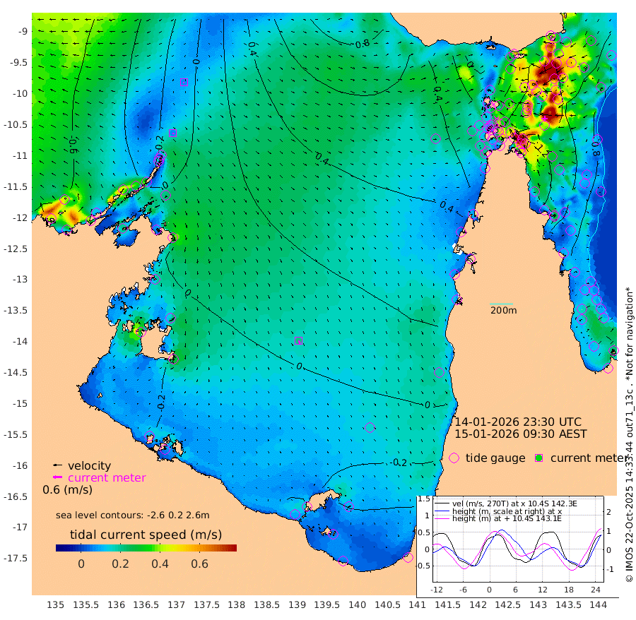 7cm/s 163T +3cm/s rms + 7cm/s -42T. ARA-GOC87 57m 21cm/s 160T +3cm/s rms + 2cm/s -2T. ARA-GOC87 60m 7cm/s -149T +2cm/s rms + 3cm/s 61T. ARA-GOC87 47m 114cm Daru 122cm Bobo Island 87cm Meer Island Barge 108cm Bramble Cay 121cm Unnamed Cay 128cm Pearce Cay 117cm Stephens Island 125cm Merrie England Shoals 126cm Mutacomal Reef 111cm Darnley Island Barge 98cm East Cay 114cm Yorke Island Barge 121cm Rennel Island 121cm Aureed Island 112cm Dungeness Reef 84cm Zagai Island 83cm Yam Island 43cm Dauan Island 49cm Saibai Island 57cm Phipi Reef 83cm Warrior Reef - West 57cm Mabuiag Island Barge 116cm Half Way Island 122cm Coconut Island 120cm Dugong Islet 106cm Poll Island 106cm Kirkcaldie Reef 105cm Suarji Island 101cm Sue Islet 81cm Hawkesbury Island 107cm Alert Patches 105cm Twin Island 67cm Badu Island 92cm St Pauls (Moa Island) 74cm Kubin (Moa Island) 88cm Ince Point 84cm Thursday Island 83cm Nardana Patches 82cm Turtle Head 75cm Round Island 77cm Goods Island 72cm Booby Island 78cm White Rocks Area 71cm Carpentaria 84cm Papou Point 96cm Bampfield Head 51cm Crab Island 74cm Red Wallis Island 82cm Packe Island 134cm Harrington Reef 73cm Herald Camp 19cm Sharp Point 74cm Red Island Point 92cm Possession Island 98cm Alpha Rock 116cm Frederick Point 126cm Wyborn Reef Light 123cm Tetley Island 88cm Triangle Reef 132cm Turtle Head Island 90cm Maclennan Cay 72cm Raine Island 116cm Mcsweeny Reef 111cm Collette Reef 87cm Shadwell Reef 120cm Hannibal Island 116cm Round Point 50cm Vrilya Point 107cm Cape Grenville 96cm Hicks Island 101cm Sir Charles Hardy Island 31cm Harvey Island 101cm Kay Reef 83cm Rocky Island 86cm Chapman Island 80cm Ham Reef 80cm Jubilee Reef 76cm Night Island 85cm Unnamed Reef No. 3 87cm Morris Island 77cm 1st 3 Mile Opening 84cm Creech Reef 81cm Fife Island 94cm Eden Reef 88cm Stanley Island 96cm Normanby River -59cm Yabooma Island -52cm Hutchison River -59cm Elcho Island -64cm North West Crocodile Island -12cm Cape Wessel -45cm Stevens Island 0cm Guluwuru Island -39cm Hopeful Bay -23cm Auster Point -36cm Two Island Bay -45cm Cadell Strait 38cm Mallison Island -8cm Melville Bay (Gove Harbour) -2cm Truant Island -3cm Cape Arnhem -14cm Cape Grey -17cm Hawk Island -46cm Milner Bay (Groote Eylandt) -43cm Cape Beatrice -53cm West Island -48cm Centre Island -53cm Mornington Island -48cm West Wellesley Islands -75cm Bountiful Island -129cm Albert River Mouth -130cm Sweers Island -116cm Karumba -26cm Nassau River Offshore 11cm Christmas Creek 35cm Archer River 45cm Boyd Point 40cm Weipa (Humbug Point) 40cm Pennefather River 46cm Cullen Point