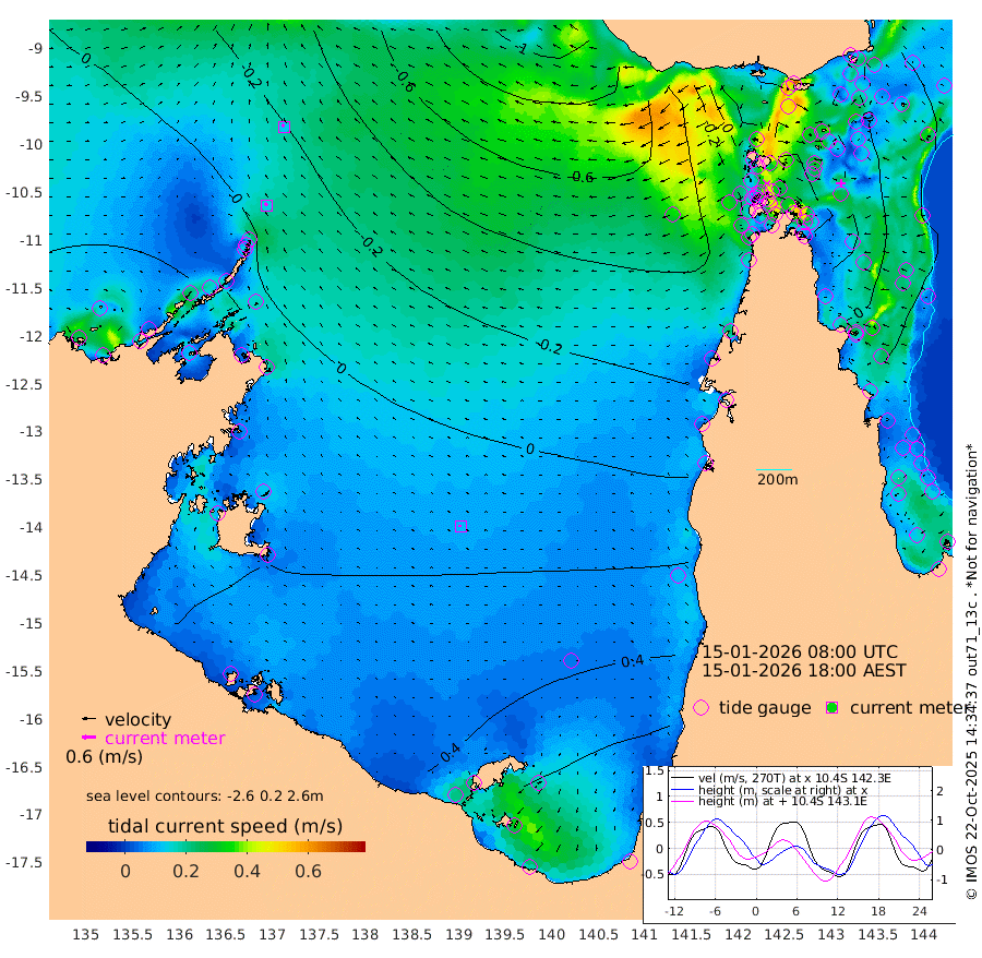 14cm/s -49T +3cm/s rms + 7cm/s -42T. ARA-GOC87 57m 11cm/s -89T +3cm/s rms + 2cm/s -2T. ARA-GOC87 60m 12cm/s -40T +2cm/s rms + 3cm/s 61T. ARA-GOC87 47m -29cm Daru -32cm Bobo Island 1cm Meer Island Barge -2cm Bramble Cay -17cm Unnamed Cay -35cm Pearce Cay -19cm Stephens Island -14cm Merrie England Shoals -28cm Mutacomal Reef -13cm Darnley Island Barge 3cm East Cay -25cm Yorke Island Barge -31cm Rennel Island -37cm Aureed Island -40cm Dungeness Reef -45cm Zagai Island -41cm Yam Island -36cm Dauan Island -29cm Saibai Island -26cm Phipi Reef -39cm Warrior Reef - West -52cm Mabuiag Island Barge -34cm Half Way Island -46cm Coconut Island -41cm Dugong Islet -53cm Poll Island -42cm Kirkcaldie Reef -68cm Suarji Island -45cm Sue Islet -65cm Hawkesbury Island -69cm Alert Patches -69cm Twin Island -57cm Badu Island -72cm St Pauls (Moa Island) -65cm Kubin (Moa Island) -67cm Ince Point -70cm Thursday Island -68cm Nardana Patches -62cm Turtle Head -62cm Round Island -61cm Goods Island -69cm Booby Island -70cm White Rocks Area -77cm Carpentaria -60cm Papou Point -83cm Bampfield Head -52cm Crab Island -69cm Red Wallis Island -64cm Packe Island -54cm Harrington Reef -56cm Herald Camp -16cm Sharp Point -47cm Red Island Point -68cm Possession Island -57cm Alpha Rock -61cm Frederick Point -43cm Wyborn Reef Light -48cm Tetley Island -11cm Triangle Reef -58cm Turtle Head Island -4cm Maclennan Cay 10cm Raine Island -24cm Mcsweeny Reef -13cm Collette Reef 2cm Shadwell Reef -11cm Hannibal Island -8cm Round Point -57cm Vrilya Point -3cm Cape Grenville 0cm Hicks Island 7cm Sir Charles Hardy Island -1cm Harvey Island 9cm Kay Reef 10cm Rocky Island 10cm Chapman Island 11cm Ham Reef 10cm Jubilee Reef 3cm Night Island 8cm Unnamed Reef No. 3 9cm Morris Island 5cm 1st 3 Mile Opening 6cm Creech Reef 4cm Fife Island 16cm Eden Reef 11cm Stanley Island 11cm Normanby River 17cm Yabooma Island 21cm Hutchison River 21cm Elcho Island 25cm North West Crocodile Island -9cm Cape Wessel 11cm Stevens Island 10cm Guluwuru Island 16cm Hopeful Bay -7cm Auster Point -4cm Two Island Bay 16cm Cadell Strait 53cm Mallison Island 5cm Melville Bay (Gove Harbour) -5cm Truant Island 0cm Cape Arnhem 14cm Cape Grey 15cm Hawk Island 24cm Milner Bay (Groote Eylandt) 32cm Cape Beatrice 35cm West Island 32cm Centre Island 83cm Mornington Island 79cm West Wellesley Islands 120cm Bountiful Island 148cm Albert River Mouth 134cm Sweers Island 142cm Karumba 75cm Nassau River Offshore 49cm Christmas Creek 12cm Archer River -15cm Boyd Point -3cm Weipa (Humbug Point) -33cm Pennefather River -43cm Cullen Point