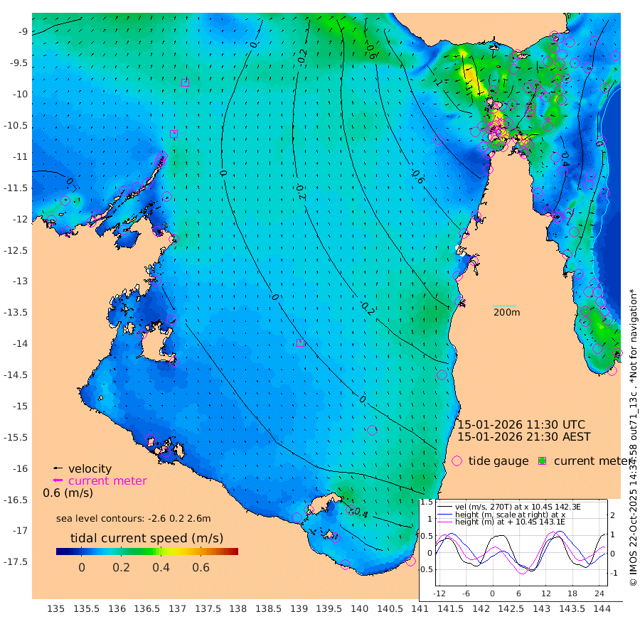 13cm/s 21T +3cm/s rms + 7cm/s -42T. ARA-GOC87 57m 17cm/s -13T +3cm/s rms + 2cm/s -2T. ARA-GOC87 60m 16cm/s 33T +2cm/s rms + 3cm/s 61T. ARA-GOC87 47m 18cm Daru 27cm Bobo Island 1cm Meer Island Barge 20cm Bramble Cay 24cm Unnamed Cay 23cm Pearce Cay 19cm Stephens Island 33cm Merrie England Shoals 33cm Mutacomal Reef 13cm Darnley Island Barge 8cm East Cay 15cm Yorke Island Barge 17cm Rennel Island 21cm Aureed Island 5cm Dungeness Reef -8cm Zagai Island -9cm Yam Island -63cm Dauan Island -49cm Saibai Island -51cm Phipi Reef -15cm Warrior Reef - West -62cm Mabuiag Island Barge 21cm Half Way Island 14cm Coconut Island 16cm Dugong Islet 3cm Poll Island 0cm Kirkcaldie Reef -18cm Suarji Island -4cm Sue Islet -125cm Hawkesbury Island -36cm Alert Patches -23cm Twin Island -114cm Badu Island -32cm St Pauls (Moa Island) -94cm Kubin (Moa Island) -52cm Ince Point -67cm Thursday Island -64cm Nardana Patches -90cm Turtle Head -107cm Round Island -121cm Goods Island -140cm Booby Island -117cm White Rocks Area -118cm Carpentaria -29cm Papou Point -157cm Bampfield Head -118cm Crab Island -119cm Red Wallis Island -94cm Packe Island 22cm Harrington Reef -134cm Herald Camp -1cm Sharp Point -75cm Red Island Point -61cm Possession Island -6cm Alpha Rock -4cm Frederick Point 21cm Wyborn Reef Light 17cm Tetley Island 0cm Triangle Reef 2cm Turtle Head Island -2cm Maclennan Cay -11cm Raine Island 17cm Mcsweeny Reef 16cm Collette Reef -1cm Shadwell Reef 23cm Hannibal Island 20cm Round Point -111cm Vrilya Point 15cm Cape Grenville 4cm Hicks Island -1cm Sir Charles Hardy Island 3cm Harvey Island 12cm Kay Reef -3cm Rocky Island -3cm Chapman Island -7cm Ham Reef -6cm Jubilee Reef 0cm Night Island -2cm Unnamed Reef No. 3 -2cm Morris Island -18cm 1st 3 Mile Opening -7cm Creech Reef 2cm Fife Island 0cm Eden Reef 0cm Stanley Island 11cm Normanby River -3cm Yabooma Island -4cm Hutchison River 3cm Elcho Island 8cm North West Crocodile Island 17cm Cape Wessel 21cm Stevens Island 11cm Guluwuru Island 14cm Hopeful Bay 6cm Auster Point 5cm Two Island Bay 9cm Cadell Strait 68cm Mallison Island 10cm Melville Bay (Gove Harbour) 7cm Truant Island 8cm Cape Arnhem 17cm Cape Grey 29cm Hawk Island 52cm Milner Bay (Groote Eylandt) 54cm Cape Beatrice 71cm West Island 70cm Centre Island 72cm Mornington Island 76cm West Wellesley Islands 78cm Bountiful Island 113cm Albert River Mouth 118cm Sweers Island 97cm Karumba 39cm Nassau River Offshore -6cm Christmas Creek -51cm Archer River -74cm Boyd Point -80cm Weipa (Humbug Point) -75cm Pennefather River -101cm Cullen Point