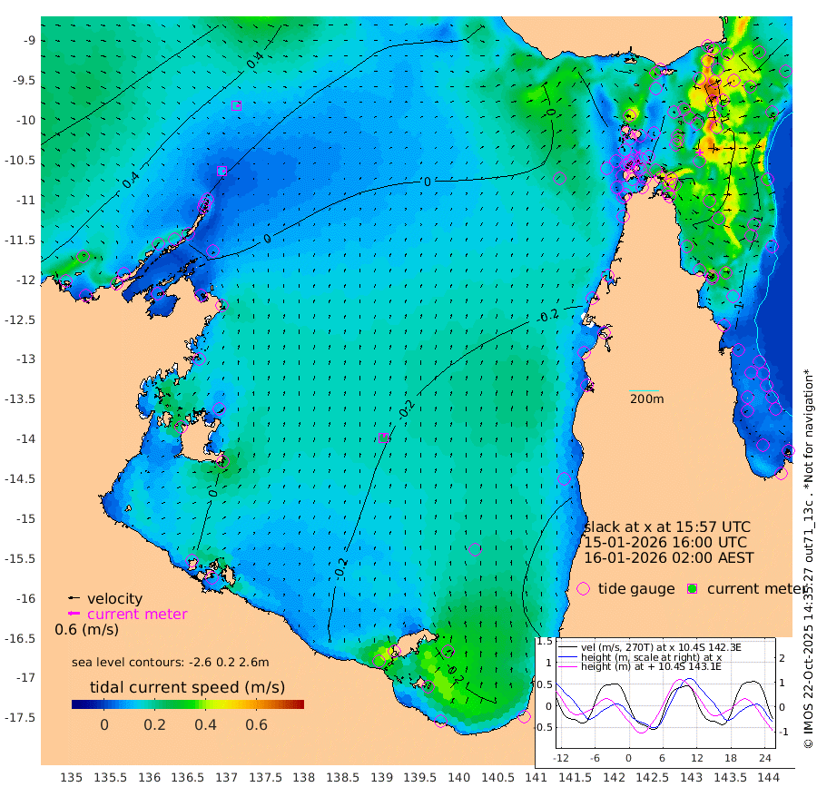 11cm/s 98T +3cm/s rms + 7cm/s -42T. ARA-GOC87 57m 23cm/s 11T +3cm/s rms + 2cm/s -2T. ARA-GOC87 60m 15cm/s 101T +2cm/s rms + 3cm/s 61T. ARA-GOC87 47m -95cm Daru -96cm Bobo Island -87cm Meer Island Barge -107cm Bramble Cay -110cm Unnamed Cay -99cm Pearce Cay -102cm Stephens Island -116cm Merrie England Shoals -107cm Mutacomal Reef -99cm Darnley Island Barge -100cm East Cay -94cm Yorke Island Barge -98cm Rennel Island -91cm Aureed Island -84cm Dungeness Reef -54cm Zagai Island -60cm Yam Island -33cm Dauan Island -40cm Saibai Island -57cm Phipi Reef -63cm Warrior Reef - West -25cm Mabuiag Island Barge -89cm Half Way Island -86cm Coconut Island -89cm Dugong Islet -67cm Poll Island -78cm Kirkcaldie Reef -56cm Suarji Island -69cm Sue Islet -40cm Hawkesbury Island -57cm Alert Patches -54cm Twin Island -33cm Badu Island -40cm St Pauls (Moa Island) -32cm Kubin (Moa Island) -40cm Ince Point -34cm Thursday Island -35cm Nardana Patches -41cm Turtle Head -36cm Round Island -36cm Goods Island -22cm Booby Island -26cm White Rocks Area -2cm Carpentaria -40cm Papou Point -33cm Bampfield Head -14cm Crab Island -22cm Red Wallis Island -39cm Packe Island -90cm Harrington Reef -41cm Herald Camp -9cm Sharp Point -45cm Red Island Point -42cm Possession Island -56cm Alpha Rock -69cm Frederick Point -93cm Wyborn Reef Light -86cm Tetley Island -80cm Triangle Reef -84cm Turtle Head Island -87cm Maclennan Cay -80cm Raine Island -97cm Mcsweeny Reef -102cm Collette Reef -90cm Shadwell Reef -112cm Hannibal Island -109cm Round Point -4cm Vrilya Point -104cm Cape Grenville -96cm Hicks Island -109cm Sir Charles Hardy Island -30cm Harvey Island -108cm Kay Reef -93cm Rocky Island -94cm Chapman Island -88cm Ham Reef -88cm Jubilee Reef -78cm Night Island -90cm Unnamed Reef No. 3 -94cm Morris Island -82cm 1st 3 Mile Opening -89cm Creech Reef -84cm Fife Island -106cm Eden Reef -97cm Stanley Island -104cm Normanby River 39cm Yabooma Island 29cm Hutchison River 39cm Elcho Island 39cm North West Crocodile Island 25cm Cape Wessel 35cm Stevens Island -5cm Guluwuru Island 24cm Hopeful Bay 31cm Auster Point 41cm Two Island Bay 30cm Cadell Strait -78cm Mallison Island 6cm Melville Bay (Gove Harbour) 10cm Truant Island 6cm Cape Arnhem 4cm Cape Grey 3cm Hawk Island 28cm Milner Bay (Groote Eylandt) 16cm Cape Beatrice 24cm West Island 23cm Centre Island -30cm Mornington Island -30cm West Wellesley Islands -47cm Bountiful Island -18cm Albert River Mouth -2cm Sweers Island -29cm Karumba -55cm Nassau River Offshore -68cm Christmas Creek -56cm Archer River -40cm Boyd Point -48cm Weipa (Humbug Point) -15cm Pennefather River -15cm Cullen Point