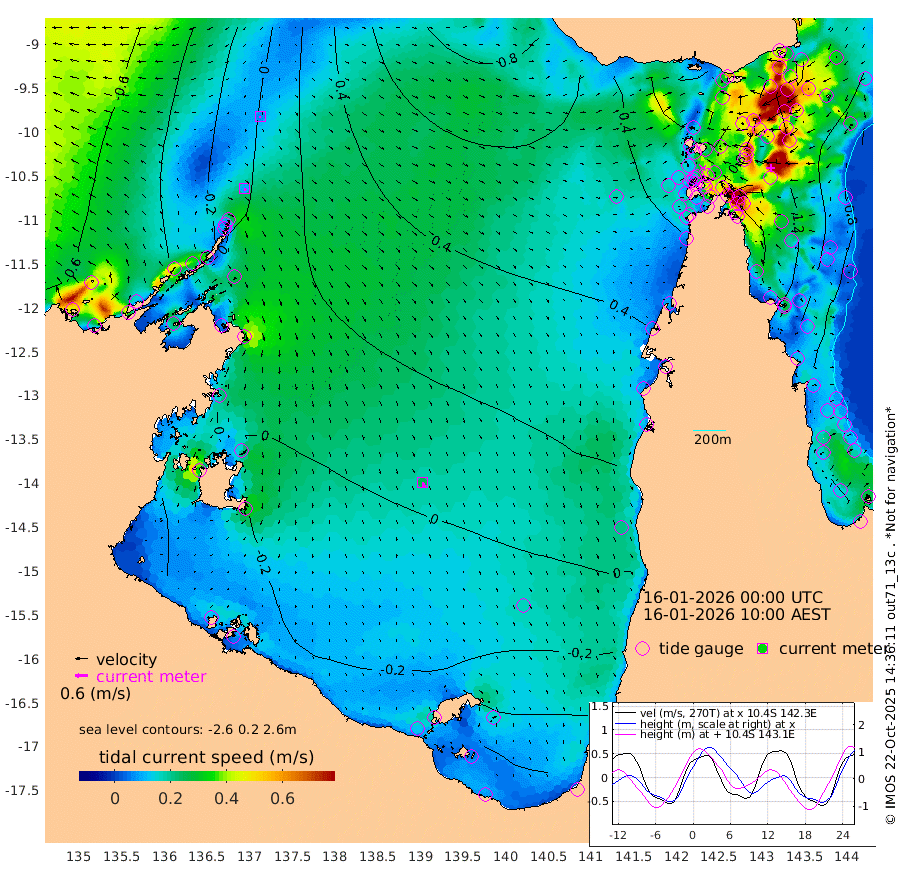 9cm/s 153T +3cm/s rms + 7cm/s -42T. ARA-GOC87 57m 25cm/s 163T +3cm/s rms + 2cm/s -2T. ARA-GOC87 60m 7cm/s -155T +2cm/s rms + 3cm/s 61T. ARA-GOC87 47m 132cm Daru 136cm Bobo Island 91cm Meer Island Barge 118cm Bramble Cay 137cm Unnamed Cay 141cm Pearce Cay 129cm Stephens Island 141cm Merrie England Shoals 146cm Mutacomal Reef 120cm Darnley Island Barge 104cm East Cay 126cm Yorke Island Barge 136cm Rennel Island 134cm Aureed Island 128cm Dungeness Reef 103cm Zagai Island 104cm Yam Island 68cm Dauan Island 70cm Saibai Island 79cm Phipi Reef 105cm Warrior Reef - West 76cm Mabuiag Island Barge 129cm Half Way Island 139cm Coconut Island 135cm Dugong Islet 124cm Poll Island 123cm Kirkcaldie Reef 123cm Suarji Island 118cm Sue Islet 100cm Hawkesbury Island 126cm Alert Patches 124cm Twin Island 86cm Badu Island 112cm St Pauls (Moa Island) 94cm Kubin (Moa Island) 106cm Ince Point 101cm Thursday Island 102cm Nardana Patches 99cm Turtle Head 95cm Round Island 92cm Goods Island 83cm Booby Island 91cm White Rocks Area 73cm Carpentaria 100cm Papou Point 112cm Bampfield Head 59cm Crab Island 87cm Red Wallis Island 101cm Packe Island 149cm Harrington Reef 92cm Herald Camp 25cm Sharp Point 86cm Red Island Point 108cm Possession Island 119cm Alpha Rock 134cm Frederick Point 147cm Wyborn Reef Light 145cm Tetley Island 97cm Triangle Reef 149cm Turtle Head Island 95cm Maclennan Cay 74cm Raine Island 129cm Mcsweeny Reef 123cm Collette Reef 94cm Shadwell Reef 133cm Hannibal Island 127cm Round Point 54cm Vrilya Point 115cm Cape Grenville 103cm Hicks Island 109cm Sir Charles Hardy Island 33cm Harvey Island 107cm Kay Reef 88cm Rocky Island 90cm Chapman Island 83cm Ham Reef 84cm Jubilee Reef 80cm Night Island 88cm Unnamed Reef No. 3 90cm Morris Island 80cm 1st 3 Mile Opening 87cm Creech Reef 87cm Fife Island 96cm Eden Reef 92cm Stanley Island 99cm Normanby River -43cm Yabooma Island -36cm Hutchison River -47cm Elcho Island -53cm North West Crocodile Island -1cm Cape Wessel -28cm Stevens Island 12cm Guluwuru Island -24cm Hopeful Bay -11cm Auster Point -24cm Two Island Bay -29cm Cadell Strait 74cm Mallison Island 4cm Melville Bay (Gove Harbour) 11cm Truant Island 5cm Cape Arnhem -14cm Cape Grey -15cm Hawk Island -54cm Milner Bay (Groote Eylandt) -51cm Cape Beatrice -68cm West Island -65cm Centre Island -63cm Mornington Island -58cm West Wellesley Islands -86cm Bountiful Island -142cm Albert River Mouth -146cm Sweers Island -128cm Karumba -29cm Nassau River Offshore 13cm Christmas Creek 39cm Archer River 50cm Boyd Point 46cm Weipa (Humbug Point) 42cm Pennefather River 53cm Cullen Point