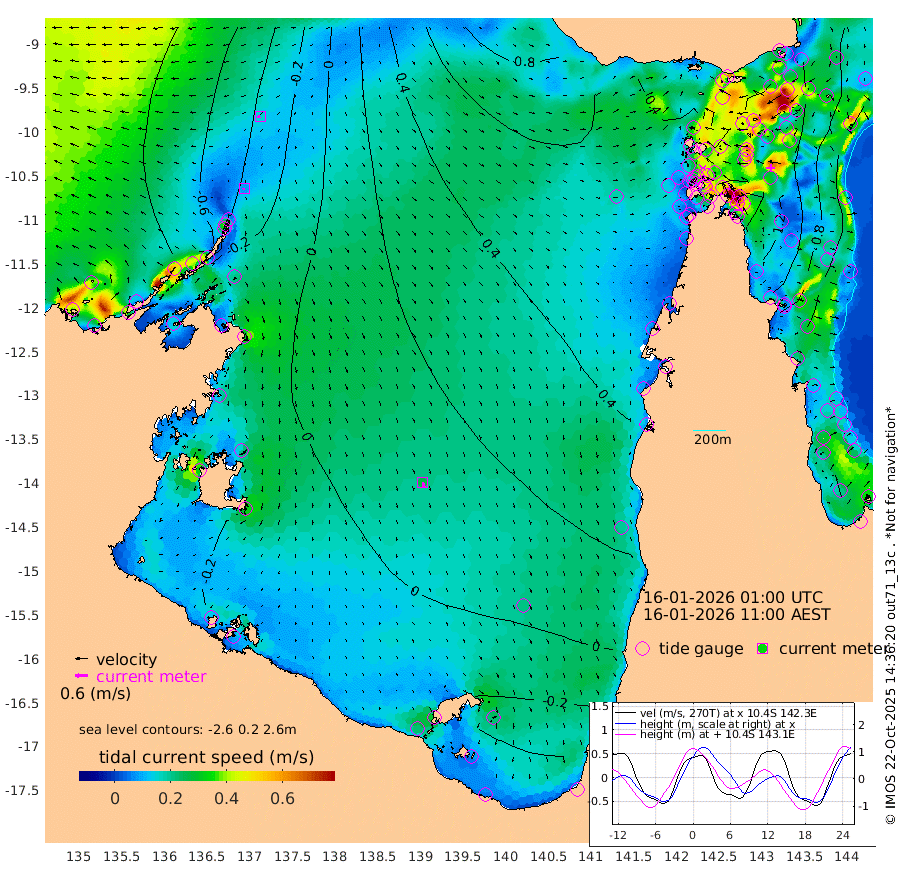 9cm/s -128T +3cm/s rms + 7cm/s -42T. ARA-GOC87 57m 26cm/s 166T +3cm/s rms + 2cm/s -2T. ARA-GOC87 60m 15cm/s -109T +2cm/s rms + 3cm/s 61T. ARA-GOC87 47m 130cm Daru 130cm Bobo Island 69cm Meer Island Barge 93cm Bramble Cay 119cm Unnamed Cay 131cm Pearce Cay 113cm Stephens Island 117cm Merrie England Shoals 137cm Mutacomal Reef 103cm Darnley Island Barge 81cm East Cay 118cm Yorke Island Barge 130cm Rennel Island 131cm Aureed Island 135cm Dungeness Reef 126cm Zagai Island 129cm Yam Island 113cm Dauan Island 109cm Saibai Island 119cm Phipi Reef 135cm Warrior Reef - West 109cm Mabuiag Island Barge 122cm Half Way Island 141cm Coconut Island 136cm Dugong Islet 139cm Poll Island 135cm Kirkcaldie Reef 155cm Suarji Island 132cm Sue Islet 119cm Hawkesbury Island 150cm Alert Patches 148cm Twin Island 110cm Badu Island 144cm St Pauls (Moa Island) 117cm Kubin (Moa Island) 133cm Ince Point 128cm Thursday Island 129cm Nardana Patches 124cm Turtle Head 114cm Round Island 110cm Goods Island 99cm Booby Island 107cm White Rocks Area 83cm Carpentaria 124cm Papou Point 124cm Bampfield Head 74cm Crab Island 104cm Red Wallis Island 121cm Packe Island 151cm Harrington Reef 114cm Herald Camp 37cm Sharp Point 108cm Red Island Point 130cm Possession Island 134cm Alpha Rock 148cm Frederick Point 141cm Wyborn Reef Light 144cm Tetley Island 82cm Triangle Reef 143cm Turtle Head Island 78cm Maclennan Cay 52cm Raine Island 116cm Mcsweeny Reef 106cm Collette Reef 73cm Shadwell Reef 110cm Hannibal Island 102cm Round Point 64cm Vrilya Point 91cm Cape Grenville 82cm Hicks Island 89cm Sir Charles Hardy Island 27cm Harvey Island 78cm Kay Reef 64cm Rocky Island 66cm Chapman Island 59cm Ham Reef 60cm Jubilee Reef 60cm Night Island 64cm Unnamed Reef No. 3 65cm Morris Island 58cm 1st 3 Mile Opening 64cm Creech Reef 66cm Fife Island 63cm Eden Reef 64cm Stanley Island 69cm Normanby River -84cm Yabooma Island -86cm Hutchison River -91cm Elcho Island -92cm North West Crocodile Island -36cm Cape Wessel -75cm Stevens Island -27cm Guluwuru Island -68cm Hopeful Bay -48cm Auster Point -61cm Two Island Bay -75cm Cadell Strait -7cm Mallison Island -29cm Melville Bay (Gove Harbour) -24cm Truant Island -16cm Cape Arnhem -25cm Cape Grey -23cm Hawk Island -52cm Milner Bay (Groote Eylandt) -46cm Cape Beatrice -49cm West Island -47cm Centre Island -41cm Mornington Island -35cm West Wellesley Islands -58cm Bountiful Island -118cm Albert River Mouth -124cm Sweers Island -99cm Karumba -7cm Nassau River Offshore 31cm Christmas Creek 46cm Archer River 60cm Boyd Point 56cm Weipa (Humbug Point) 46cm Pennefather River 65cm Cullen Point