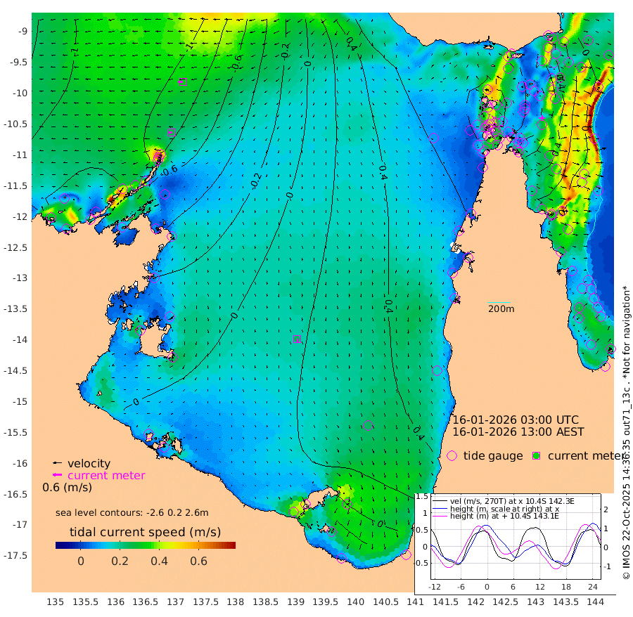 27cm/s -91T +3cm/s rms + 7cm/s -42T. ARA-GOC87 57m 23cm/s 177T +3cm/s rms + 2cm/s -2T. ARA-GOC87 60m 32cm/s -95T +2cm/s rms + 3cm/s 61T. ARA-GOC87 47m 67cm Daru 58cm Bobo Island 8cm Meer Island Barge 12cm Bramble Cay 36cm Unnamed Cay 54cm Pearce Cay 36cm Stephens Island 23cm Merrie England Shoals 56cm Mutacomal Reef 30cm Darnley Island Barge 12cm East Cay 51cm Yorke Island Barge 60cm Rennel Island 65cm Aureed Island 87cm Dungeness Reef 110cm Zagai Island 115cm Yam Island 152cm Dauan Island 137cm Saibai Island 148cm Phipi Reef 129cm Warrior Reef - West 128cm Mabuiag Island Barge 54cm Half Way Island 80cm Coconut Island 74cm Dugong Islet 100cm Poll Island 96cm Kirkcaldie Reef 140cm Suarji Island 98cm Sue Islet 127cm Hawkesbury Island 130cm Alert Patches 124cm Twin Island 127cm Badu Island 137cm St Pauls (Moa Island) 125cm Kubin (Moa Island) 129cm Ince Point 128cm Thursday Island 129cm Nardana Patches 131cm Turtle Head 121cm Round Island 119cm Goods Island 115cm Booby Island 113cm White Rocks Area 88cm Carpentaria 114cm Papou Point 125cm Bampfield Head 93cm Crab Island 115cm Red Wallis Island 123cm Packe Island 83cm Harrington Reef 136cm Herald Camp 40cm Sharp Point 115cm Red Island Point 122cm Possession Island 99cm Alpha Rock 106cm Frederick Point 64cm Wyborn Reef Light 74cm Tetley Island 26cm Triangle Reef 67cm Turtle Head Island 22cm Maclennan Cay 1cm Raine Island 42cm Mcsweeny Reef 31cm Collette Reef 12cm Shadwell Reef 24cm Hannibal Island 15cm Round Point 77cm Vrilya Point 13cm Cape Grenville 17cm Hicks Island 23cm Sir Charles Hardy Island 6cm Harvey Island -1cm Kay Reef 5cm Rocky Island 3cm Chapman Island 3cm Ham Reef 2cm Jubilee Reef 6cm Night Island 3cm Unnamed Reef No. 3 1cm Morris Island 6cm 1st 3 Mile Opening 6cm Creech Reef 6cm Fife Island -12cm Eden Reef -4cm Stanley Island -7cm Normanby River -121cm Yabooma Island -137cm Hutchison River -132cm Elcho Island -124cm North West Crocodile Island -91cm Cape Wessel -133cm Stevens Island -88cm Guluwuru Island -121cm Hopeful Bay -98cm Auster Point -105cm Two Island Bay -127cm Cadell Strait -155cm Mallison Island -78cm Melville Bay (Gove Harbour) -79cm Truant Island -50cm Cape Arnhem -39cm Cape Grey -34cm Hawk Island -41cm Milner Bay (Groote Eylandt) -28cm Cape Beatrice -11cm West Island -11cm Centre Island 7cm Mornington Island 10cm West Wellesley Islands 8cm Bountiful Island -39cm Albert River Mouth -49cm Sweers Island -16cm Karumba 35cm Nassau River Offshore 60cm Christmas Creek 59cm Archer River 72cm Boyd Point 74cm Weipa (Humbug Point) 51cm Pennefather River 82cm Cullen Point