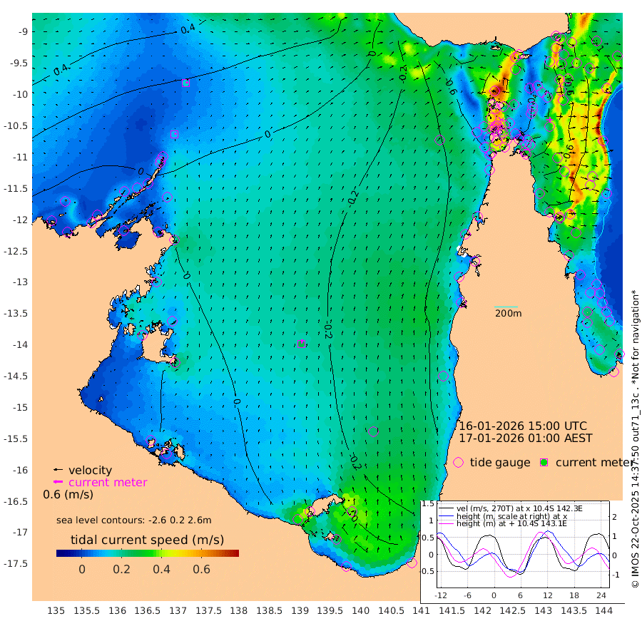 12cm/s 56T +3cm/s rms + 7cm/s -42T. ARA-GOC87 57m 27cm/s 9T +3cm/s rms + 2cm/s -2T. ARA-GOC87 60m 15cm/s 70T +2cm/s rms + 3cm/s 61T. ARA-GOC87 47m -58cm Daru -53cm Bobo Island -81cm Meer Island Barge -85cm Bramble Cay -78cm Unnamed Cay -62cm Pearce Cay -74cm Stephens Island -82cm Merrie England Shoals -63cm Mutacomal Reef -76cm Darnley Island Barge -87cm East Cay -63cm Yorke Island Barge -64cm Rennel Island -50cm Aureed Island -52cm Dungeness Reef -20cm Zagai Island -29cm Yam Island -27cm Dauan Island -24cm Saibai Island -46cm Phipi Reef -29cm Warrior Reef - West -23cm Mabuiag Island Barge -57cm Half Way Island -46cm Coconut Island -53cm Dugong Islet -31cm Poll Island -46cm Kirkcaldie Reef -20cm Suarji Island -36cm Sue Islet -90cm Hawkesbury Island -37cm Alert Patches -28cm Twin Island -69cm Badu Island -17cm St Pauls (Moa Island) -61cm Kubin (Moa Island) -34cm Ince Point -39cm Thursday Island -38cm Nardana Patches -63cm Turtle Head -76cm Round Island -84cm Goods Island -83cm Booby Island -73cm White Rocks Area -50cm Carpentaria -21cm Papou Point -101cm Bampfield Head -69cm Crab Island -71cm Red Wallis Island -70cm Packe Island -45cm Harrington Reef -100cm Herald Camp 3cm Sharp Point -60cm Red Island Point -46cm Possession Island -25cm Alpha Rock -35cm Frederick Point -53cm Wyborn Reef Light -46cm Tetley Island -67cm Triangle Reef -58cm Turtle Head Island -78cm Maclennan Cay -83cm Raine Island -67cm Mcsweeny Reef -76cm Collette Reef -82cm Shadwell Reef -83cm Hannibal Island -87cm Round Point -58cm Vrilya Point -86cm Cape Grenville -85cm Hicks Island -97cm Sir Charles Hardy Island -26cm Harvey Island -95cm Kay Reef -89cm Rocky Island -89cm Chapman Island -87cm Ham Reef -86cm Jubilee Reef -74cm Night Island -85cm Unnamed Reef No. 3 -91cm Morris Island -88cm 1st 3 Mile Opening -87cm Creech Reef -76cm Fife Island -105cm Eden Reef -95cm Stanley Island -95cm Normanby River -7cm Yabooma Island -18cm Hutchison River -3cm Elcho Island 0cm North West Crocodile Island 17cm Cape Wessel 8cm Stevens Island -11cm Guluwuru Island -5cm Hopeful Bay 8cm Auster Point 11cm Two Island Bay -2cm Cadell Strait -46cm Mallison Island -2cm Melville Bay (Gove Harbour) 2cm Truant Island 5cm Cape Arnhem 11cm Cape Grey 14cm Hawk Island 50cm Milner Bay (Groote Eylandt) 40cm Cape Beatrice 63cm West Island 60cm Centre Island 10cm Mornington Island 16cm West Wellesley Islands -3cm Bountiful Island 28cm Albert River Mouth 47cm Sweers Island 12cm Karumba -30cm Nassau River Offshore -63cm Christmas Creek -75cm Archer River -68cm Boyd Point -82cm Weipa (Humbug Point) -52cm Pennefather River -63cm Cullen Point