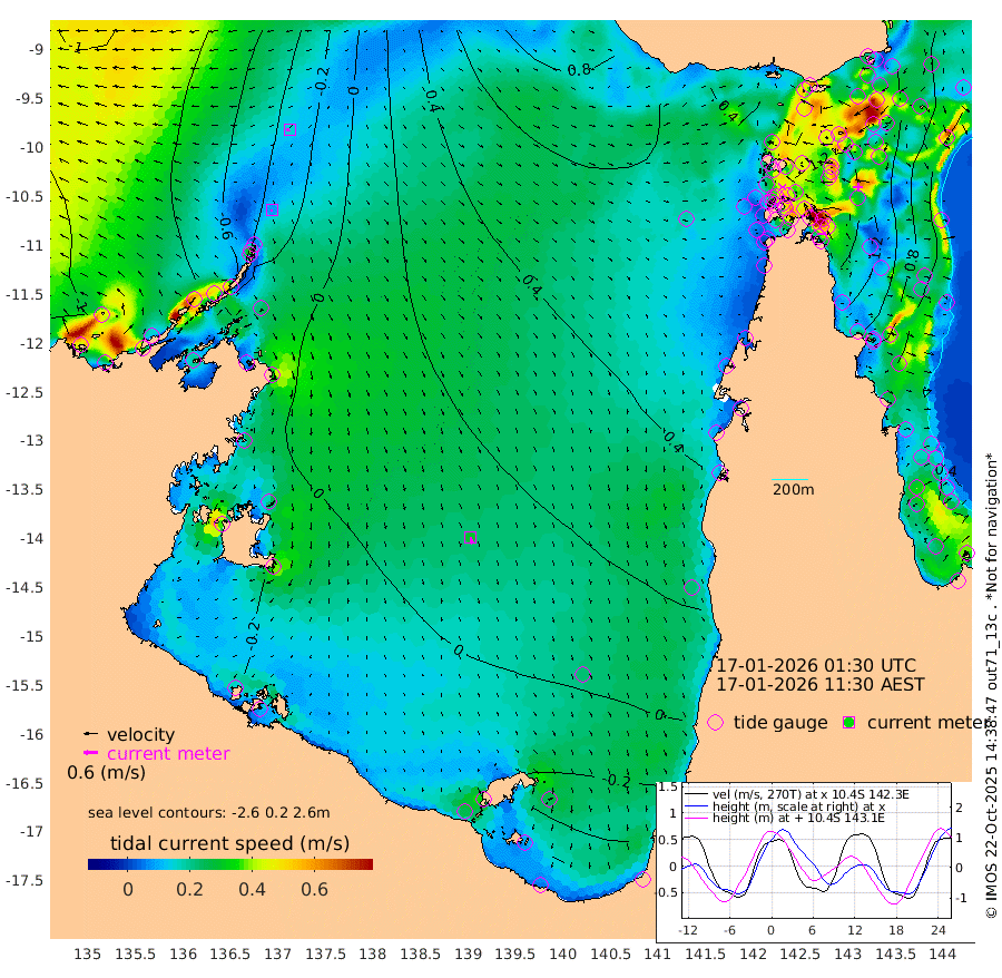 8cm/s -134T +3cm/s rms + 7cm/s -42T. ARA-GOC87 57m 30cm/s 168T +3cm/s rms + 2cm/s -2T. ARA-GOC87 60m 15cm/s -106T +2cm/s rms + 3cm/s 61T. ARA-GOC87 47m 141cm Daru 137cm Bobo Island 68cm Meer Island Barge 95cm Bramble Cay 126cm Unnamed Cay 134cm Pearce Cay 115cm Stephens Island 123cm Merrie England Shoals 148cm Mutacomal Reef 105cm Darnley Island Barge 79cm East Cay 123cm Yorke Island Barge 136cm Rennel Island 136cm Aureed Island 144cm Dungeness Reef 142cm Zagai Island 144cm Yam Island 136cm Dauan Island 130cm Saibai Island 137cm Phipi Reef 153cm Warrior Reef - West 124cm Mabuiag Island Barge 127cm Half Way Island 150cm Coconut Island 142cm Dugong Islet 151cm Poll Island 144cm Kirkcaldie Reef 166cm Suarji Island 144cm Sue Islet 126cm Hawkesbury Island 162cm Alert Patches 160cm Twin Island 119cm Badu Island 158cm St Pauls (Moa Island) 128cm Kubin (Moa Island) 145cm Ince Point 138cm Thursday Island 139cm Nardana Patches 133cm Turtle Head 124cm Round Island 115cm Goods Island 101cm Booby Island 109cm White Rocks Area 81cm Carpentaria 135cm Papou Point 128cm Bampfield Head 75cm Crab Island 108cm Red Wallis Island 131cm Packe Island 158cm Harrington Reef 123cm Herald Camp 42cm Sharp Point 112cm Red Island Point 139cm Possession Island 148cm Alpha Rock 159cm Frederick Point 154cm Wyborn Reef Light 157cm Tetley Island 84cm Triangle Reef 149cm Turtle Head Island 77cm Maclennan Cay 49cm Raine Island 122cm Mcsweeny Reef 110cm Collette Reef 74cm Shadwell Reef 114cm Hannibal Island 104cm Round Point 63cm Vrilya Point 92cm Cape Grenville 81cm Hicks Island 90cm Sir Charles Hardy Island 27cm Harvey Island 76cm Kay Reef 62cm Rocky Island 64cm Chapman Island 57cm Ham Reef 58cm Jubilee Reef 59cm Night Island 61cm Unnamed Reef No. 3 61cm Morris Island 54cm 1st 3 Mile Opening 60cm Creech Reef 66cm Fife Island 58cm Eden Reef 61cm Stanley Island 65cm Normanby River -82cm Yabooma Island -84cm Hutchison River -91cm Elcho Island -92cm North West Crocodile Island -31cm Cape Wessel -68cm Stevens Island -19cm Guluwuru Island -64cm Hopeful Bay -45cm Auster Point -57cm Two Island Bay -68cm Cadell Strait 35cm Mallison Island -21cm Melville Bay (Gove Harbour) -15cm Truant Island -10cm Cape Arnhem -26cm Cape Grey -22cm Hawk Island -57cm Milner Bay (Groote Eylandt) -50cm Cape Beatrice -58cm West Island -58cm Centre Island -45cm Mornington Island -40cm West Wellesley Islands -66cm Bountiful Island -124cm Albert River Mouth -133cm Sweers Island -105cm Karumba -7cm Nassau River Offshore 33cm Christmas Creek 47cm Archer River 62cm Boyd Point 58cm Weipa (Humbug Point) 46cm Pennefather River 68cm Cullen Point