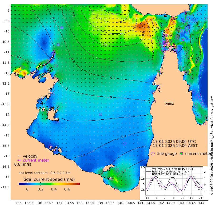 15cm/s -57T +3cm/s rms + 7cm/s -42T. ARA-GOC87 57m 15cm/s -75T +3cm/s rms + 2cm/s -2T. ARA-GOC87 60m 12cm/s -42T +2cm/s rms + 3cm/s 61T. ARA-GOC87 47m -32cm Daru -32cm Bobo Island 9cm Meer Island Barge 4cm Bramble Cay -13cm Unnamed Cay -28cm Pearce Cay -13cm Stephens Island -8cm Merrie England Shoals -30cm Mutacomal Reef -8cm Darnley Island Barge 11cm East Cay -23cm Yorke Island Barge -28cm Rennel Island -36cm Aureed Island -38cm Dungeness Reef -61cm Zagai Island -55cm Yam Island -61cm Dauan Island -59cm Saibai Island -32cm Phipi Reef -57cm Warrior Reef - West -69cm Mabuiag Island Barge -28cm Half Way Island -50cm Coconut Island -38cm Dugong Islet -59cm Poll Island -43cm Kirkcaldie Reef -77cm Suarji Island -54cm Sue Islet -61cm Hawkesbury Island -75cm Alert Patches -77cm Twin Island -62cm Badu Island -83cm St Pauls (Moa Island) -69cm Kubin (Moa Island) -76cm Ince Point -76cm Thursday Island -76cm Nardana Patches -65cm Turtle Head -61cm Round Island -60cm Goods Island -67cm Booby Island -69cm White Rocks Area -87cm Carpentaria -68cm Papou Point -84cm Bampfield Head -50cm Crab Island -72cm Red Wallis Island -68cm Packe Island -52cm Harrington Reef -55cm Herald Camp -20cm Sharp Point -44cm Red Island Point -67cm Possession Island -72cm Alpha Rock -67cm Frederick Point -49cm Wyborn Reef Light -56cm Tetley Island -9cm Triangle Reef -50cm Turtle Head Island 3cm Maclennan Cay 17cm Raine Island -22cm Mcsweeny Reef -10cm Collette Reef 7cm Shadwell Reef -5cm Hannibal Island -1cm Round Point -53cm Vrilya Point 5cm Cape Grenville 8cm Hicks Island 8cm Sir Charles Hardy Island 2cm Harvey Island 16cm Kay Reef 18cm Rocky Island 15cm Chapman Island 15cm Ham Reef 16cm Jubilee Reef 9cm Night Island 13cm Unnamed Reef No. 3 18cm Morris Island 15cm 1st 3 Mile Opening 15cm Creech Reef 7cm Fife Island 28cm Eden Reef 21cm Stanley Island 23cm Normanby River 32cm Yabooma Island 36cm Hutchison River 33cm Elcho Island 40cm North West Crocodile Island -20cm Cape Wessel 13cm Stevens Island -8cm Guluwuru Island 22cm Hopeful Bay -5cm Auster Point -2cm Two Island Bay 20cm Cadell Strait -24cm Mallison Island -6cm Melville Bay (Gove Harbour) -20cm Truant Island -12cm Cape Arnhem 12cm Cape Grey 19cm Hawk Island 31cm Milner Bay (Groote Eylandt) 40cm Cape Beatrice 47cm West Island 48cm Centre Island 103cm Mornington Island 96cm West Wellesley Islands 147cm Bountiful Island 178cm Albert River Mouth 175cm Sweers Island 179cm Karumba 92cm Nassau River Offshore 58cm Christmas Creek 20cm Archer River -15cm Boyd Point 0cm Weipa (Humbug Point) -24cm Pennefather River -43cm Cullen Point