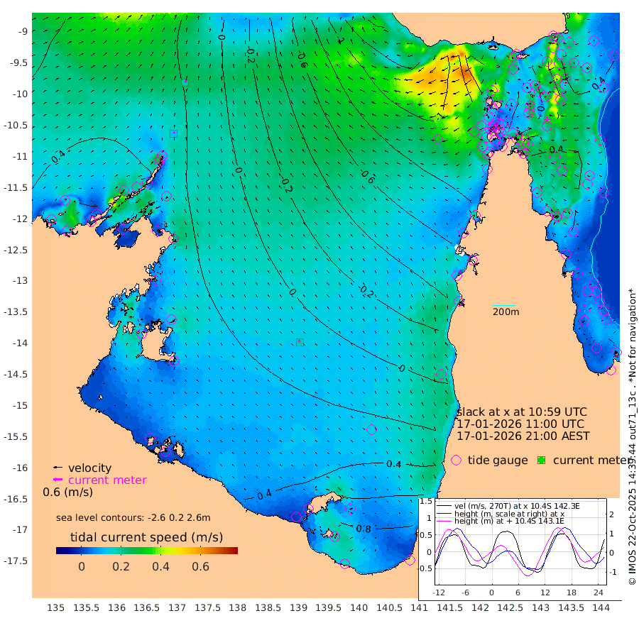 13cm/s 31T +3cm/s rms + 7cm/s -42T. ARA-GOC87 57m 18cm/s -36T +3cm/s rms + 2cm/s -2T. ARA-GOC87 60m 19cm/s 39T +2cm/s rms + 3cm/s 61T. ARA-GOC87 47m 23cm Daru 28cm Bobo Island 23cm Meer Island Barge 42cm Bramble Cay 39cm Unnamed Cay 28cm Pearce Cay 31cm Stephens Island 50cm Merrie England Shoals 37cm Mutacomal Reef 29cm Darnley Island Barge 30cm East Cay 23cm Yorke Island Barge 22cm Rennel Island 18cm Aureed Island 5cm Dungeness Reef -23cm Zagai Island -23cm Yam Island -70cm Dauan Island -59cm Saibai Island -40cm Phipi Reef -26cm Warrior Reef - West -73cm Mabuiag Island Barge 22cm Half Way Island 7cm Coconut Island 12cm Dugong Islet -11cm Poll Island -4cm Kirkcaldie Reef -40cm Suarji Island -11cm Sue Islet -119cm Hawkesbury Island -49cm Alert Patches -44cm Twin Island -108cm Badu Island -55cm St Pauls (Moa Island) -103cm Kubin (Moa Island) -69cm Ince Point -83cm Thursday Island -80cm Nardana Patches -96cm Turtle Head -108cm Round Island -119cm Goods Island -143cm Booby Island -126cm White Rocks Area -148cm Carpentaria -47cm Papou Point -161cm Bampfield Head -119cm Crab Island -134cm Red Wallis Island -108cm Packe Island 11cm Harrington Reef -136cm Herald Camp -9cm Sharp Point -73cm Red Island Point -70cm Possession Island -28cm Alpha Rock -20cm Frederick Point 19cm Wyborn Reef Light 9cm Tetley Island 10cm Triangle Reef 7cm Turtle Head Island 14cm Maclennan Cay 15cm Raine Island 26cm Mcsweeny Reef 32cm Collette Reef 23cm Shadwell Reef 42cm Hannibal Island 40cm Round Point -118cm Vrilya Point 35cm Cape Grenville 27cm Hicks Island 20cm Sir Charles Hardy Island 8cm Harvey Island 38cm Kay Reef 23cm Rocky Island 22cm Chapman Island 16cm Ham Reef 20cm Jubilee Reef 17cm Night Island 18cm Unnamed Reef No. 3 25cm Morris Island 10cm 1st 3 Mile Opening 17cm Creech Reef 19cm Fife Island 33cm Eden Reef 28cm Stanley Island 39cm Normanby River 52cm Yabooma Island 63cm Hutchison River 56cm Elcho Island 60cm North West Crocodile Island 28cm Cape Wessel 63cm Stevens Island 39cm Guluwuru Island 57cm Hopeful Bay 34cm Auster Point 31cm Two Island Bay 61cm Cadell Strait 92cm Mallison Island 36cm Melville Bay (Gove Harbour) 27cm Truant Island 21cm Cape Arnhem 37cm Cape Grey 44cm Hawk Island 57cm Milner Bay (Groote Eylandt) 60cm Cape Beatrice 64cm West Island 62cm Centre Island 99cm Mornington Island 99cm West Wellesley Islands 134cm Bountiful Island 173cm Albert River Mouth 182cm Sweers Island 161cm Karumba 69cm Nassau River Offshore 18cm Christmas Creek -30cm Archer River -68cm Boyd Point -64cm Weipa (Humbug Point) -70cm Pennefather River -110cm Cullen Point