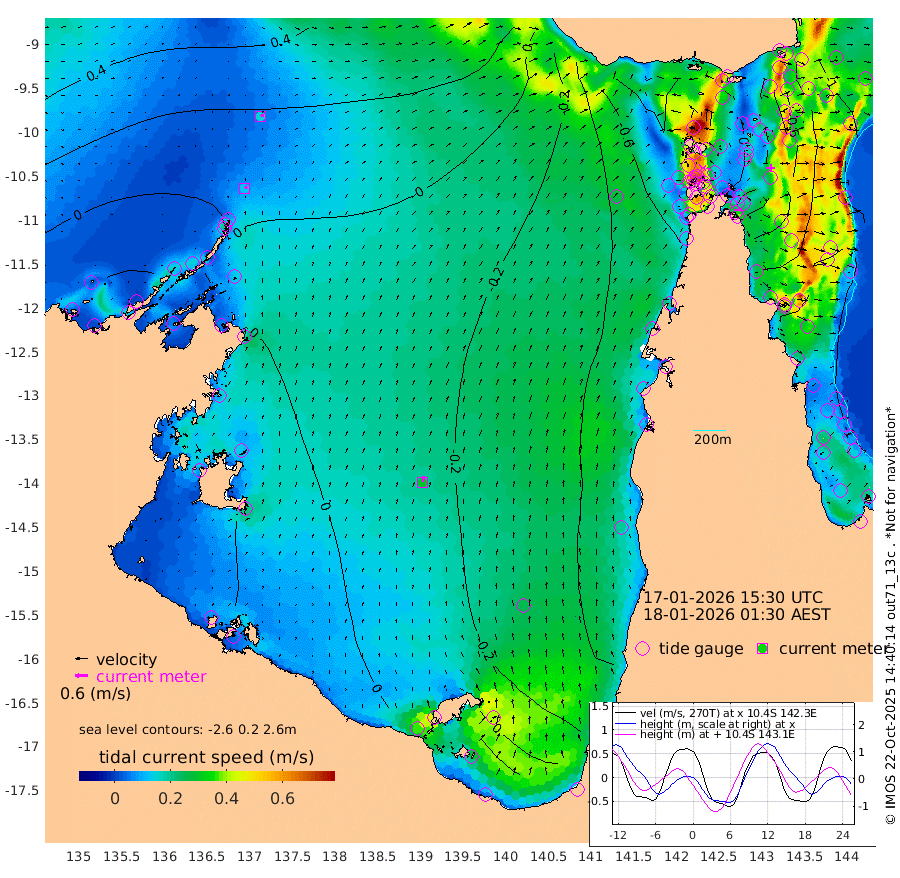 13cm/s 52T +3cm/s rms + 7cm/s -42T. ARA-GOC87 57m 29cm/s 11T +3cm/s rms + 2cm/s -2T. ARA-GOC87 60m 16cm/s 67T +2cm/s rms + 3cm/s 61T. ARA-GOC87 47m -65cm Daru -60cm Bobo Island -88cm Meer Island Barge -93cm Bramble Cay -87cm Unnamed Cay -71cm Pearce Cay -84cm Stephens Island -91cm Merrie England Shoals -72cm Mutacomal Reef -83cm Darnley Island Barge -95cm East Cay -70cm Yorke Island Barge -74cm Rennel Island -57cm Aureed Island -61cm Dungeness Reef -21cm Zagai Island -34cm Yam Island -28cm Dauan Island -18cm Saibai Island -50cm Phipi Reef -31cm Warrior Reef - West -23cm Mabuiag Island Barge -68cm Half Way Island -51cm Coconut Island -64cm Dugong Islet -38cm Poll Island -54cm Kirkcaldie Reef -24cm Suarji Island -38cm Sue Islet -104cm Hawkesbury Island -43cm Alert Patches -34cm Twin Island -76cm Badu Island -23cm St Pauls (Moa Island) -74cm Kubin (Moa Island) -41cm Ince Point -48cm Thursday Island -46cm Nardana Patches -74cm Turtle Head -89cm Round Island -97cm Goods Island -96cm Booby Island -86cm White Rocks Area -55cm Carpentaria -26cm Papou Point -114cm Bampfield Head -79cm Crab Island -84cm Red Wallis Island -85cm Packe Island -55cm Harrington Reef -117cm Herald Camp 3cm Sharp Point -66cm Red Island Point -55cm Possession Island -29cm Alpha Rock -42cm Frederick Point -59cm Wyborn Reef Light -52cm Tetley Island -73cm Triangle Reef -69cm Turtle Head Island -86cm Maclennan Cay -89cm Raine Island -75cm Mcsweeny Reef -82cm Collette Reef -88cm Shadwell Reef -91cm Hannibal Island -96cm Round Point -67cm Vrilya Point -95cm Cape Grenville -94cm Hicks Island -104cm Sir Charles Hardy Island -29cm Harvey Island -102cm Kay Reef -95cm Rocky Island -93cm Chapman Island -91cm Ham Reef -92cm Jubilee Reef -81cm Night Island -90cm Unnamed Reef No. 3 -98cm Morris Island -96cm 1st 3 Mile Opening -94cm Creech Reef -82cm Fife Island -114cm Eden Reef -103cm Stanley Island -104cm Normanby River -23cm Yabooma Island -32cm Hutchison River -15cm Elcho Island -13cm North West Crocodile Island 16cm Cape Wessel 0cm Stevens Island -7cm Guluwuru Island -13cm Hopeful Bay 3cm Auster Point 2cm Two Island Bay -10cm Cadell Strait -22cm Mallison Island 0cm Melville Bay (Gove Harbour) 3cm Truant Island 8cm Cape Arnhem 16cm Cape Grey 17cm Hawk Island 54cm Milner Bay (Groote Eylandt) 43cm Cape Beatrice 67cm West Island 64cm Centre Island 12cm Mornington Island 17cm West Wellesley Islands -1cm Bountiful Island 28cm Albert River Mouth 50cm Sweers Island 10cm Karumba -34cm Nassau River Offshore -69cm Christmas Creek -80cm Archer River -74cm Boyd Point -90cm Weipa (Humbug Point) -58cm Pennefather River -72cm Cullen Point