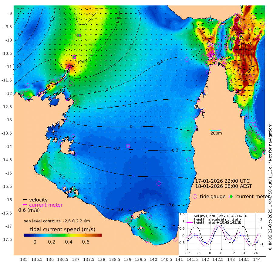 32cm/s 123T +3cm/s rms + 7cm/s -42T. ARA-GOC87 57m 11cm/s 148T +3cm/s rms + 2cm/s -2T. ARA-GOC87 60m 28cm/s 122T +2cm/s rms + 3cm/s 61T. ARA-GOC87 47m 39cm Daru 44cm Bobo Island 82cm Meer Island Barge 86cm Bramble Cay 75cm Unnamed Cay 59cm Pearce Cay 74cm Stephens Island 84cm Merrie England Shoals 53cm Mutacomal Reef 72cm Darnley Island Barge 83cm East Cay 54cm Yorke Island Barge 55cm Rennel Island 39cm Aureed Island 28cm Dungeness Reef -19cm Zagai Island -14cm Yam Island -52cm Dauan Island -54cm Saibai Island -51cm Phipi Reef -32cm Warrior Reef - West -23cm Mabuiag Island Barge 56cm Half Way Island 31cm Coconut Island 44cm Dugong Islet 10cm Poll Island 17cm Kirkcaldie Reef -22cm Suarji Island 5cm Sue Islet 65cm Hawkesbury Island 4cm Alert Patches 2cm Twin Island 37cm Badu Island -15cm St Pauls (Moa Island) 40cm Kubin (Moa Island) 5cm Ince Point 15cm Thursday Island 11cm Nardana Patches 32cm Turtle Head 48cm Round Island 66cm Goods Island 77cm Booby Island 72cm White Rocks Area 71cm Carpentaria -4cm Papou Point 98cm Bampfield Head 58cm Crab Island 66cm Red Wallis Island 50cm Packe Island 39cm Harrington Reef 59cm Herald Camp -21cm Sharp Point 18cm Red Island Point 17cm Possession Island 8cm Alpha Rock 16cm Frederick Point 50cm Wyborn Reef Light 40cm Tetley Island 63cm Triangle Reef 68cm Turtle Head Island 74cm Maclennan Cay 82cm Raine Island 64cm Mcsweeny Reef 69cm Collette Reef 77cm Shadwell Reef 82cm Hannibal Island 90cm Round Point 61cm Vrilya Point 86cm Cape Grenville 81cm Hicks Island 86cm Sir Charles Hardy Island 24cm Harvey Island 96cm Kay Reef 83cm Rocky Island 83cm Chapman Island 82cm Ham Reef 85cm Jubilee Reef 74cm Night Island 82cm Unnamed Reef No. 3 91cm Morris Island 91cm 1st 3 Mile Opening 86cm Creech Reef 75cm Fife Island 110cm Eden Reef 97cm Stanley Island 100cm Normanby River 127cm Yabooma Island 152cm Hutchison River 126cm Elcho Island 110cm North West Crocodile Island 93cm Cape Wessel 121cm Stevens Island 99cm Guluwuru Island 110cm Hopeful Bay 103cm Auster Point 106cm Two Island Bay 123cm Cadell Strait 134cm Mallison Island 80cm Melville Bay (Gove Harbour) 91cm Truant Island 49cm Cape Arnhem 11cm Cape Grey -7cm Hawk Island -48cm Milner Bay (Groote Eylandt) -57cm Cape Beatrice -105cm West Island -104cm Centre Island -123cm Mornington Island -121cm West Wellesley Islands -145cm Bountiful Island -164cm Albert River Mouth -179cm Sweers Island -170cm Karumba -90cm Nassau River Offshore -43cm Christmas Creek 12cm Archer River 29cm Boyd Point 32cm Weipa (Humbug Point) 42cm Pennefather River 46cm Cullen Point