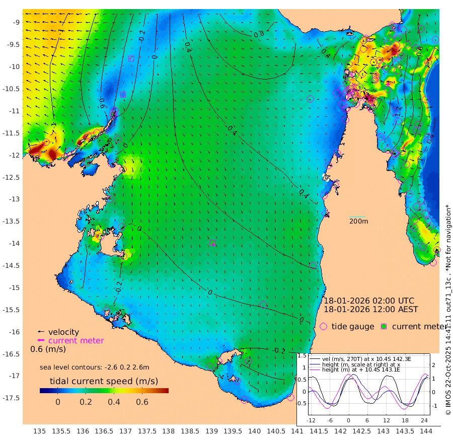 7cm/s -143T +3cm/s rms + 7cm/s -42T. ARA-GOC87 57m 33cm/s 168T +3cm/s rms + 2cm/s -2T. ARA-GOC87 60m 14cm/s -103T +2cm/s rms + 3cm/s 61T. ARA-GOC87 47m 149cm Daru 140cm Bobo Island 65cm Meer Island Barge 95cm Bramble Cay 129cm Unnamed Cay 134cm Pearce Cay 116cm Stephens Island 126cm Merrie England Shoals 156cm Mutacomal Reef 105cm Darnley Island Barge 75cm East Cay 126cm Yorke Island Barge 140cm Rennel Island 137cm Aureed Island 149cm Dungeness Reef 154cm Zagai Island 157cm Yam Island 155cm Dauan Island 147cm Saibai Island 151cm Phipi Reef 168cm Warrior Reef - West 135cm Mabuiag Island Barge 130cm Half Way Island 156cm Coconut Island 147cm Dugong Islet 159cm Poll Island 152cm Kirkcaldie Reef 173cm Suarji Island 153cm Sue Islet 128cm Hawkesbury Island 169cm Alert Patches 168cm Twin Island 124cm Badu Island 169cm St Pauls (Moa Island) 134cm Kubin (Moa Island) 153cm Ince Point 144cm Thursday Island 146cm Nardana Patches 137cm Turtle Head 128cm Round Island 115cm Goods Island 98cm Booby Island 106cm White Rocks Area 76cm Carpentaria 142cm Papou Point 126cm Bampfield Head 74cm Crab Island 107cm Red Wallis Island 136cm Packe Island 161cm Harrington Reef 126cm Herald Camp 46cm Sharp Point 112cm Red Island Point 142cm Possession Island 159cm Alpha Rock 166cm Frederick Point 162cm Wyborn Reef Light 167cm Tetley Island 84cm Triangle Reef 152cm Turtle Head Island 74cm Maclennan Cay 45cm Raine Island 124cm Mcsweeny Reef 112cm Collette Reef 74cm Shadwell Reef 115cm Hannibal Island 103cm Round Point 60cm Vrilya Point 90cm Cape Grenville 79cm Hicks Island 88cm Sir Charles Hardy Island 26cm Harvey Island 73cm Kay Reef 58cm Rocky Island 59cm Chapman Island 52cm Ham Reef 54cm Jubilee Reef 56cm Night Island 56cm Unnamed Reef No. 3 57cm Morris Island 49cm 1st 3 Mile Opening 55cm Creech Reef 64cm Fife Island 51cm Eden Reef 56cm Stanley Island 58cm Normanby River -82cm Yabooma Island -84cm Hutchison River -91cm Elcho Island -93cm North West Crocodile Island -27cm Cape Wessel -63cm Stevens Island -10cm Guluwuru Island -61cm Hopeful Bay -43cm Auster Point -53cm Two Island Bay -62cm Cadell Strait 77cm Mallison Island -14cm Melville Bay (Gove Harbour) -7cm Truant Island -4cm Cape Arnhem -25cm Cape Grey -21cm Hawk Island -60cm Milner Bay (Groote Eylandt) -53cm Cape Beatrice -65cm West Island -66cm Centre Island -48cm Mornington Island -43cm West Wellesley Islands -72cm Bountiful Island -127cm Albert River Mouth -141cm Sweers Island -110cm Karumba -8cm Nassau River Offshore 35cm Christmas Creek 45cm Archer River 62cm Boyd Point 57cm Weipa (Humbug Point) 44cm Pennefather River 67cm Cullen Point