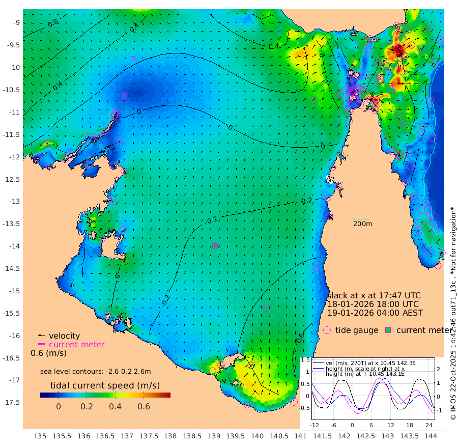6cm/s 94T +3cm/s rms + 7cm/s -42T. ARA-GOC87 57m 27cm/s 18T +3cm/s rms + 2cm/s -2T. ARA-GOC87 60m 12cm/s 118T +2cm/s rms + 3cm/s 61T. ARA-GOC87 47m -142cm Daru -134cm Bobo Island -96cm Meer Island Barge -128cm Bramble Cay -147cm Unnamed Cay -137cm Pearce Cay -133cm Stephens Island -152cm Merrie England Shoals -154cm Mutacomal Reef -123cm Darnley Island Barge -109cm East Cay -127cm Yorke Island Barge -138cm Rennel Island -125cm Aureed Island -132cm Dungeness Reef -96cm Zagai Island -106cm Yam Island -80cm Dauan Island -69cm Saibai Island -113cm Phipi Reef -112cm Warrior Reef - West -53cm Mabuiag Island Barge -130cm Half Way Island -127cm Coconut Island -133cm Dugong Islet -114cm Poll Island -123cm Kirkcaldie Reef -100cm Suarji Island -108cm Sue Islet -59cm Hawkesbury Island -99cm Alert Patches -96cm Twin Island -50cm Badu Island -87cm St Pauls (Moa Island) -61cm Kubin (Moa Island) -76cm Ince Point -64cm Thursday Island -67cm Nardana Patches -66cm Turtle Head -61cm Round Island -46cm Goods Island -16cm Booby Island -27cm White Rocks Area 35cm Carpentaria -75cm Papou Point -29cm Bampfield Head -10cm Crab Island -21cm Red Wallis Island -62cm Packe Island -135cm Harrington Reef -57cm Herald Camp -23cm Sharp Point -60cm Red Island Point -77cm Possession Island -94cm Alpha Rock -113cm Frederick Point -140cm Wyborn Reef Light -134cm Tetley Island -91cm Triangle Reef -135cm Turtle Head Island -94cm Maclennan Cay -78cm Raine Island -129cm Mcsweeny Reef -128cm Collette Reef -101cm Shadwell Reef -140cm Hannibal Island -134cm Round Point 7cm Vrilya Point -121cm Cape Grenville -111cm Hicks Island -114cm Sir Charles Hardy Island -36cm Harvey Island -112cm Kay Reef -94cm Rocky Island -90cm Chapman Island -81cm Ham Reef -86cm Jubilee Reef -83cm Night Island -84cm Unnamed Reef No. 3 -95cm Morris Island -81cm 1st 3 Mile Opening -88cm Creech Reef -90cm Fife Island -103cm Eden Reef -99cm Stanley Island -107cm Normanby River -2cm Yabooma Island -11cm Hutchison River 8cm Elcho Island 6cm North West Crocodile Island 15cm Cape Wessel -2cm Stevens Island -14cm Guluwuru Island -6cm Hopeful Bay 8cm Auster Point 13cm Two Island Bay -12cm Cadell Strait -85cm Mallison Island -11cm Melville Bay (Gove Harbour) -6cm Truant Island -3cm Cape Arnhem 0cm Cape Grey -10cm Hawk Island 24cm Milner Bay (Groote Eylandt) 11cm Cape Beatrice 27cm West Island 26cm Centre Island -48cm Mornington Island -47cm West Wellesley Islands -68cm Bountiful Island -51cm Albert River Mouth -39cm Sweers Island -67cm Karumba -77cm Nassau River Offshore -83cm Christmas Creek -55cm Archer River -33cm Boyd Point -44cm Weipa (Humbug Point) -13cm Pennefather River -7cm Cullen Point