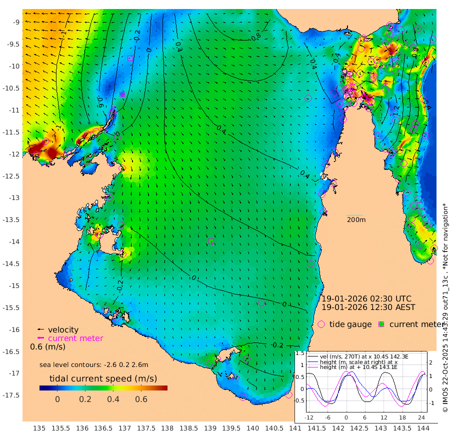 5cm/s -163T +3cm/s rms + 7cm/s -42T. ARA-GOC87 57m 34cm/s 168T +3cm/s rms + 2cm/s -2T. ARA-GOC87 60m 13cm/s -101T +2cm/s rms + 3cm/s 61T. ARA-GOC87 47m 154cm Daru 141cm Bobo Island 61cm Meer Island Barge 93cm Bramble Cay 131cm Unnamed Cay 131cm Pearce Cay 115cm Stephens Island 126cm Merrie England Shoals 159cm Mutacomal Reef 104cm Darnley Island Barge 71cm East Cay 127cm Yorke Island Barge 141cm Rennel Island 136cm Aureed Island 151cm Dungeness Reef 162cm Zagai Island 165cm Yam Island 168cm Dauan Island 158cm Saibai Island 158cm Phipi Reef 178cm Warrior Reef - West 141cm Mabuiag Island Barge 131cm Half Way Island 158cm Coconut Island 149cm Dugong Islet 163cm Poll Island 156cm Kirkcaldie Reef 174cm Suarji Island 158cm Sue Islet 123cm Hawkesbury Island 170cm Alert Patches 170cm Twin Island 123cm Badu Island 174cm St Pauls (Moa Island) 134cm Kubin (Moa Island) 155cm Ince Point 144cm Thursday Island 148cm Nardana Patches 136cm Turtle Head 124cm Round Island 109cm Goods Island 90cm Booby Island 97cm White Rocks Area 69cm Carpentaria 145cm Papou Point 115cm Bampfield Head 69cm Crab Island 102cm Red Wallis Island 134cm Packe Island 161cm Harrington Reef 121cm Herald Camp 49cm Sharp Point 108cm Red Island Point 139cm Possession Island 164cm Alpha Rock 169cm Frederick Point 166cm Wyborn Reef Light 172cm Tetley Island 81cm Triangle Reef 152cm Turtle Head Island 70cm Maclennan Cay 41cm Raine Island 124cm Mcsweeny Reef 111cm Collette Reef 72cm Shadwell Reef 114cm Hannibal Island 100cm Round Point 55cm Vrilya Point 86cm Cape Grenville 75cm Hicks Island 86cm Sir Charles Hardy Island 26cm Harvey Island 68cm Kay Reef 53cm Rocky Island 53cm Chapman Island 47cm Ham Reef 50cm Jubilee Reef 52cm Night Island 51cm Unnamed Reef No. 3 52cm Morris Island 44cm 1st 3 Mile Opening 50cm Creech Reef 60cm Fife Island 44cm Eden Reef 51cm Stanley Island 52cm Normanby River -81cm Yabooma Island -83cm Hutchison River -91cm Elcho Island -92cm North West Crocodile Island -23cm Cape Wessel -57cm Stevens Island 1cm Guluwuru Island -60cm Hopeful Bay -42cm Auster Point -48cm Two Island Bay -54cm Cadell Strait 116cm Mallison Island -6cm Melville Bay (Gove Harbour) 2cm Truant Island 3cm Cape Arnhem -23cm Cape Grey -21cm Hawk Island -60cm Milner Bay (Groote Eylandt) -54cm Cape Beatrice -68cm West Island -72cm Centre Island -50cm Mornington Island -45cm West Wellesley Islands -77cm Bountiful Island -127cm Albert River Mouth -147cm Sweers Island -113cm Karumba -9cm Nassau River Offshore 34cm Christmas Creek 41cm Archer River 58cm Boyd Point 52cm Weipa (Humbug Point) 40cm Pennefather River 63cm Cullen Point