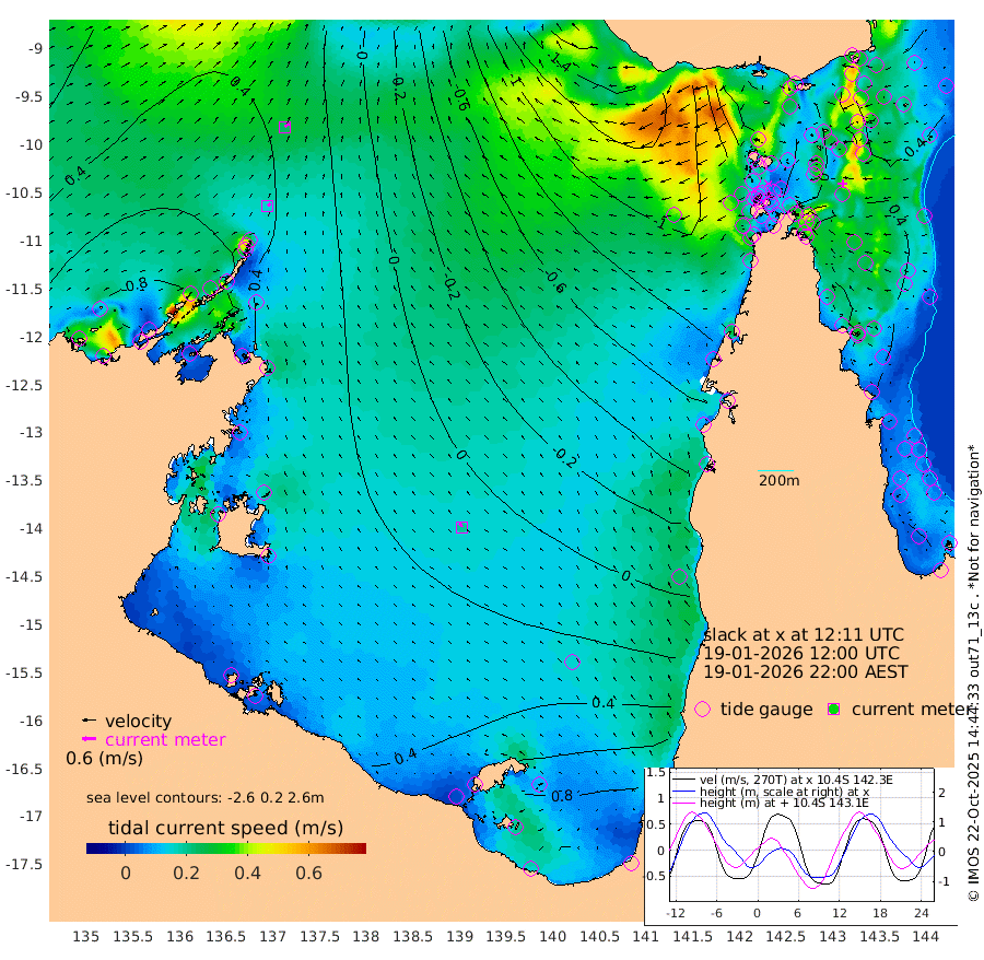 16cm/s 55T +3cm/s rms + 7cm/s -42T. ARA-GOC87 57m 20cm/s -38T +3cm/s rms + 2cm/s -2T. ARA-GOC87 60m 24cm/s 51T +2cm/s rms + 3cm/s 61T. ARA-GOC87 47m 40cm Daru 44cm Bobo Island 32cm Meer Island Barge 53cm Bramble Cay 53cm Unnamed Cay 48cm Pearce Cay 46cm Stephens Island 62cm Merrie England Shoals 49cm Mutacomal Reef 42cm Darnley Island Barge 38cm East Cay 38cm Yorke Island Barge 37cm Rennel Island 33cm Aureed Island 25cm Dungeness Reef -10cm Zagai Island -13cm Yam Island -57cm Dauan Island -55cm Saibai Island -16cm Phipi Reef -13cm Warrior Reef - West -66cm Mabuiag Island Barge 37cm Half Way Island 22cm Coconut Island 28cm Dugong Islet 4cm Poll Island 9cm Kirkcaldie Reef -24cm Suarji Island 0cm Sue Islet -111cm Hawkesbury Island -34cm Alert Patches -32cm Twin Island -100cm Badu Island -41cm St Pauls (Moa Island) -93cm Kubin (Moa Island) -59cm Ince Point -74cm Thursday Island -71cm Nardana Patches -87cm Turtle Head -95cm Round Island -114cm Goods Island -143cm Booby Island -126cm White Rocks Area -165cm Carpentaria -36cm Papou Point -154cm Bampfield Head -120cm Crab Island -139cm Red Wallis Island -106cm Packe Island 28cm Harrington Reef -130cm Herald Camp -8cm Sharp Point -67cm Red Island Point -52cm Possession Island -22cm Alpha Rock -6cm Frederick Point 33cm Wyborn Reef Light 23cm Tetley Island 17cm Triangle Reef 33cm Turtle Head Island 21cm Maclennan Cay 20cm Raine Island 40cm Mcsweeny Reef 44cm Collette Reef 31cm Shadwell Reef 55cm Hannibal Island 52cm Round Point -122cm Vrilya Point 42cm Cape Grenville 37cm Hicks Island 23cm Sir Charles Hardy Island 12cm Harvey Island 41cm Kay Reef 29cm Rocky Island 25cm Chapman Island 18cm Ham Reef 24cm Jubilee Reef 23cm Night Island 19cm Unnamed Reef No. 3 31cm Morris Island 18cm 1st 3 Mile Opening 22cm Creech Reef 26cm Fife Island 39cm Eden Reef 33cm Stanley Island 45cm Normanby River 89cm Yabooma Island 105cm Hutchison River 89cm Elcho Island 92cm North West Crocodile Island 43cm Cape Wessel 92cm Stevens Island 55cm Guluwuru Island 85cm Hopeful Bay 62cm Auster Point 58cm Two Island Bay 100cm Cadell Strait 76cm Mallison Island 57cm Melville Bay (Gove Harbour) 48cm Truant Island 34cm Cape Arnhem 50cm Cape Grey 57cm Hawk Island 62cm Milner Bay (Groote Eylandt) 61cm Cape Beatrice 58cm West Island 57cm Centre Island 102cm Mornington Island 99cm West Wellesley Islands 142cm Bountiful Island 181cm Albert River Mouth 205cm Sweers Island 176cm Karumba 70cm Nassau River Offshore 16cm Christmas Creek -32cm Archer River -72cm Boyd Point -66cm Weipa (Humbug Point) -69cm Pennefather River -116cm Cullen Point