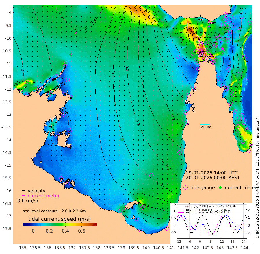 25cm/s 57T +3cm/s rms + 7cm/s -42T. ARA-GOC87 57m 24cm/s -6T +3cm/s rms + 2cm/s -2T. ARA-GOC87 60m 32cm/s 53T +2cm/s rms + 3cm/s 61T. ARA-GOC87 47m 43cm Daru 45cm Bobo Island -13cm Meer Island Barge 13cm Bramble Cay 31cm Unnamed Cay 33cm Pearce Cay 19cm Stephens Island 35cm Merrie England Shoals 47cm Mutacomal Reef 15cm Darnley Island Barge -10cm East Cay 28cm Yorke Island Barge 27cm Rennel Island 33cm Aureed Island 26cm Dungeness Reef 32cm Zagai Island 17cm Yam Island -16cm Dauan Island -2cm Saibai Island 1cm Phipi Reef 25cm Warrior Reef - West -26cm Mabuiag Island Barge 25cm Half Way Island 36cm Coconut Island 25cm Dugong Islet 28cm Poll Island 19cm Kirkcaldie Reef 17cm Suarji Island 30cm Sue Islet -142cm Hawkesbury Island -6cm Alert Patches 1cm Twin Island -108cm Badu Island 2cm St Pauls (Moa Island) -102cm Kubin (Moa Island) -36cm Ince Point -59cm Thursday Island -53cm Nardana Patches -94cm Turtle Head -115cm Round Island -146cm Goods Island -179cm Booby Island -156cm White Rocks Area -167cm Carpentaria -5cm Papou Point -186cm Bampfield Head -151cm Crab Island -165cm Red Wallis Island -126cm Packe Island 37cm Harrington Reef -172cm Herald Camp 12cm Sharp Point -77cm Red Island Point -43cm Possession Island 15cm Alpha Rock 19cm Frederick Point 46cm Wyborn Reef Light 44cm Tetley Island -9cm Triangle Reef 31cm Turtle Head Island -20cm Maclennan Cay -31cm Raine Island 26cm Mcsweeny Reef 21cm Collette Reef -8cm Shadwell Reef 25cm Hannibal Island 12cm Round Point -146cm Vrilya Point 0cm Cape Grenville -9cm Hicks Island -24cm Sir Charles Hardy Island -2cm Harvey Island -10cm Kay Reef -22cm Rocky Island -25cm Chapman Island -31cm Ham Reef -25cm Jubilee Reef -21cm Night Island -29cm Unnamed Reef No. 3 -24cm Morris Island -37cm 1st 3 Mile Opening -30cm Creech Reef -16cm Fife Island -32cm Eden Reef -26cm Stanley Island -18cm Normanby River 21cm Yabooma Island 30cm Hutchison River 27cm Elcho Island 28cm North West Crocodile Island 42cm Cape Wessel 58cm Stevens Island 55cm Guluwuru Island 42cm Hopeful Bay 41cm Auster Point 31cm Two Island Bay 58cm Cadell Strait 136cm Mallison Island 55cm Melville Bay (Gove Harbour) 53cm Truant Island 44cm Cape Arnhem 57cm Cape Grey 60cm Hawk Island 76cm Milner Bay (Groote Eylandt) 67cm Cape Beatrice 76cm West Island 71cm Centre Island 77cm Mornington Island 79cm West Wellesley Islands 96cm Bountiful Island 127cm Albert River Mouth 164cm Sweers Island 114cm Karumba 24cm Nassau River Offshore -32cm Christmas Creek -77cm Archer River -102cm Boyd Point -114cm Weipa (Humbug Point) -94cm Pennefather River -142cm Cullen Point